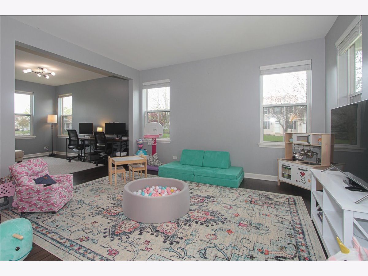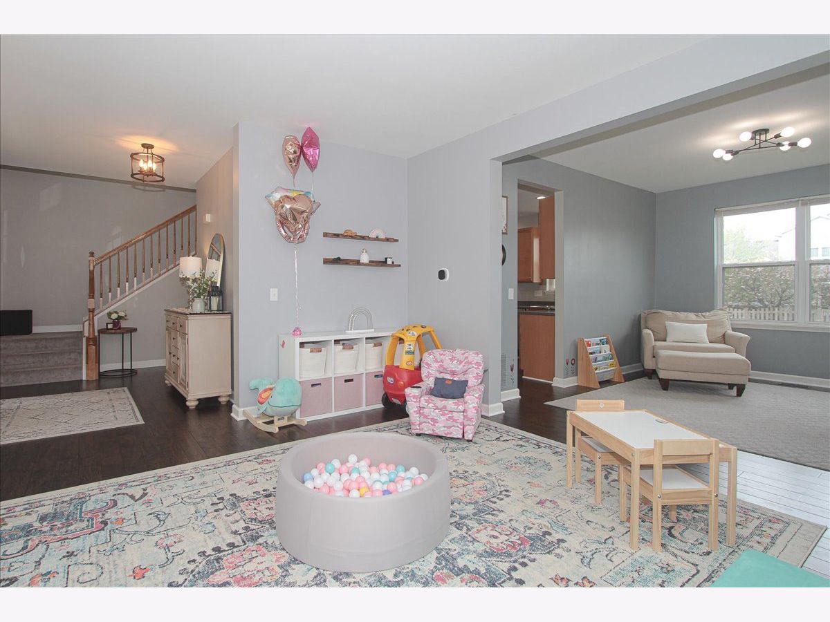 Step into this beautifully maintained home featuring a spacious open floor plan that includes 3 bedrooms, 2.5 bathrooms, and a host of attractive amenities. The kitchen features 42" cabinets, center island, pantry & a large eating area big enough for a full size dining table. The family room, warm and inviting, boasts a cozy fireplace perfect for Illinois winters. The hardwood floors throughout the first floor add elegance and ease of maintenance. The formal living room and dining room have been transformed for today's family into a spacious play room and home office. First floor mudroom has space for coats, backpacks & sports equipment. The primary bedroom is a true retreat, complete with a large walk-in closet, en suite bathroom with double sinks, separate shower and tub. Convenience is key with a laundry room located on the second floor, making household chores a breeze. Additionally, this home offers a fully finished basement with two extra bedrooms complete with closets, ideal for guest rooms or home offices. Located in the friendly, highly desirable, Liberty Lakes neighborhood. Enjoy the cozy front porch for those Summer nights. This property combines comfort and practicality in a delightful setting. Don't miss the opportunity to make this house your new home! Agents see remarks for the many updates.