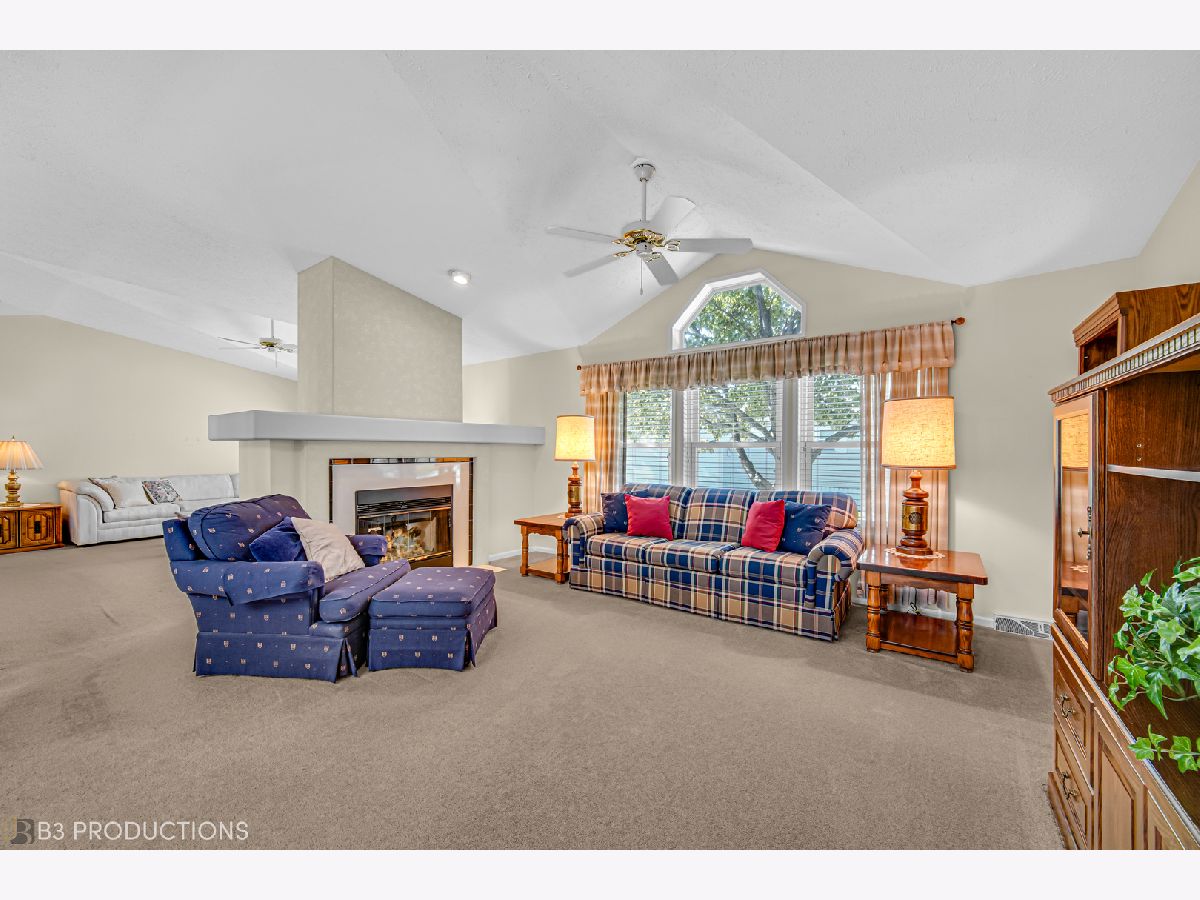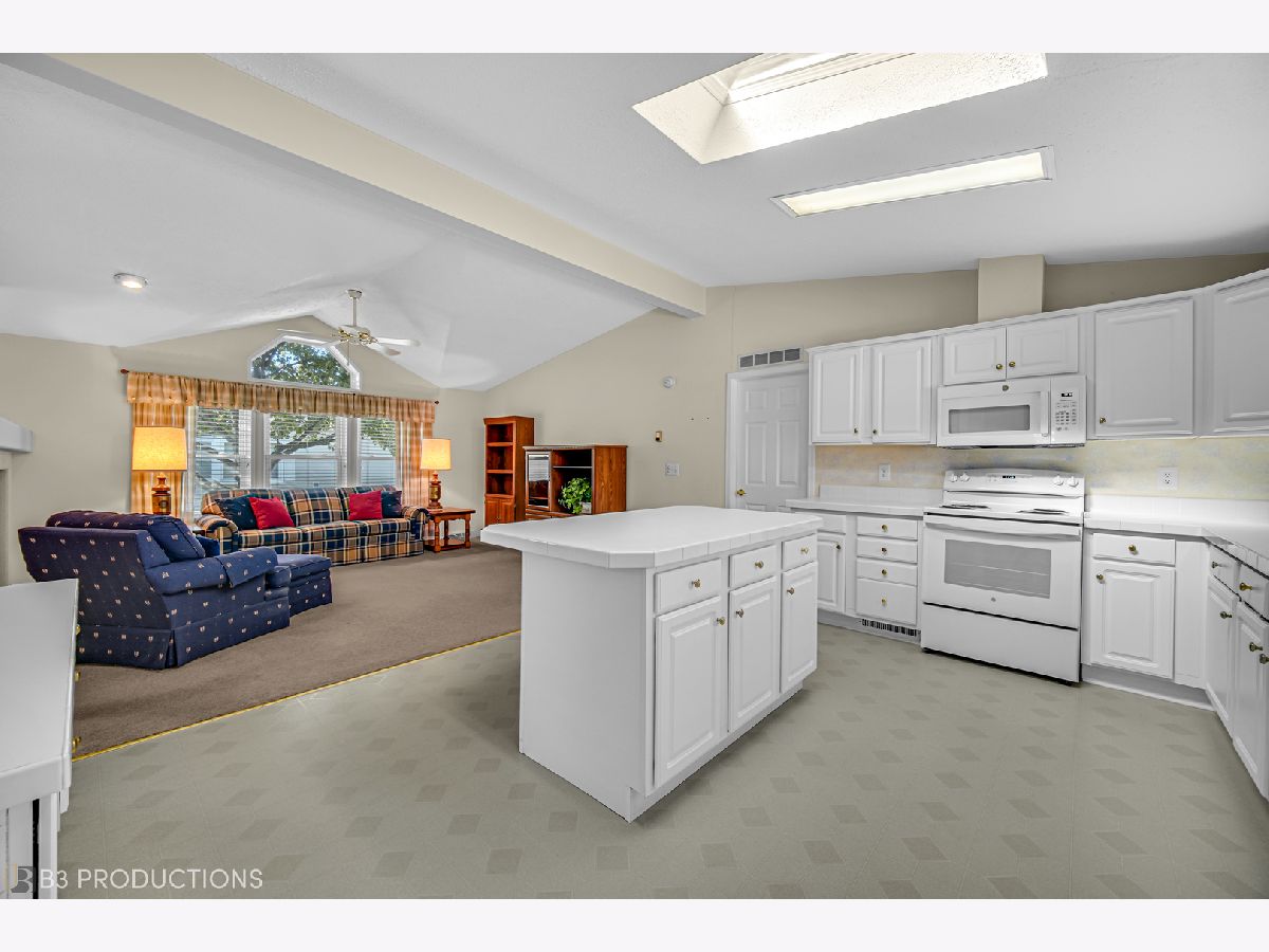 Beautiful Home in a 55+ Community - Bright, Spacious, and Move-In Ready! Mrs. Meticulous lives here! Welcome to this stunning, bright, and airy home designed for comfort and easy living! Offering three bedrooms and two full baths, including a master suite with en suite bath and his-and-hers closets for extra storage. The open-concept layout features vaulted ceilings, creating an expansive feel throughout the living areas. The kitchen is a cook's delight, complete with plenty of cabinetry, an island, and all appliances. Built-in lighted shelving in the dining room adds both style and functionality, while the double-sided fireplace offers cozy ambiance to both the family room and living room. Enjoy the convenience of a separate laundry room with washer and dryer included, and peace of mind with updated windows, a newer roof, and brand-new AC. The oversized two-car garage and large driveway provide ample parking, and the private patio is perfect for relaxing outdoors with no neighbors behind you. This fantastic community offers a clubhouse with activities and a welcoming atmosphere, perfect for an active lifestyle. Don't miss the opportunity to live in a wonderful location with everything you need at your fingertips!