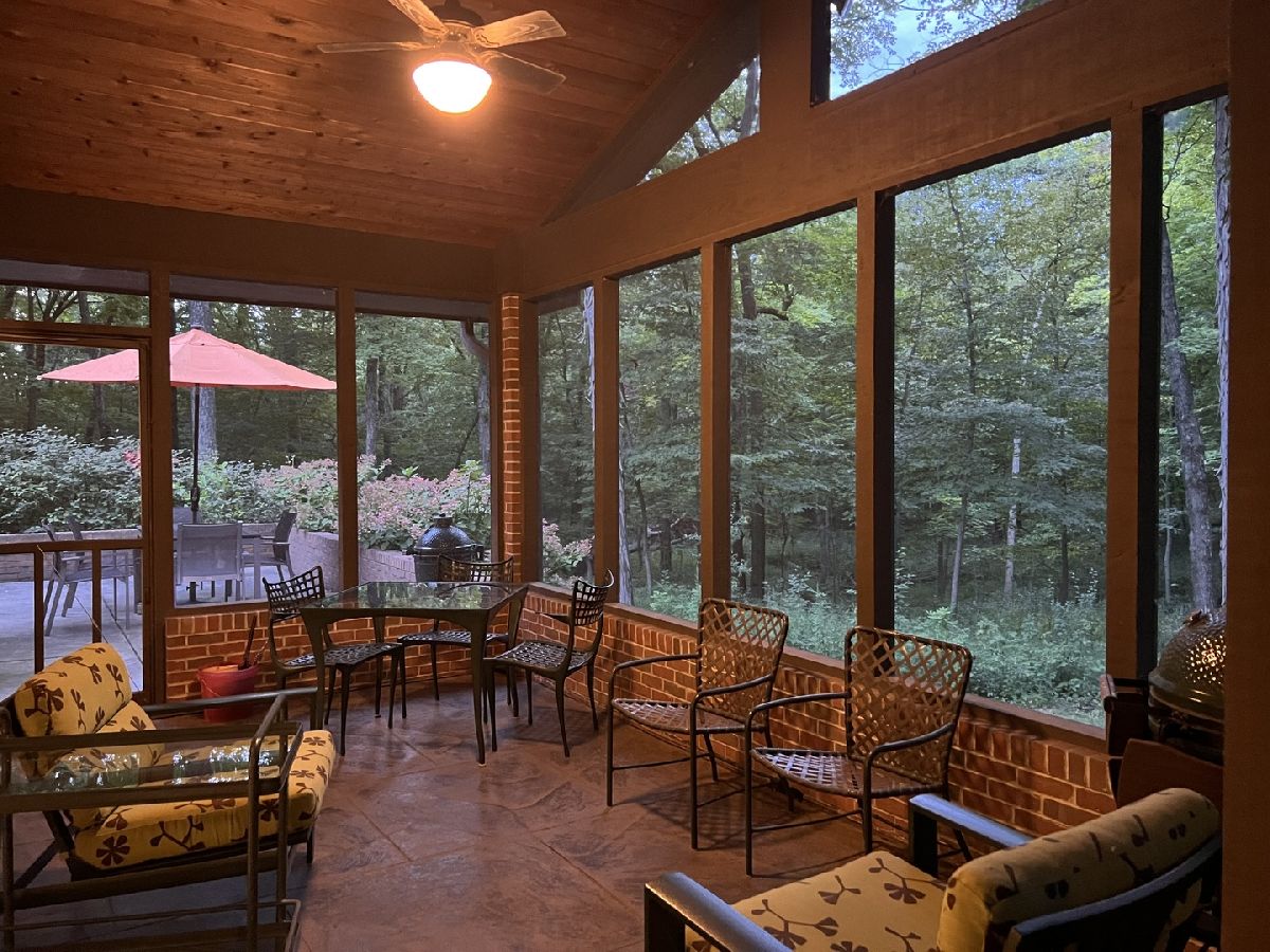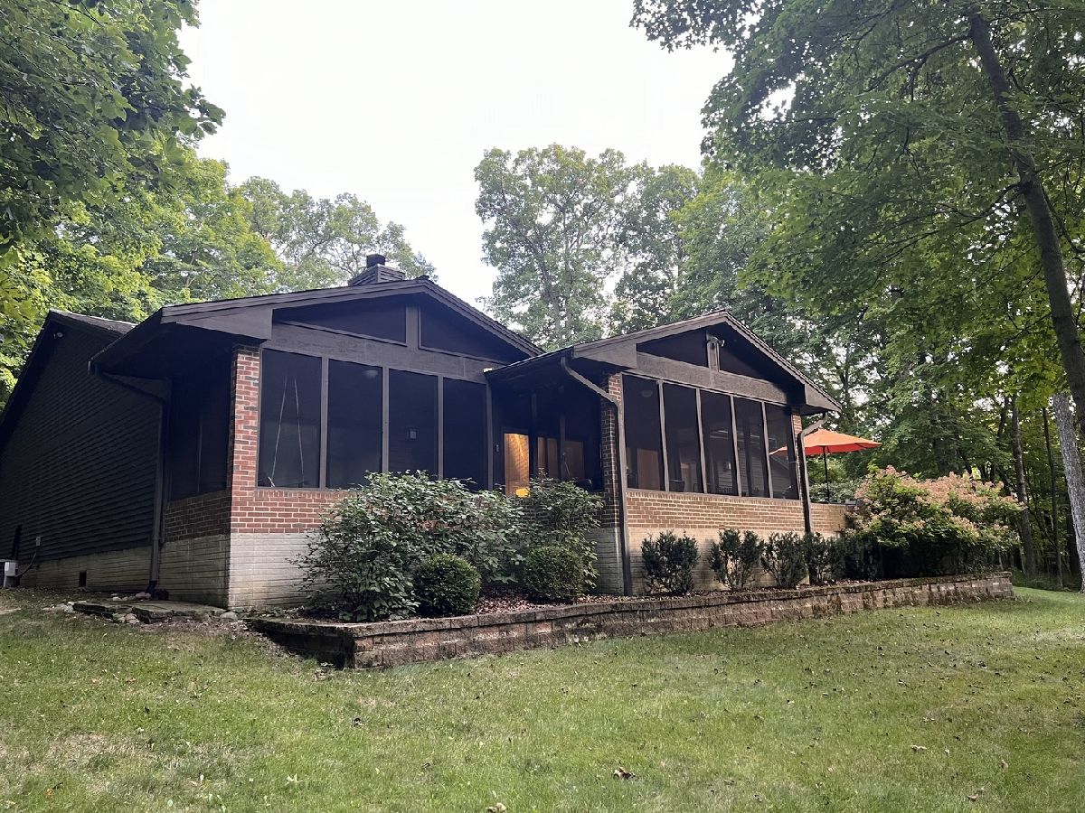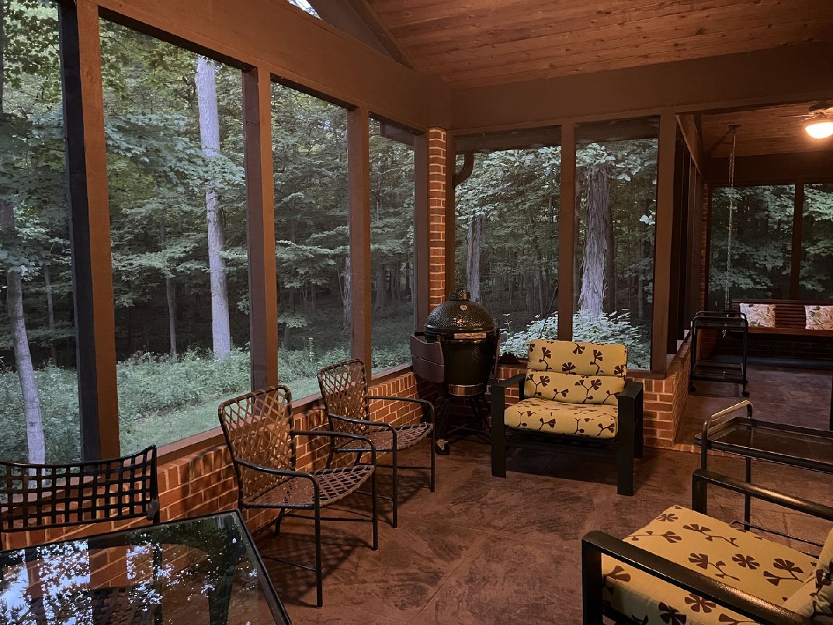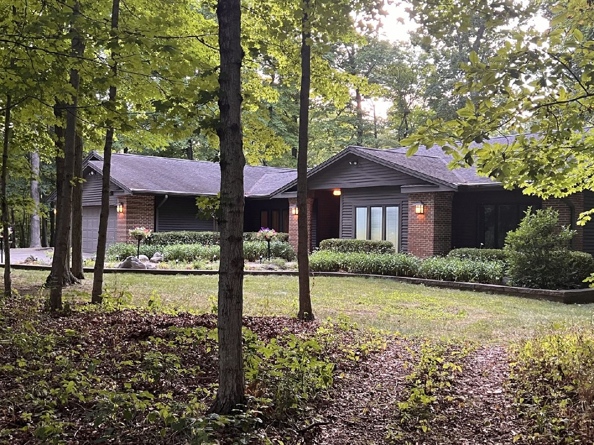 This is a one of a kind home designed by Russell Francois with many Frank Lloyd Wright touches, including the replica doors that greet you as a come into the home. A brick and cedar 3180 sq ft ranch with a three car garage, Pella windows and 9 foot ceilings, setting in beautiful timber. A generous foyer greets you with much wall space and open shelves with track lighting to showcase your treasures. The foyer opens into a beautiful living room with a flat wall gas fireplace. which was previously a woodburning fireplace but has had the gas insert added. Beautiful Canadian maple hardwood throughout the main living area and halls. Off the living room you can enjoy evenings on your screened porch and experience nature at its finest. Kitchen has stunning custom made black cabinetry, and a full wall of upper and lower cabinets for additional pantry wall storage. A built in desk, double oven stove and corian countertops finish the beautiful styling. Sliding glass doors lead to a concrete raised deck with brick walls to replace railings. A formal dining room with recessed lighting, trayed ceiling and accent columns make for a lovely presentation for your dinner guests. Move on down the track lit wide hallway, past a delightful decorated half bath, and find a large family room with much daylight streaming in, large enough to have a pool table along with seating and a large screen tv. Follow the wide hallway to the north end of the home where you will find three bedrooms and a hall bath. The hall bath was recently updated with a vessel sink, new beautiful tile flooring and a newly tiled shower/tub combo. Be sure to see the gorgeous sliding doors on the tub. Two guest bedrooms look out to the front of the home with large windows to enjoy the seasons. A large primary awaits down a generous hall, with sliding doors to your own private screened in porch with a leisurely porch swing for quiet evenings. Off the primary is a private bathroom with new walk in shower, and a large closet finishes off this en suite. Your three car heated garage offers much shelving and work area with storage, a wall of organized hanging for tools, and an entrance to the basement. The 790 square foot basement has an egress and is a perfect shop or craft room. Outside you will find an abundance of timber with a peaceful little creek winding its way through. An additional 768 sq ft garage with concrete floor was added in 2016 and is just a short distance down a gravel path from the home. Grow your own vegetables and even some strawberries in your enclosed garden! This is a fantastic home on a total of 10.85 acres, close to Moraine View State Park and in the award winning Tri Valley School District. An absolutely stunning home that will make you feel like you have come home to your own private vacation destination every day!