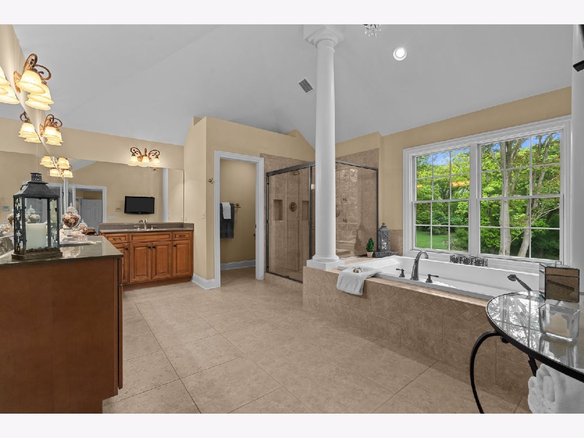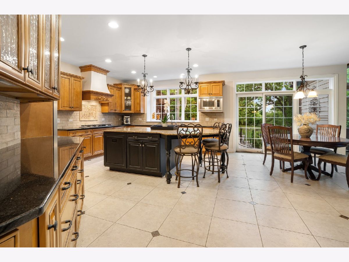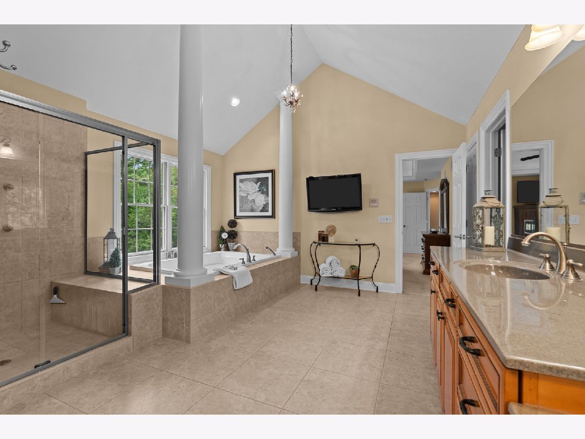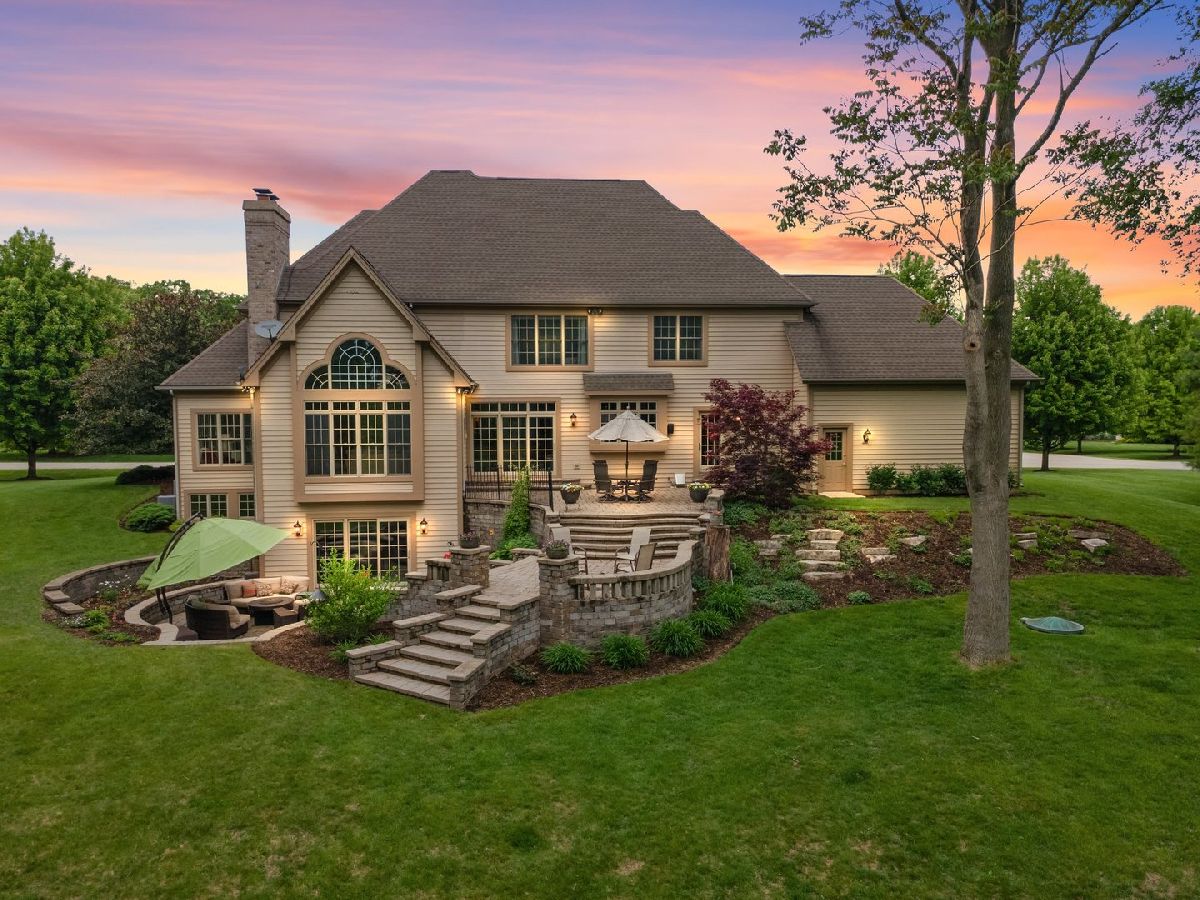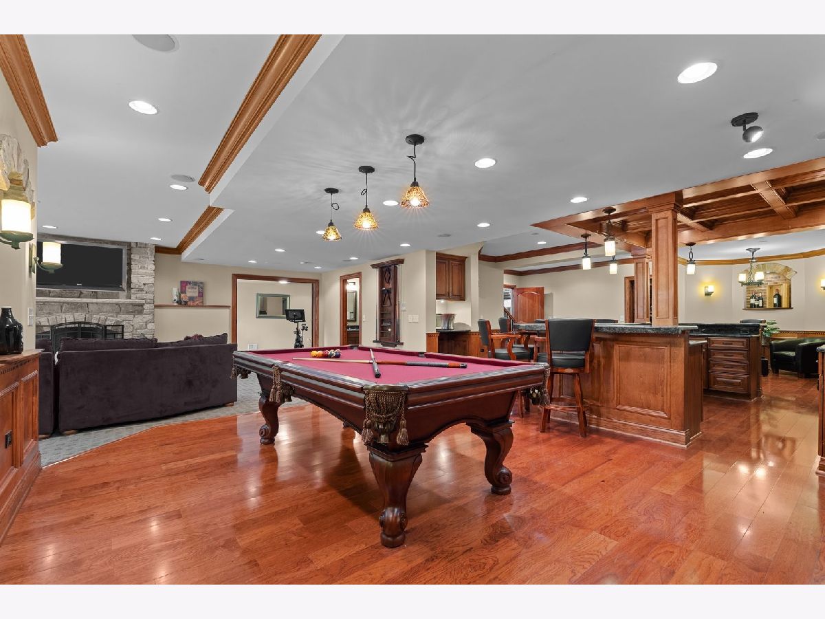 Welcome to your dream home! This exquisite two-story brick and stone-front residence is nestled on a beautifully wooded 1-acre lot, offering the perfect balance of privacy, elegance, and modern convenience. With 5 spacious bedrooms and 4.5 bathrooms, this thoughtfully designed home provides ample space for both entertaining and everyday living. Step inside to a stunning tiled foyer that opens to rich hardwood floors, vaulted ceilings, and sun-filled living spaces. The open-concept kitchen and family room serve as the heart of the home, featuring an oversized granite island with built-in electricity, custom maple cabinets with custom finish and high end moulding, a large walk-in pantry, and a butler's area with a beverage fridge and built-in wine rack. Enjoy cozy evenings around the floor-to-ceiling stone fireplace with gas logs and starter, located in both the family room and the fully finished walkout basement. The luxurious primary suite boasts a spa-like bath with an oversized soaking tub and ample closet space. Additional bedrooms provide comfort and privacy for family and guests alike. A four-season sunroom with views of the scenic backyard extend the living space, ideal for summer nights or quiet mornings with nature. The finished walkout basement is an entertainer's dream, complete with a full bath, heated floors, a custom bar, lounge area, and access to the breathtaking 4-tier stone paver patio with fire pit. Extensive hardscaping adds to the outdoor charm, while the circle driveway and 4-car garage offer convenience and curb appeal. Enjoy peace of mind with high-efficiency dual heating and air conditioning systems, a 75-gallon water heater (only 2 years old), and a reverse osmosis system servicing the kitchen, basement bar, and both refrigerators. Located in a desirable neighborhood with exclusive riverfront access and a private pier for homeowners, this exceptional property offers space, style, and serenity-all just minutes from modern amenities.