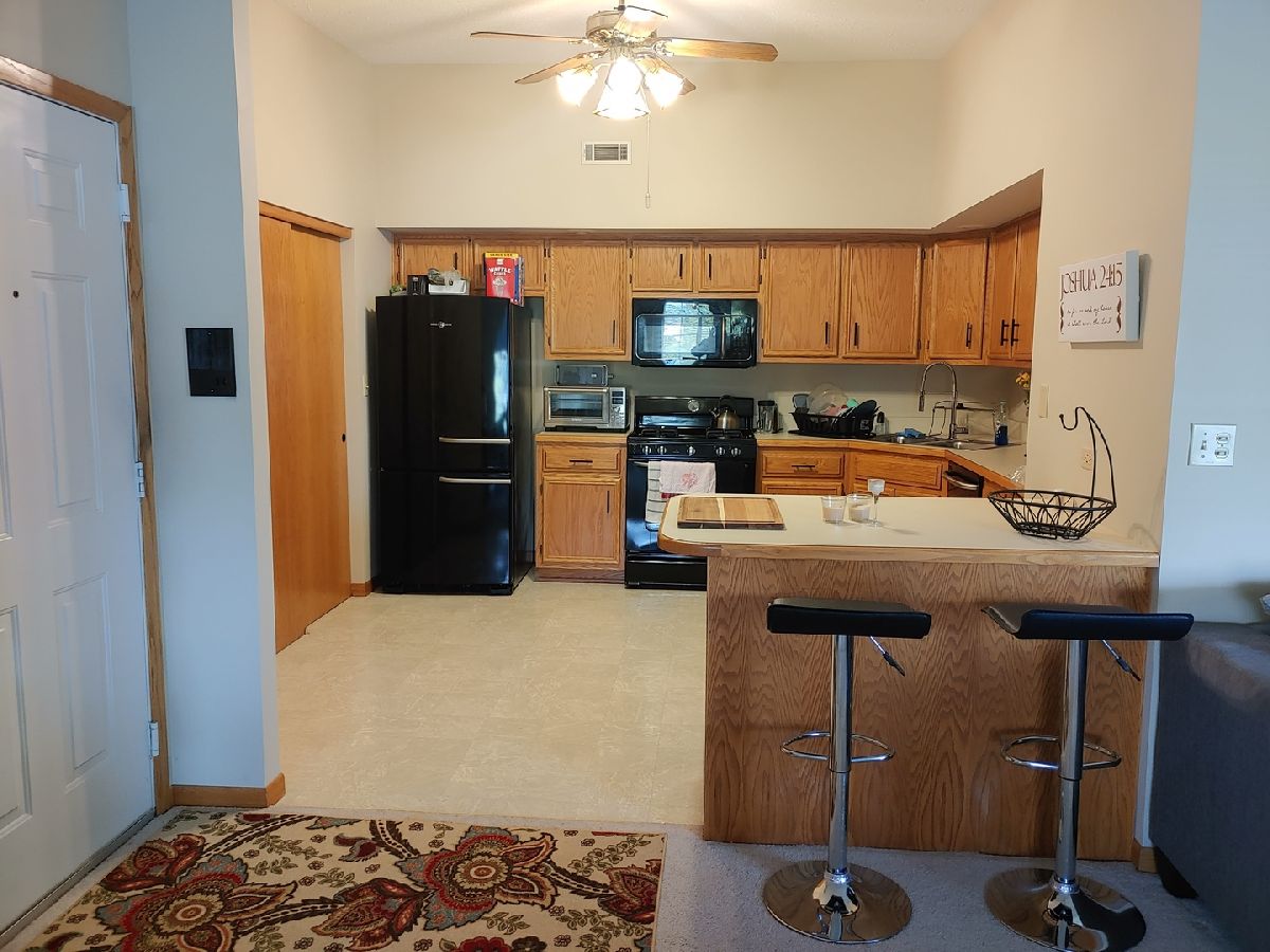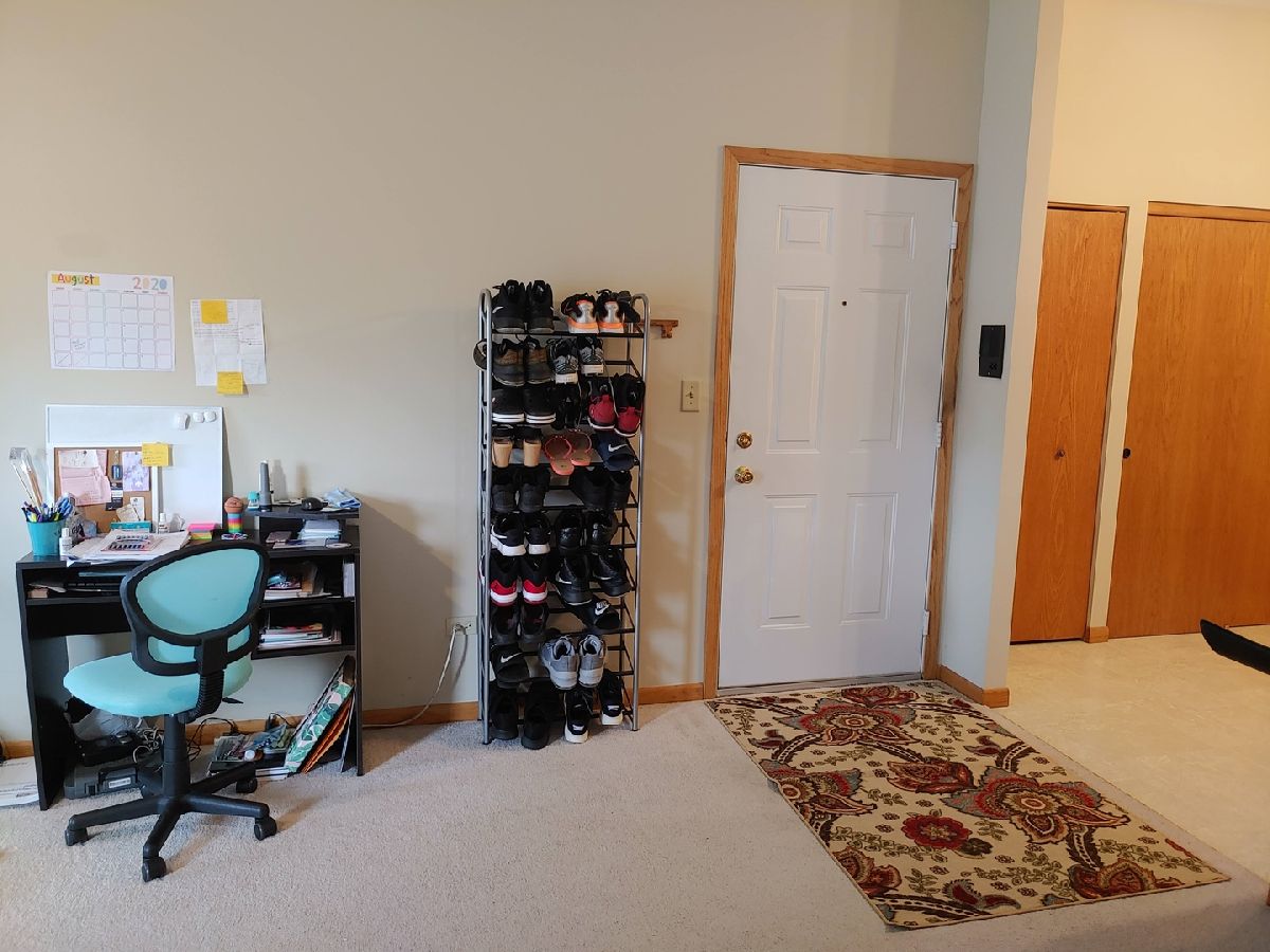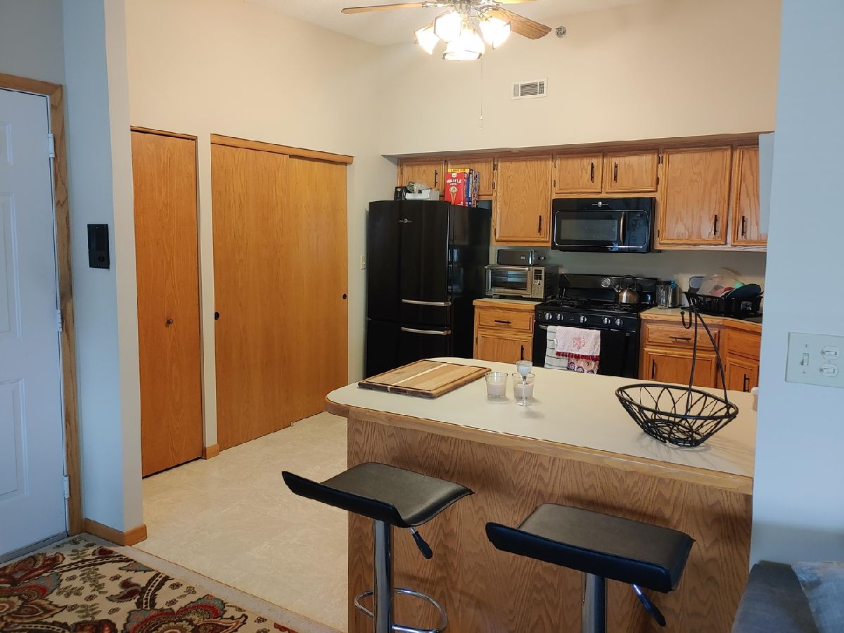 Minutes from from I-80, I-55, and the Joliet Mall, this spacious 5-Room Condo includes 2 good sized Bedrooms, 2 full Baths, an in unit Laundry with included W/D and deeded detached one car garage. Features include: Big Beautiful Bay Window; Palladium Windows in Dining Room and Master Bedroom; Ceiling Fanlights; Formal Dining Room Access Door to Private Deck/Balcony; Kitchen with Lots of Cabinets, 4 year new GE Black Appliances, Breakfast Bar Counter plus Double and Single Pantry Closets. Upgrades are from the last 4 years: Nest Programmable Thermostat. GE Black Kitchen Appliances, Samsung Washer and Dryer, Goodman 16 SEER 2 ton Central Air System, Goodman 97% Variable Speed Furnace, Bradford H20. Easy to show.