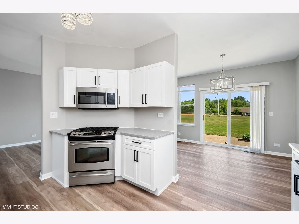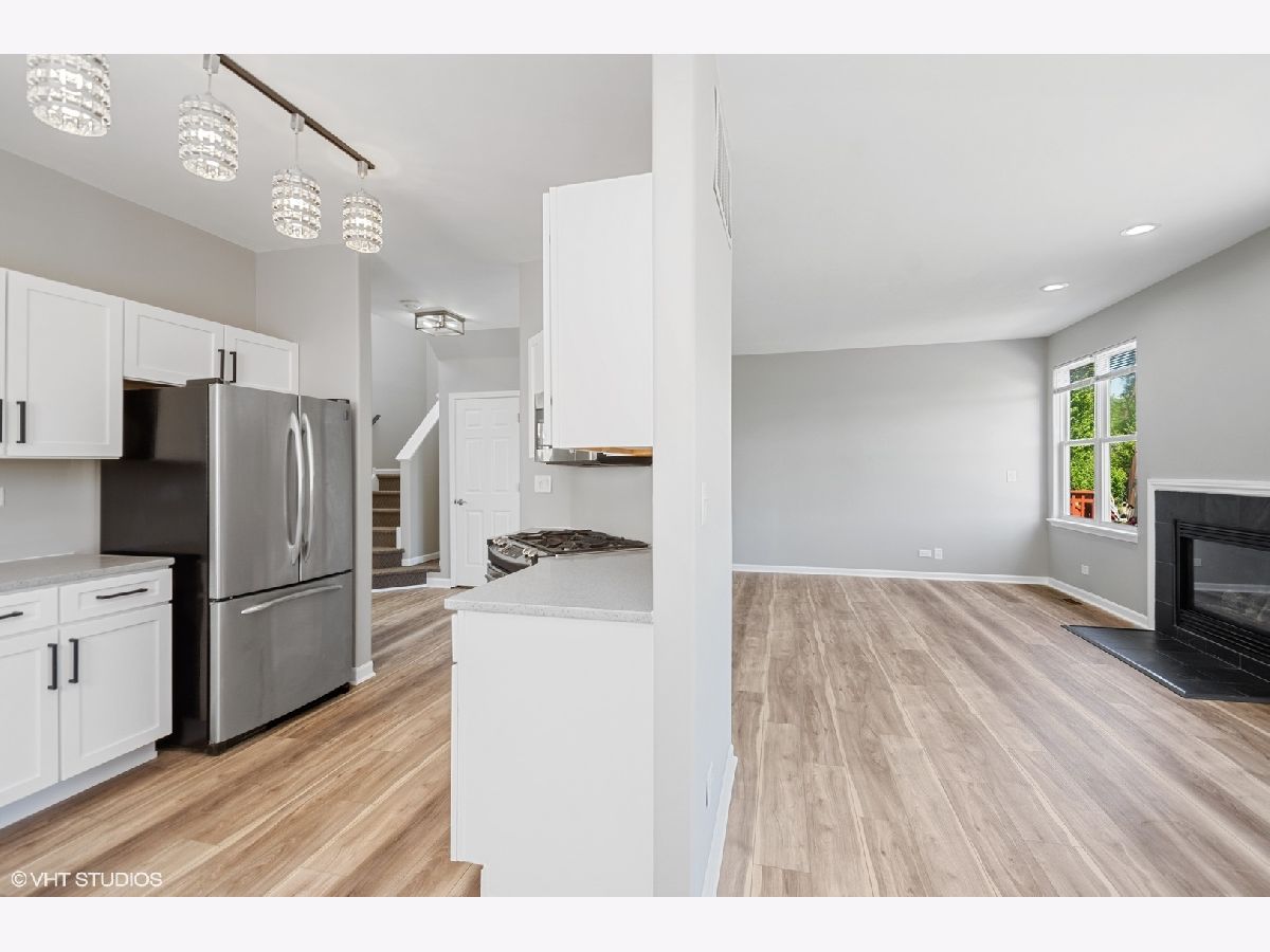 Rare opportunity in this freshly renovated 2 bed 1.1 bath duplex with high end finishes. Enjoy single family style living and freedom, at a townhome price without the monthly association fee. Nestled on a quiet cul-de-sac this former Burnside model home is 1 of only 6 homes in all of Lakemoor Farms that backs to Heritage Community Park. Open backyard with massive paver brick patio rolls into large soccer field and then into the park. As the former model for this floorplan (there were only 4 models) it has EVERY option, upgrade and architectural feature Burnside Homes offered, including optional loft (easily converted to the standard 3rd bedroom), vaulted ceilings, bullnose corners on drywall, 9ft ceilings, gas fireplace, can lights, niche, brick facade, front porch, wider laundry room and insulated full basement...this one has it all, a truly rare find in the community and located on a premium lot/view. Many new high end updates include large open kitchen with real wood white cabinets, quartz counters and high end stainless steel appliances. Updated bathrooms, Kohler faucets, light fixtures, new luxury vinyl wood plank flooring throughout (waterproof) 2.5 car garage with plenty of space for storage as well as extensive amount of can lights perfect for garage projects. Walk in closet in master with built in shelving. New hot water tank. Note taxes do NOT reflect a Homeowners Exemption. HOA fee is only $162 per YEAR. 3D interactive floorplan available on virtual tour. Agent owned