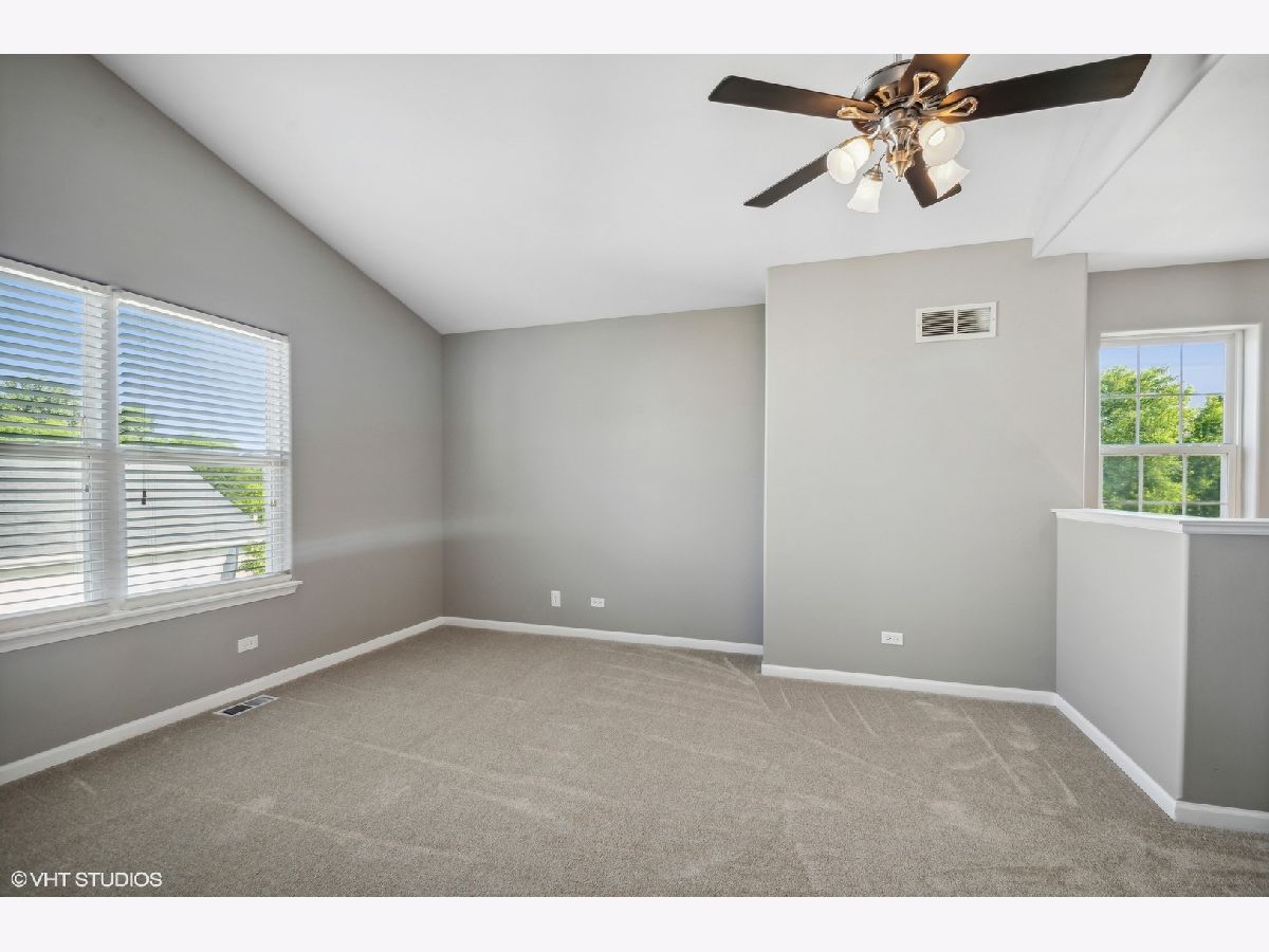 Nestled in sought after Lakemoor Farms, an amazing opportunity waits for you! Freshly painted and decorated with style and taste designed to please and refresh the senses. Single family style living, with townhome pricing and freedom from monthly HOA expenses. Many new high end updates include large open kitchen with white and gray cabinets, quartz counters and Whirlpool stainless steel appliances, large loft with vaulted ceiling can easily be converted to a 3rd bedroom. Bullnose corners on drywall and 9' ceilings add dimension and depth. Primary bedroom features new LVT flooring, walk in closet and elegant, upgraded bath. 2nd bedroom highlights white beadboard accents. Beautifully finished full basement with 2nd full bath, and recessed lighting provide versatility for entertaining or expansion of additional bedrooms. Updated light fixtures, door handles and plantation blinds throughout. 2.5 car garage with 16' ceiling - plenty of space for storage. An abundance of privacy is evident with a location toward the back of Lakemoor Farms. Relax and enjoy the deck, with amazing landscaping and mature trees. New hot water tank and newer AC. This home will not disappoint! Note taxes do NOT reflect a Homeowners Exemption. HOA fee is only $162 per YEAR.