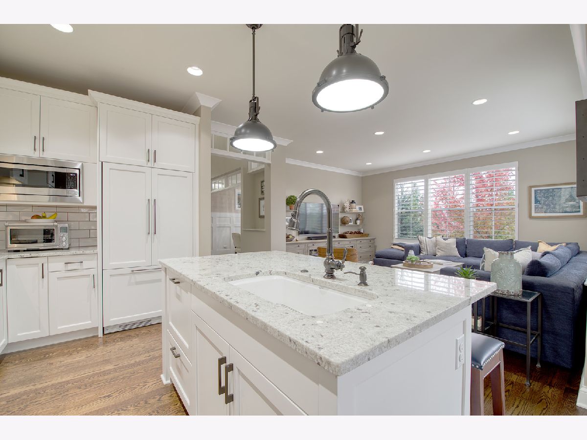 In a world where modern design flourishes arrives this one of a kind home with extraordinary unmatched finishes throughout on the market. Gleaming hardwood floors upon entry into the gracious Foyer and opens into the sundrenched Living Room/Office. The Dining Room boasts customized wainscoting and flows perfectly into the heart of the home making entertaining a breeze. The Kitchen has been designed for those of a discerning taste and includes: neutral cabinetry with oiled bronze hardware, Fisher & Paykel integrated/panel refrigerator & dishwasher, 4-burner commercial-style gas range with corresponding hood, double oven, beverage refrigerator, Kohler under-mount farmhouse sink with granite counters, subway tiled backsplash, island with seating for three and Breakfast Room with sliders to patio & fashionable globe light fixture. Spacious Family Room with gorgeous views of the professionally landscaped grounds. Main floor Primary bedroom with customized coffered tray ceiling, designer selected light fixtures, two walk-in closets with organizers and an en suite with porcelain tiled flooring and bathing surround, stand up shower with bench, dual vanity sinks, shiplap, Kohler soaking tub, water closet with built-in clothes hamper cabinetry and granite counters. Powder Room, Laundry Room & Mud Room with built-in cubbies completes the main floor. The 2nd level features fantastic Loft which is perfect for additional family living, Bedrooms Two and Three and shared Hall Bath with shiplap, quartz counters and tub/shower. Magnificently unique and exceptional Lower Level highlights: Family & Recreation Room with luxury engineered wood flooring, shiplap throughout, built-in storage cabinetry, gas log fireplace with stone surround, Bar, Exercise Room, 2nd Kitchen & Eating Area with quartz counters, Kohler farmhouse sink, Fisher & Paykel refrigerator, KitchenAid 5-burner range, oven, microwave, dishwasher, shaker white soft-close cabinetry, island with storage & subway tiled backsplash. Optional 4th bedroom or Office with neutral carpeting, double door closet and full bath with stand up shower. Other highlights include: Carrier furnace with zone damper, humidifier, dual thermostats, Two-50 gallon water heaters, two car heated garage with polymer flooring & built-in storage, concrete patio with privacy landscaping, tons of storage throughout the home, transom windows, crown molding, recessed lighting, plantation shutters & so much more! Just minutes to Glen Metra, Kohls Children Museum, theater, dining, shopping, golf, Park Center, walking trails, schools & parks. Check out 3D tour and video!
