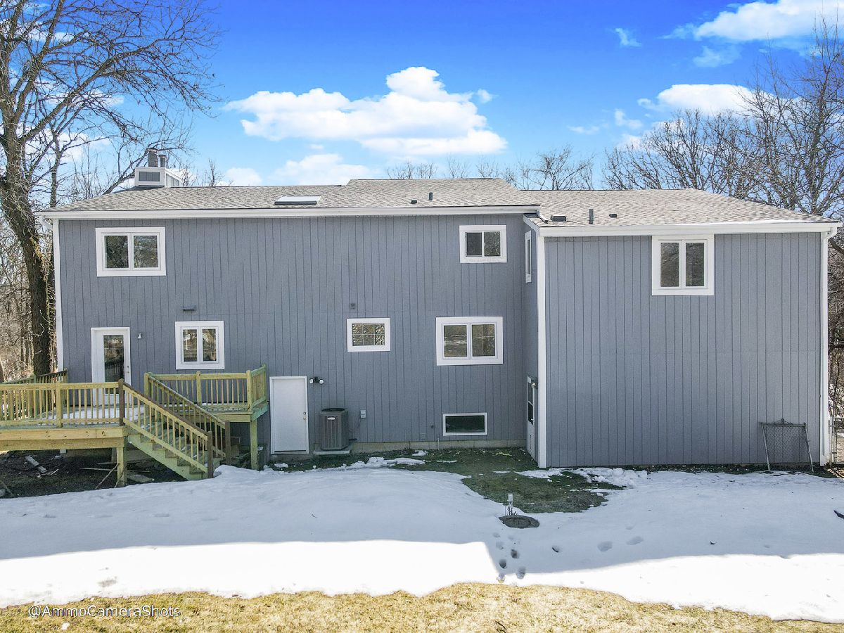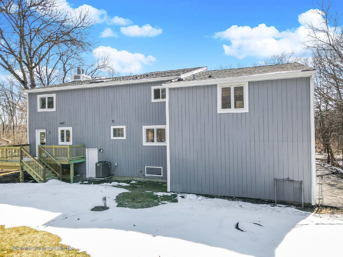 Set on "3" - 50' x 150' lots for a total of 150' x 150' (.516 acre) w/Fenced Yard. This Thoroughly remodeled/updated/upgraded 2 story Beauty is wonderfully tucked away at the Very end of an almost private street - directly across the street from a Forest Preserve - you cant get a better year-round setting. A contemporary designed residence w/a comfortable mix of traditional & contemporary features that are practical / comfortable and impressive! Generous room sizes, Deluxe Master Bedroom Suite w/vaulted ceiling, a Master Bathroom w/separate Whirlpool tub & stand-up or sit-down shower, extended double sink vanity/mirror PLUS adjoining Study/den. Impressive upgrades sure to please everyone. New kitchen, Roof, Skylights, flooring, windows, Deck , finished basement, 4 car tandum garage (35' depth) w/it;s own heater, skylights, fireplace, possible room for RV parking too. Main floor Laundry, fully Applianced Kitchen w/New appliances all make this a Home to truly Love & Enjoy for years to come...You REALLY should HURRY HURRY HURRY!