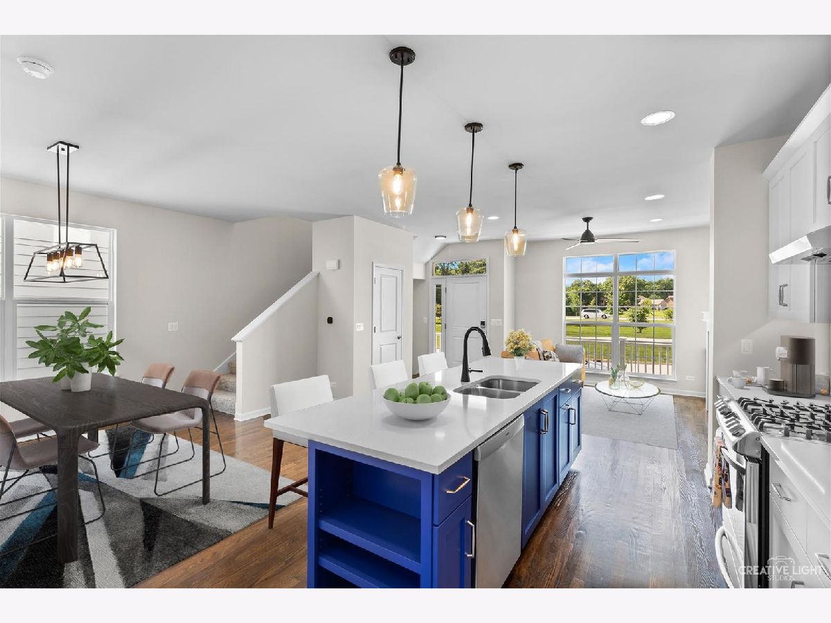 Welcome to Stafford Place of Warrenville! The Graham model is an Airhart built, semi-custom home featuring 2 bedrooms, 2.5 baths. It's ready to move in, only 5 months old! Wait until you see the beautiful, rooftop terrace adjacent to the upper-level FR, and accessible through double sliding glass doors for easy entertaining. As you enter, the gleaming oak flooring welcomes you into the home where you'll find the spacious Great Room with a deluxe gas fireplace - open to the kitchen and dining room. A bright and open kitchen with Brakur custom solid wood cabinets with soft-close doors and drawers, quartz countertops, large island, and stainless steel appliances. The Main Bedroom has a walk-in closet and an impressive bathroom - double vanity, walk-in shower with a tiled seat and rain shower head. The Second Bedroom has a full, private bath and walk-in closet. For endless entertaining head up to the Upper-Level Family Room, featuring a dry bar, cabinet and space for a mini-refrigerator as well as a desk nook for your home office and the half bath. This home has a two-car garage that is accessed from the rear of the home straight into the lower level. Additional Amenities: LED canned lighting in great room, kitchen, and 2nd-floor family room and office nook area. Home security system wired to the central Warrenville police station. Schlage deadbolt & wifi enabled front door entry and an Ecobee - WiFi-enabled thermostat. Close to so much - Warrenville Public Library is next door. One block away is the Park District Rec Center and right across the street is access to IL Prairie Path.