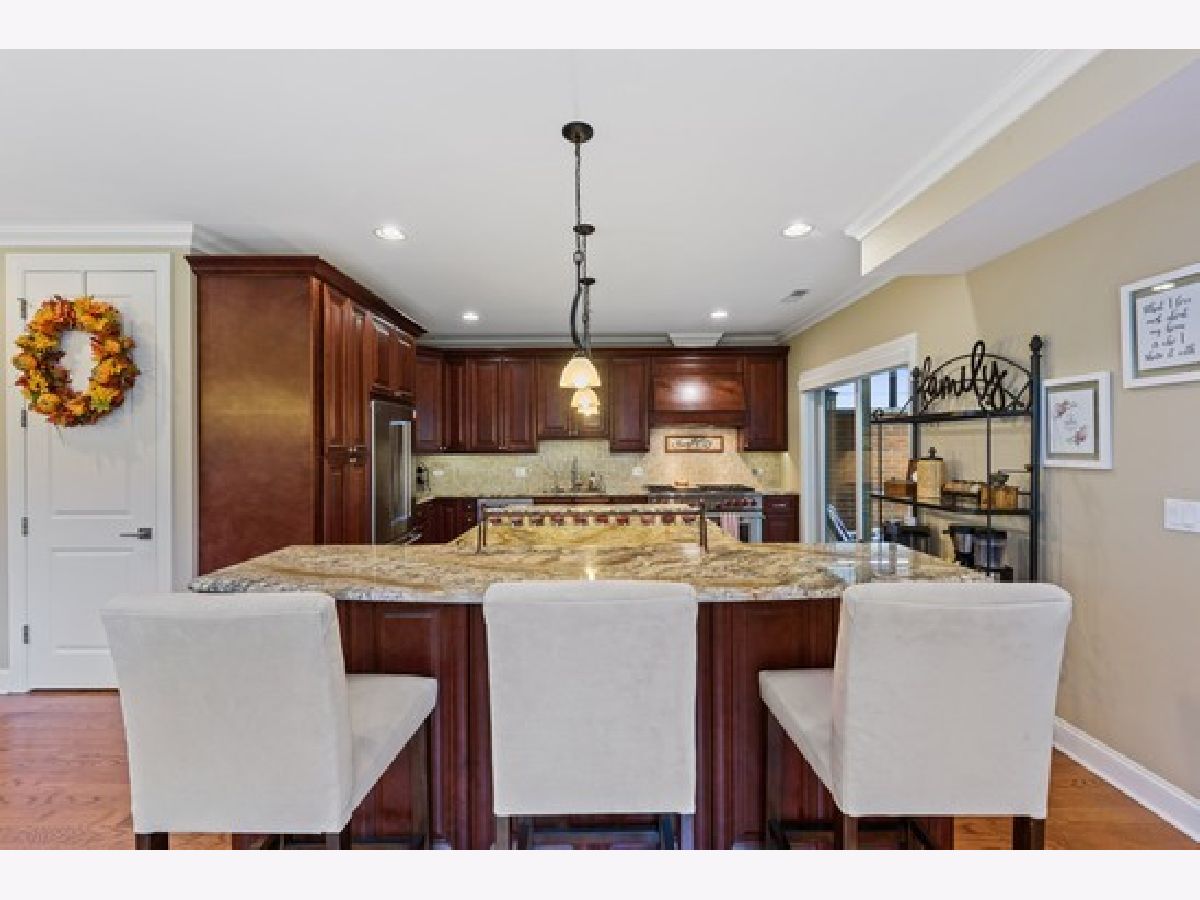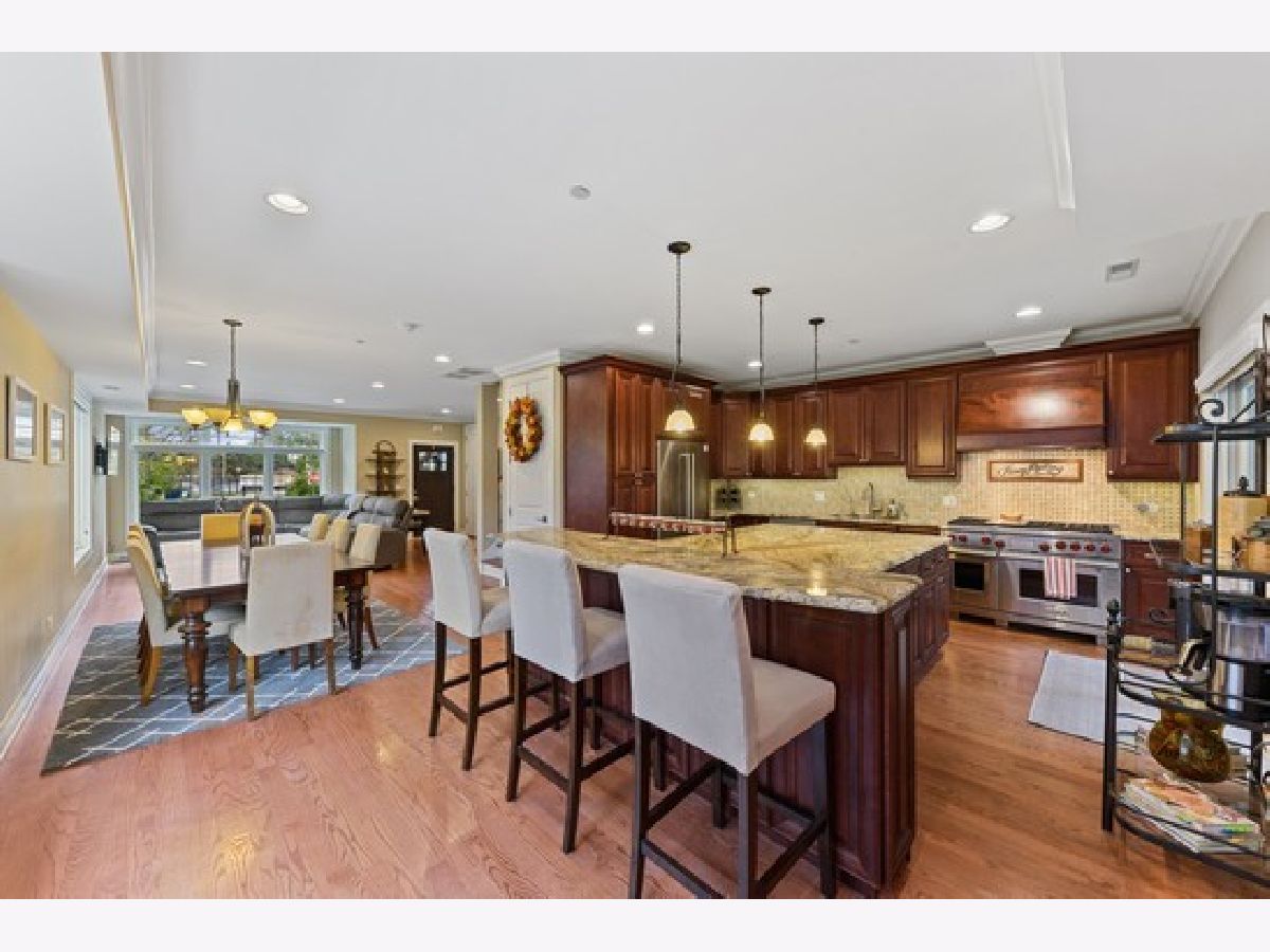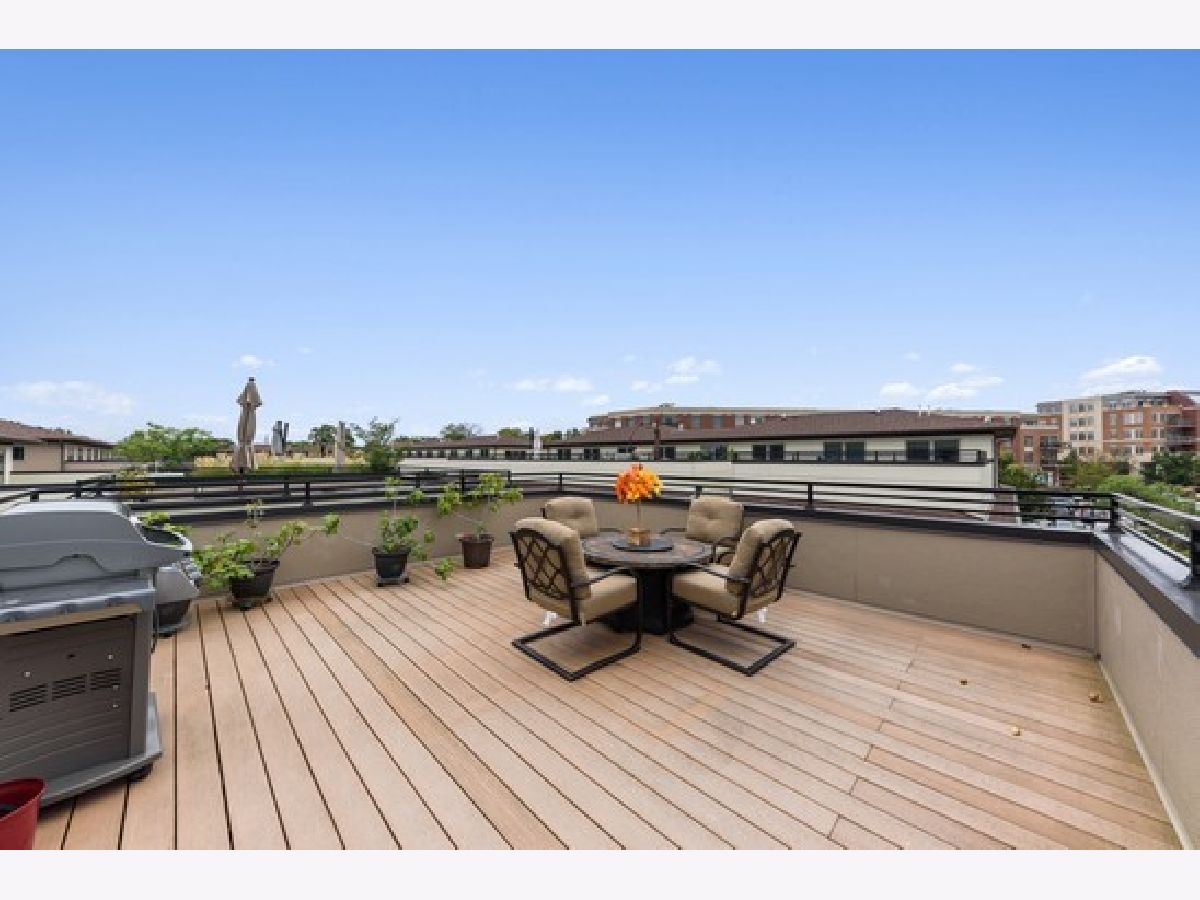 Heart of Park Ridge-Hinkley Park 3 story corner unit town home with 19' x 16' roof deck with views of park! Just steps to metra, shopping and eateries! First unit purchased in development and has THE BEST location! Wonderful open floor plans with terrace, balcony off mast bed. 9ft ceil/crown mldg/millwork on 1st fl. 2 staircases. Hardwd floors thru out 1st and 2nd floors. 2nd fl family room- great for entertaining with exterior stairs to roof top deck. 3rd fl den. Top of the line appliances including newer 48" dual fuel Wolf range! 42" kitchen cabinets and large island. Heated floor in master bath. Garage floor epoxy.Great closets and storage!