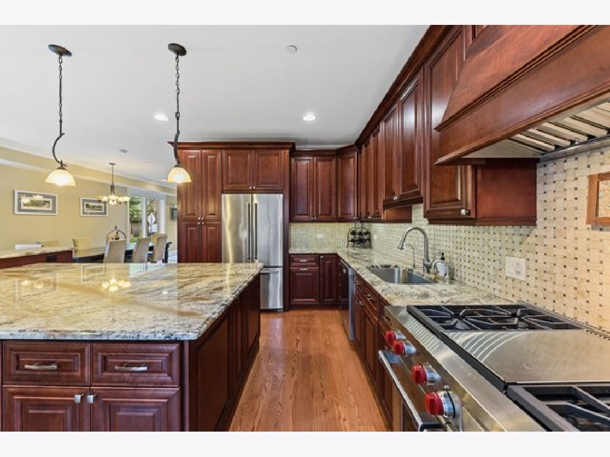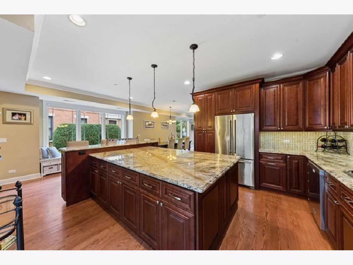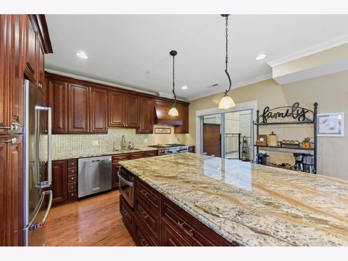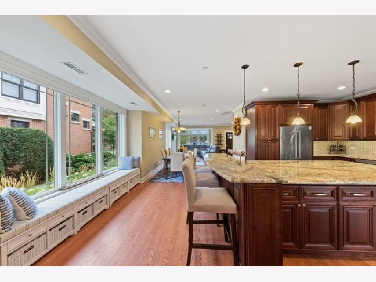 Heart of Park Ridge-Hinkley Park 3 story corner unit town home with 19' x 16' roof deck with views of park! Just steps to metra, shopping and eateries! First unit purchased in development and has THE BEST location! Wonderful open floor plans with terrace, balcony off mast bed. 9ft ceil/crown mldg/millwork on 1st fl. 2 staircases. Hardwd floors thru out 1st and 2nd floors. 2nd fl family room- great for entertaining with exterior stairs to roof top deck. 3rd fl den. Top of the line appliances including newer 48" dual fuel Wolf range! 42" kitchen cabinets and large island. Heated floor in master bath. Garage floor epoxy.Great closets and storage!