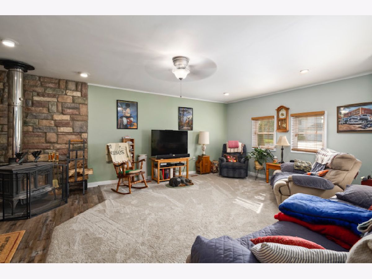 Move-in ready ranch available in unincorporated New Lenox on a half acre, fenced in yard! Property features 3 bedrooms, 2.5 bathrooms, main level laundry, 2.5 car garage (includes wood burning stove) with an additional shed (19x20). Kitchen includes plenty of cabinets, granite counters, ceramic backsplash, breakfast bar and brand new stove (2020). Open floor plan is perfect for entertaining with extended living room and wood burning oven. Finished basement includes heated floors, full bathroom, barn wood bar, storage area and a built in reading nook. Updates include brand new A/C (2020), newer roof (2017), main level carpet (2020), HWH (2015) and kitchen flooring (2020). Bathrooms have been updated to include a jet tub, tile shower, subway tiled wall and updated vanity. Main level laundry has heated floors, brand new washer and dryer (2020) and access to attic where you will find plenty of space for additional storage. Relax outside on your spacious deck that overlooks the large lot complete with a garden and fire pit. This home will not last. Schedule your showing today!