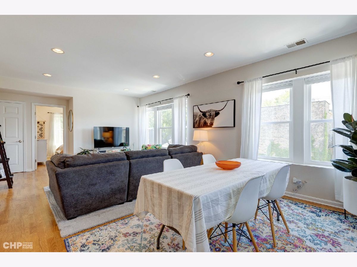 Beautiful & sun-filled, top floor corner 2 bedroom condo with parking near Horner Park! This beautiful unit is spacious, with large, updated open kitchen that leads to your living *and* dining rooms (yes, there is actual room for a dining table!) Step out to your rear deck to enjoy summer fun! This south and west facing unit is flooded with sunlight from new windows. Two nicely sized bedrooms share an updated bath with jetted tub. And, there's a deeded, exterior parking space included in the price! Handsome, established corner brick building with strong reserves. Hardwood floors throughout, central air/heat and in-unit laundry complete this home. Great location on quiet street just a few blocks to Horner Park, with easy access to Chicago River, California Park/McFetridge Sports Center, grocery stores, dining/nightlife and convenient access to I-90/94. Taxes do not include homeowners' exemption. Come home!