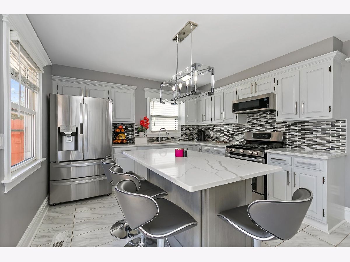 Beautifully updated ranch Home. Bright living room w/ wood laminate flooring & crown molding. Gorgeous remodeled kitchen featuring a big island with breakfast bar, SS appliances, quartz counter tops, & glass tiled back splash. New sliding glass doors out to the spacious fenced in yard where you can relax & entertain on the patio with pergola. Updated bathroom with white vanity. Three bedrooms. Freshly painted throughout. New in 2021 include the roof, garage siding, light fixtures, flooring, fence, gate, & flower beds. 2 car garage. Komarek Elementary School District! Conveniently located near shopping and restaurants. Minutes to the forest preserve. Just under 2 miles to Brookfield. Great location for commuters with I-294 & I-290 Expressways close by.