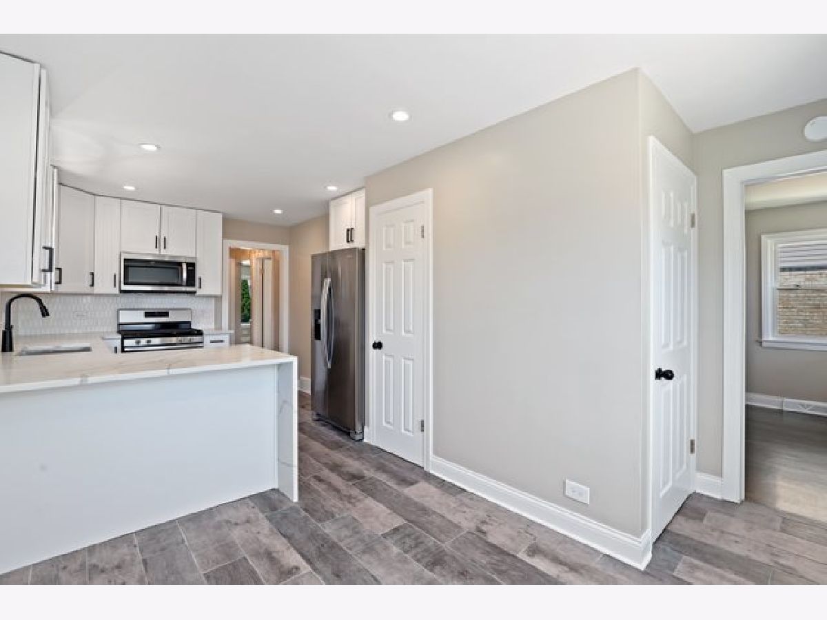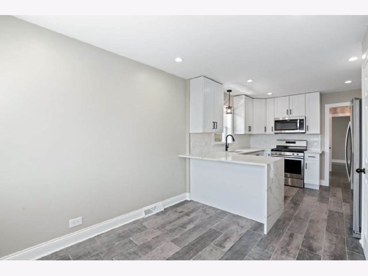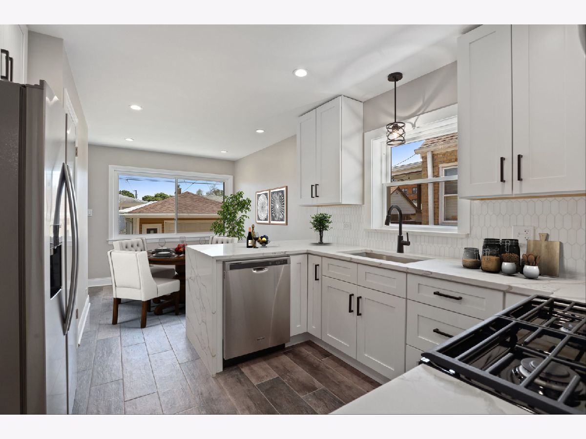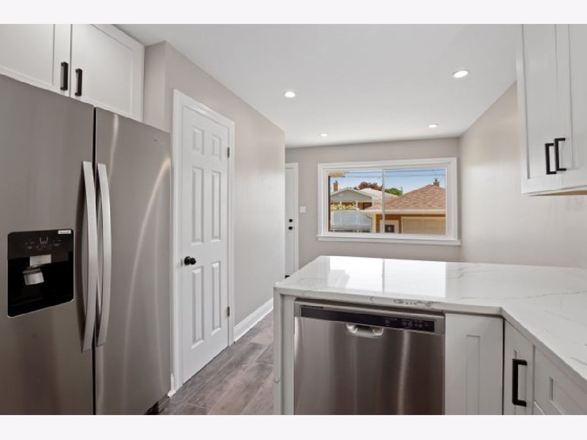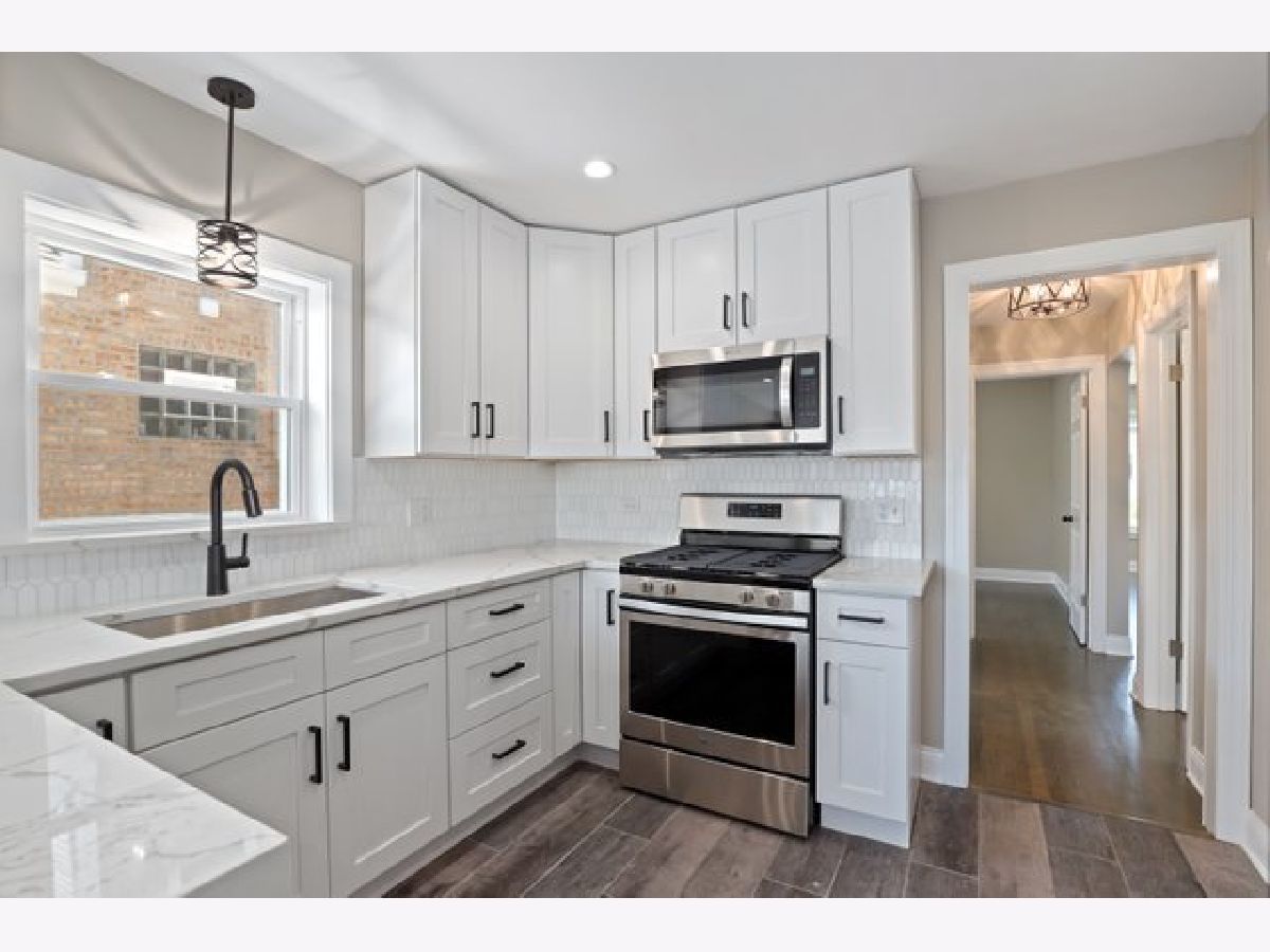 Gorgeously updated 3 bed / 2 bath home on a tree-lined street in Montclare! A spacious sunlit open living room greets you as you enter the home. Modern dark hardwood floors and neutral paint continue throughout the main level. The all-white renovated kitchen with quartz waterfall counters, marble backsplash and stainless steel appliances is sure to impress all home cooks. The fully finished basement offers a full bathroom, utility room, laundry room and includes an open floor plan for entertaining, hobbies or additional building ideas. New roof, new plumbing, new electric, and sleek recessed lighting throughout the house. Detached 1 car garage with new driveway and large, fenced-in backyard. Great location, close to restaurants, shopping and parks with easy access to I-90, I-294 and O'Hare. Come see it today!