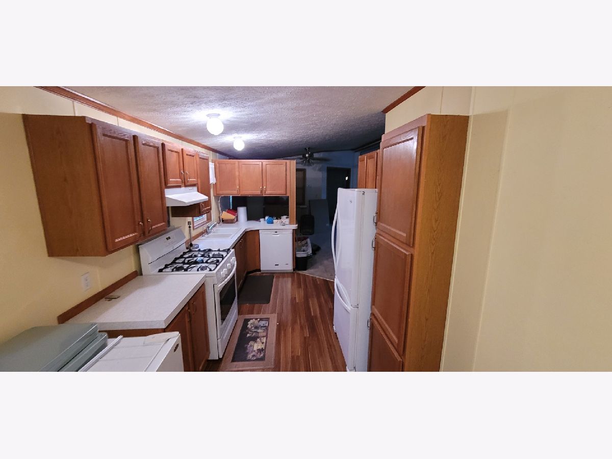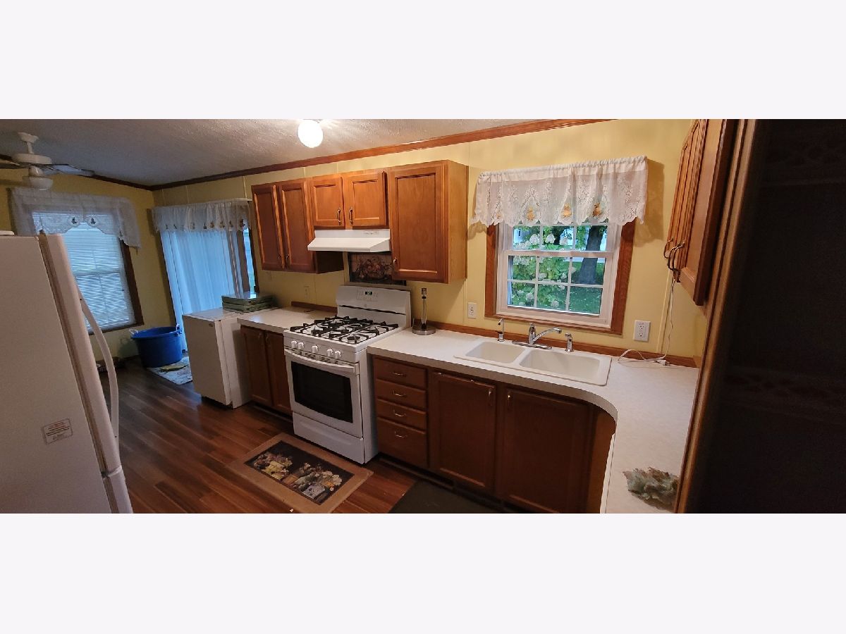 Very nicely maintained 2003 mansion model double wide. Almost 1,500 sq ft of living space. Including stove, refrigerator, dish washer, washer & dryer, Oak cabinets in kitchen and vaulted ceilings. Dining area with built in hutch. Mansion bedroom has walk in closet and private bath with garden tub. 10 x 11 office has French doors and could be fourth bedroom. 10 x 18 patio and 8 x 10 shed.