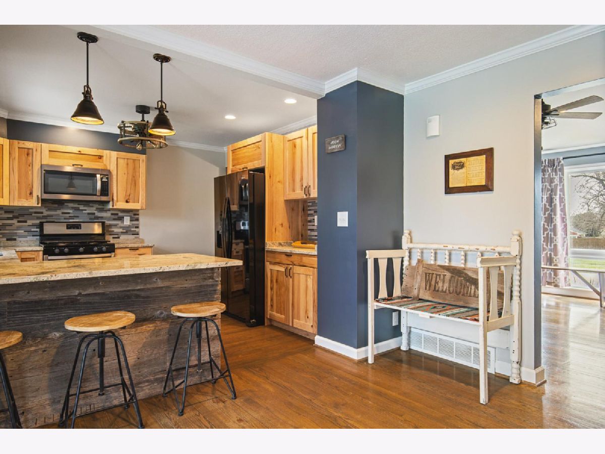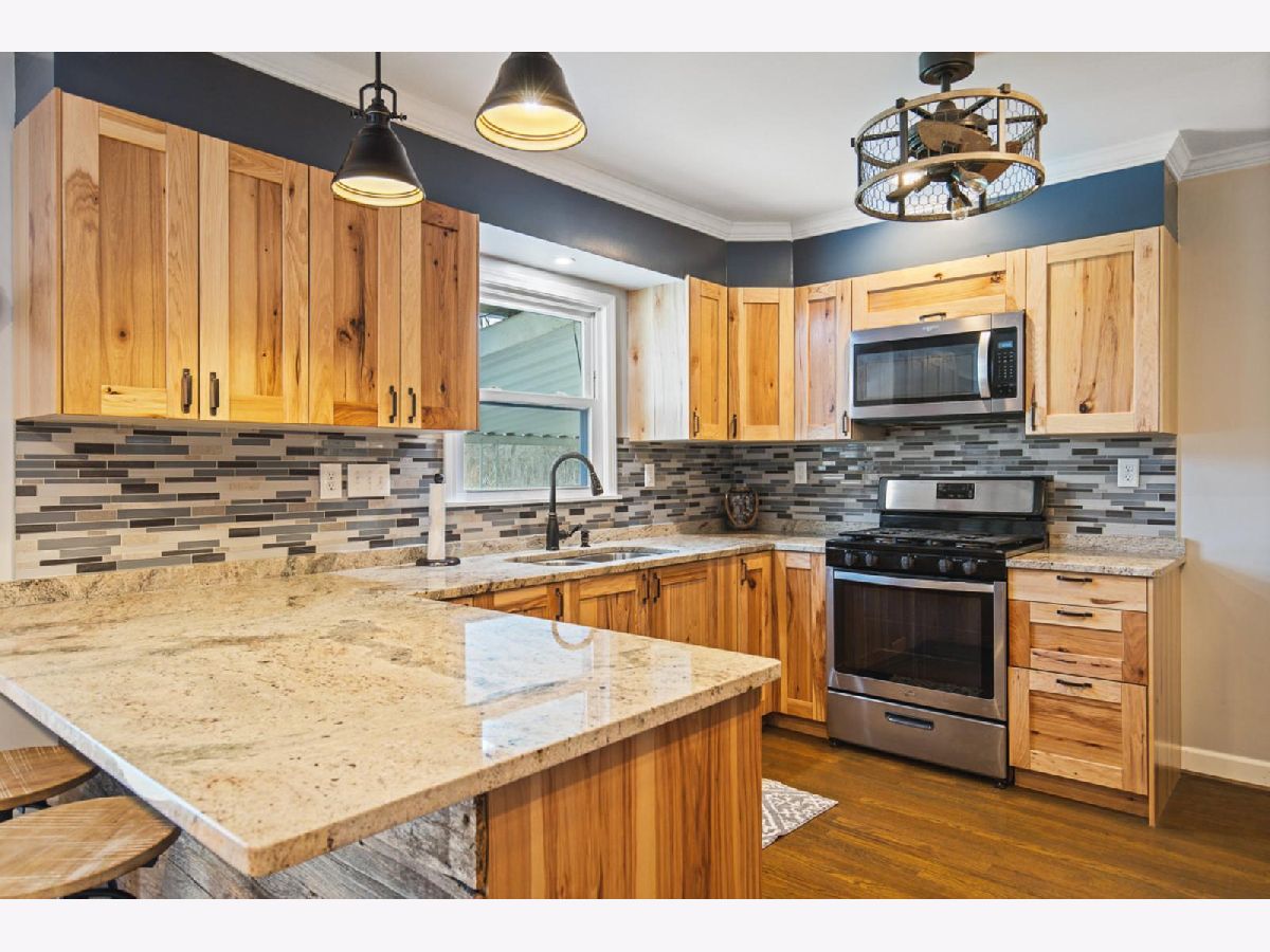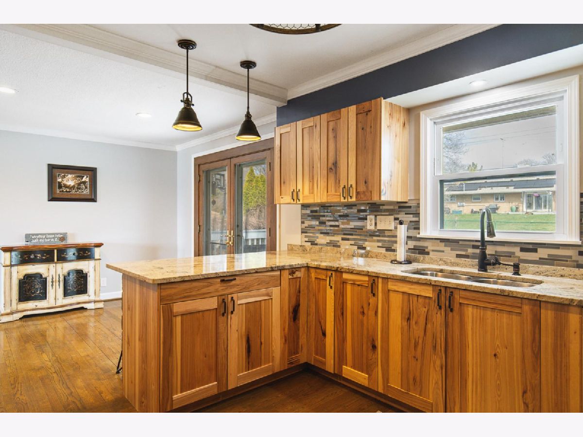 BEAUTIFUL TRANSFORMATION IN THIS LOVELY RANCH WITH GREAT LOCATION! LIGHT FILLED LIVING ROOM WITH HARDWOOD FLOORS AND VAULTED CEILING GREETS YOU. NEW EAT-IN, CABINET FILLED KITCHEN FEATURING GRANITE COUNTERS, TILE BACKSPLASH AND HARDWOOD FLOORS. REMODELED BATH AND 2 BEDROOMS COMPLETE THE MAIN FLOOR. NEWLY REMODELED BIG REC ROOM IN LOWER LEVEL FOR ENTERTAINING! LARGE DECK OFF KITCHEN LEADING TO COVERED PATIO AND FENCED YARD. 2020 ROOF, 2021 KITCHEN, 2022 GARAGE DOOR, 2023 BASEMENT WATER PROOFED, NEWER WINDOWS EX. LRM. APPLIANCES LESS THAN 5 YRS OLD. RADON MITIGATION SYSTEM INSTALLED. WATER SOFTENER NEVER USED BY SELLER.