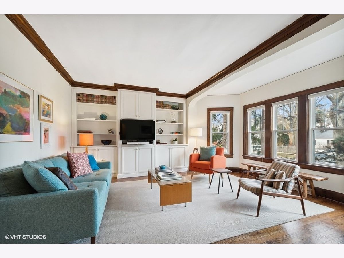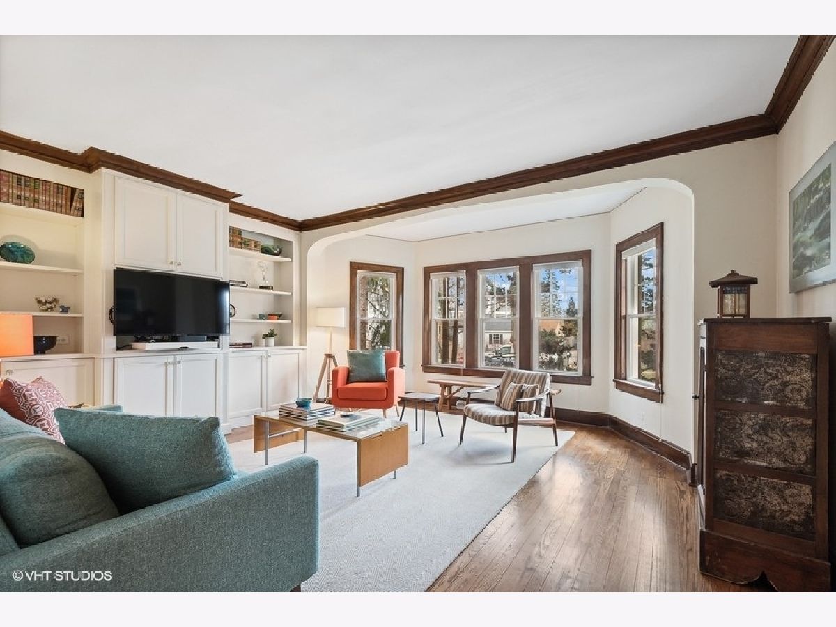 Charm abounds in this expanded bungalow with three finished levels of versatile living space - PLUS an enchanting perennial-filled yard and garden that has been featured on the Evanston Garden Walk! Welcoming living room with quality built in bookcases, sunny dining room and an exceptionally designed kitchen that leads to a coveted screened in back porch offer wonderful options for entertaining (and can be glass-enclosed for enjoyment through late fall/early winter). Two bedrooms (one currently set up as an office with built-in bookcases) plus a white ceramic tile bath completes the first floor. The large primary bedroom with multiple nooks for reading or furniture is on the second level, along with a sunlit second bedroom, play area and second updated bathroom. Not to be missed - the walk out lower level offers tremendous additional space for a playroom, studio, office or whatever you need. The yard is truly exceptional and is consistently in bloom from spring through late fall - a wonderful sanctuary just steps from the back door on a 194' lot. Located in Lincolnwood School district and an easy walk to Central Street, Perkins Woods Forest Preserve and all that NW Evanston has to offer!
