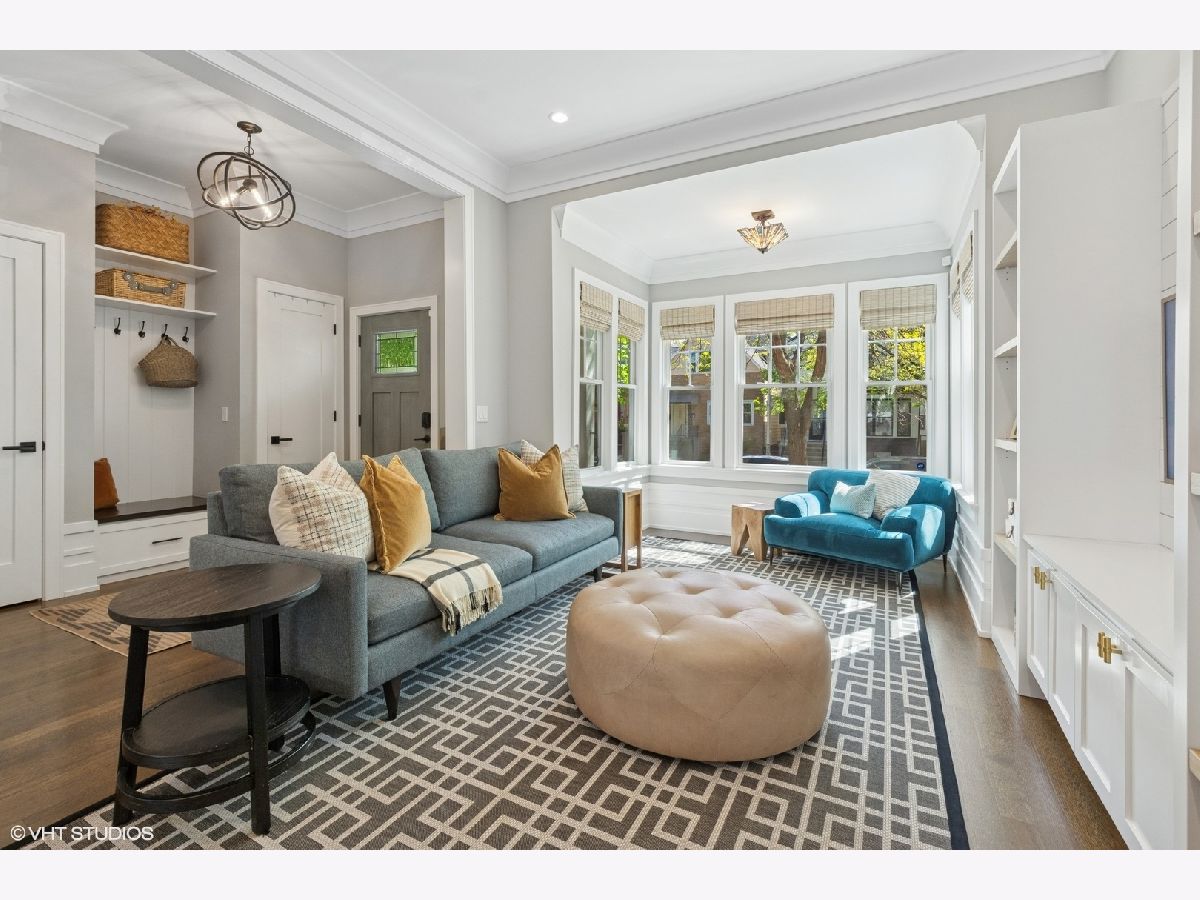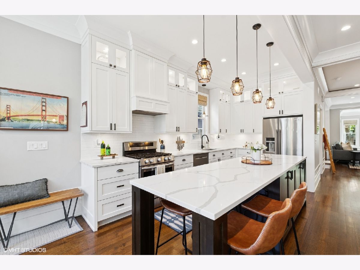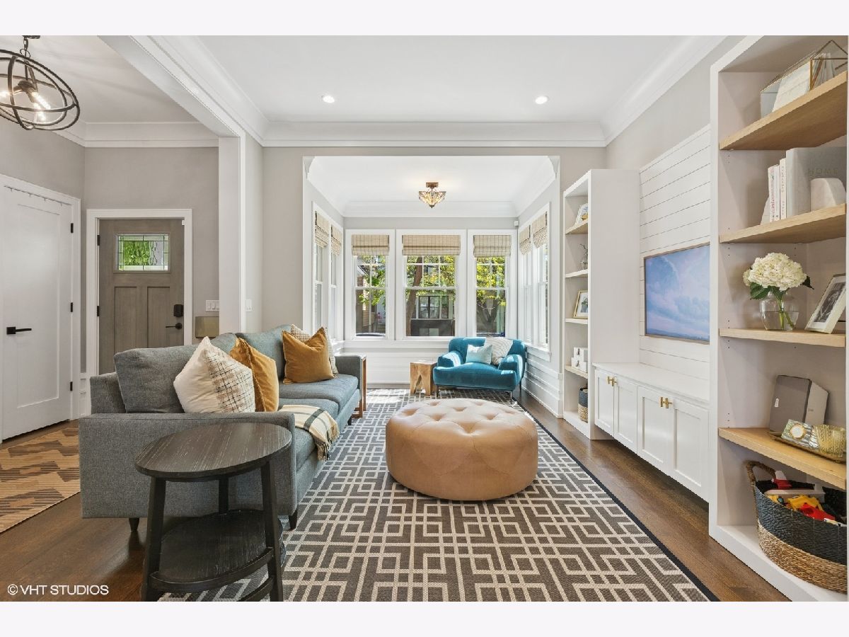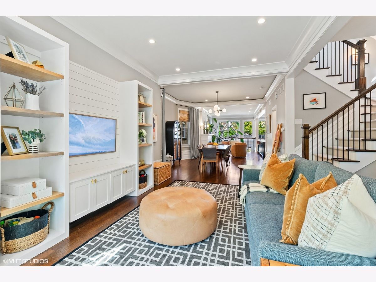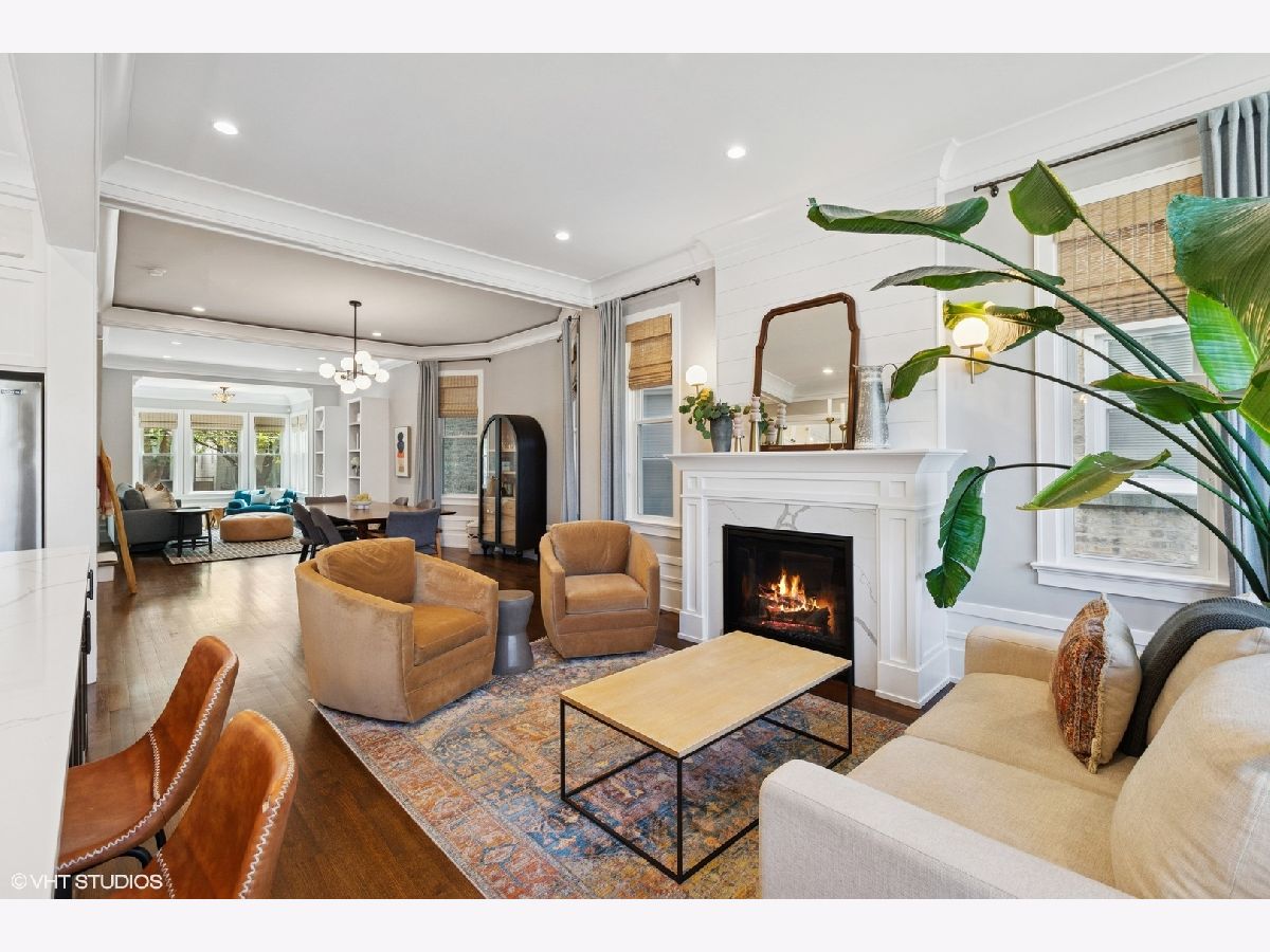 This beautiful home was built in 2020 and features fine finishes, gracious cove, base, and wall mouldings, spacious room sizes, loads of natural light, gleaming rift and quarter-sawn oak floors, and a 2-car garage plus 2 exterior parking spaces. The entry foyer offers plentiful closet space and a built-in bench. The living room features east-facing bay windows outfitted with grasscloth window shades, a generous seating area, and custom, built-in shelving. The gracious dining area can accommodate an intimate family dinner or a large dinner party. A fully appointed chef-grade kitchen features painted wood cabinetry with under-cabinet lighting, quartz countertops, stainless appliances, a large prep island with seating, an organized walk-in pantry, and loads of additional storage. The family room is anchored by a fireplace with a shiplap and quartz surround and fabulous light from 5 large west-facing windows and two south-facing windows, and walks out to the large, beautifully landscaped backyard, featuring synthetic turf, hardscape, built-in seating, and irrigation. The top floor features the primary suite with an outfitted walk-in closet, custom wall covering, and a marble tile bathroom with a heated floor, double sink vanity, and an oversized shower. There are two additional bedrooms and a guest bath on the second floor. The lower level features a coat closet, a huge recreation room, a 4th bedroom, large enough for a bed or pull-out sofa, side tables, a walk-in closet, and a spacious office niche. Huge utility/laundry room with side-by-side washer dryer, folding table, utility sink, cabinetry, and space for additional storage furniture. Additional special details include two separate HVAC systems, a tankless hot water tank, spray foam insulation, a drain tile system including sump/ejector pumps, Low-E Argon thermopane windows, architectural GAF shingle roofs, stone and James Hardie siding exterior. A beautiful home at the epicenter of Logan Square and Avondale! A short walk to the Boulevard and Farmers Market (12 min), the Blue Line (6 min), Lula Cafe (12 min), The Brewed (7 min) and more!