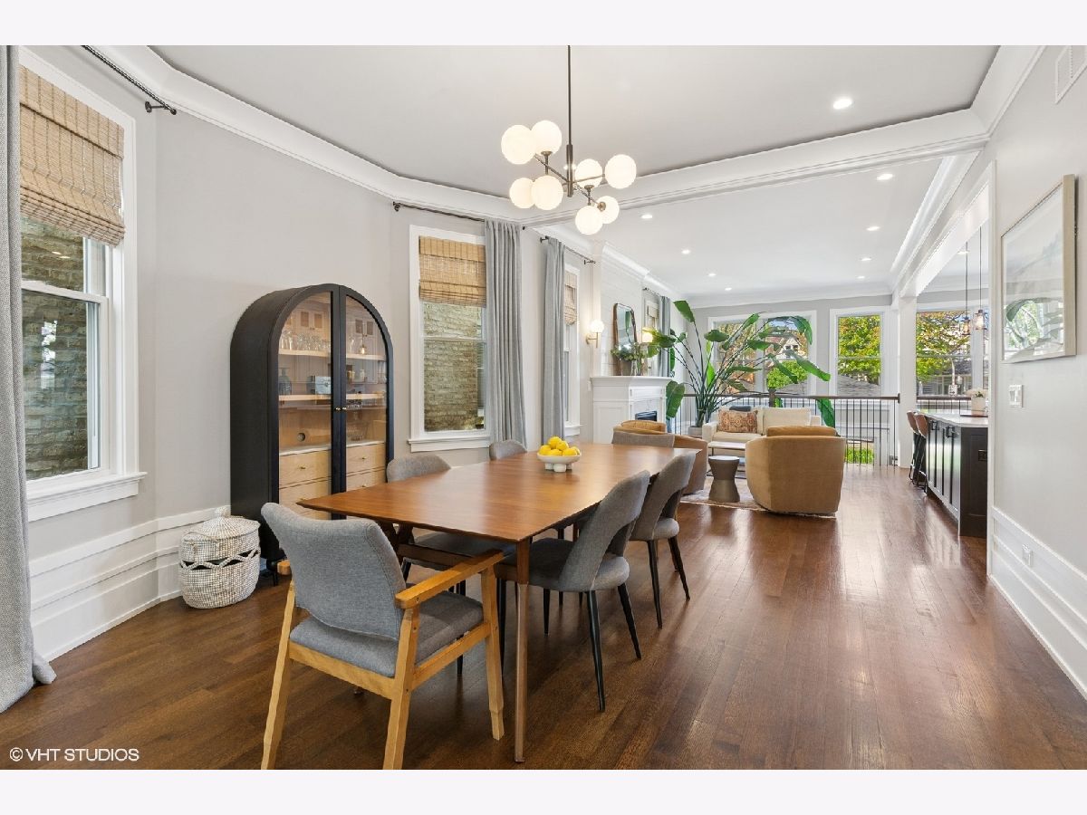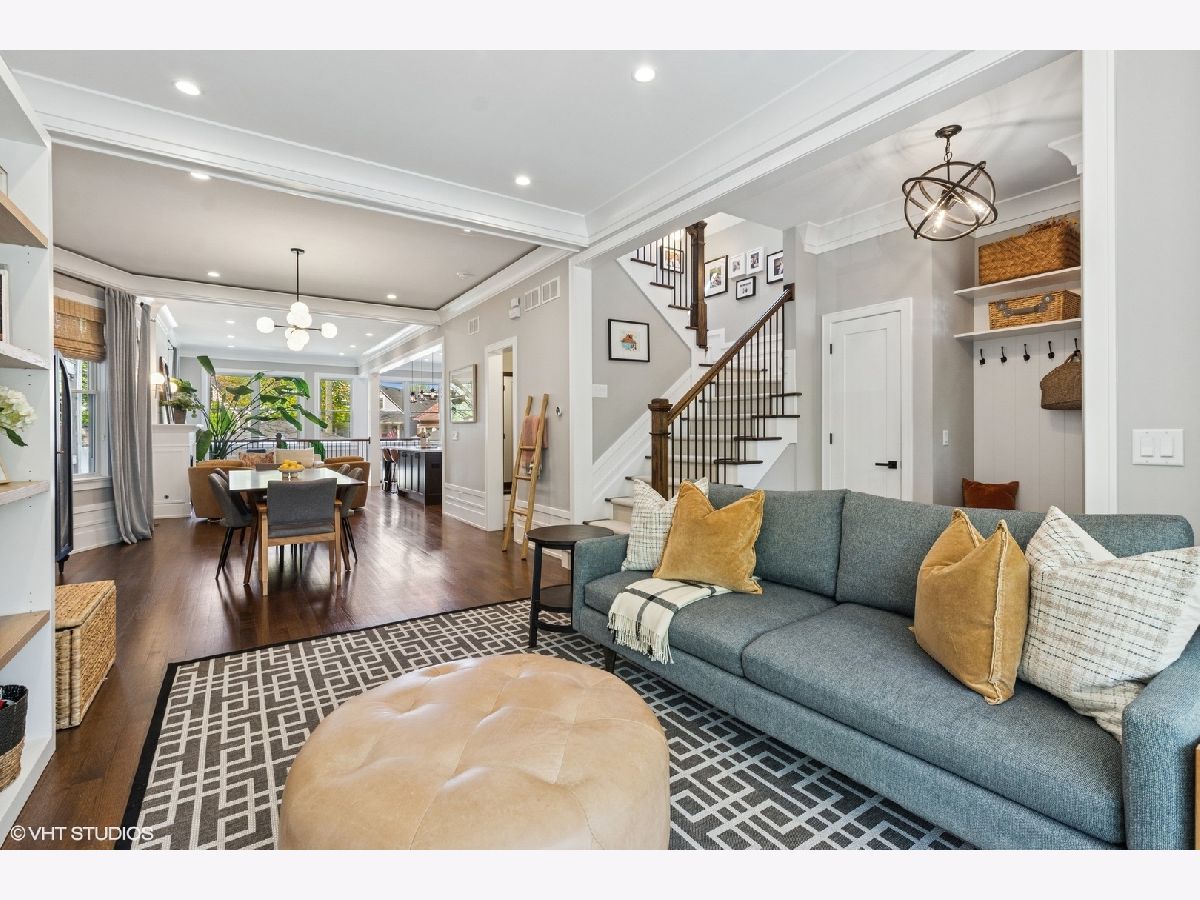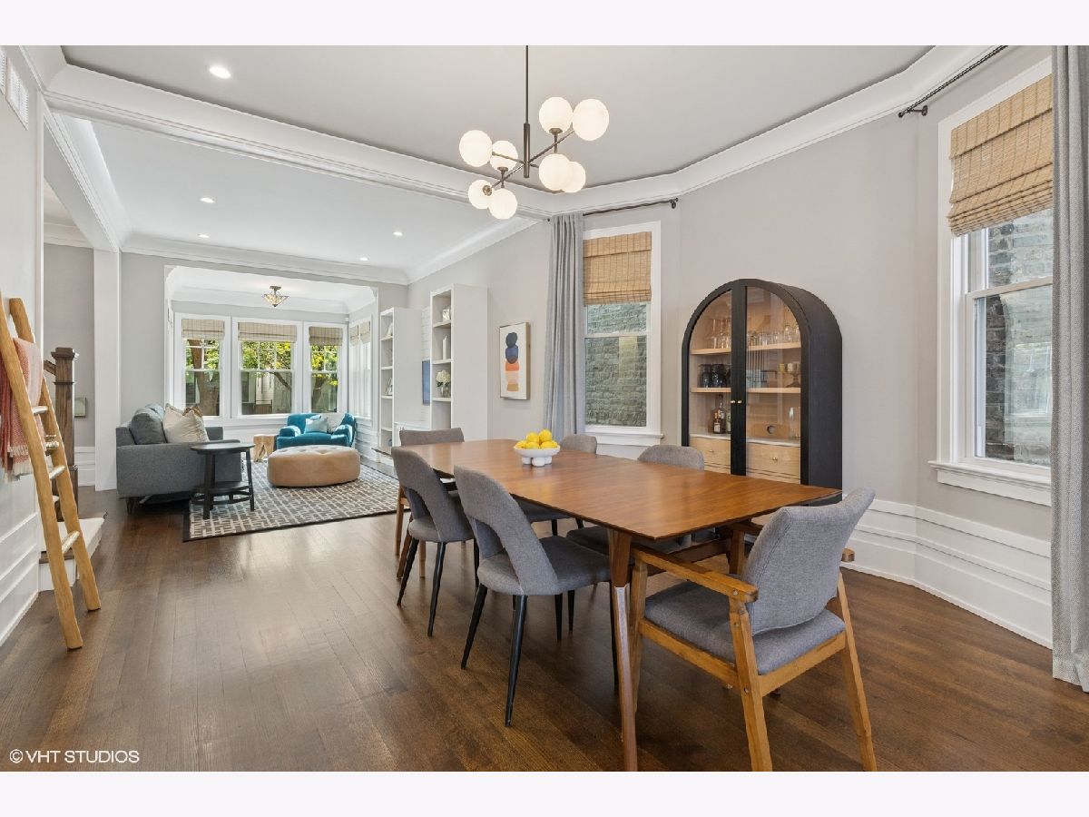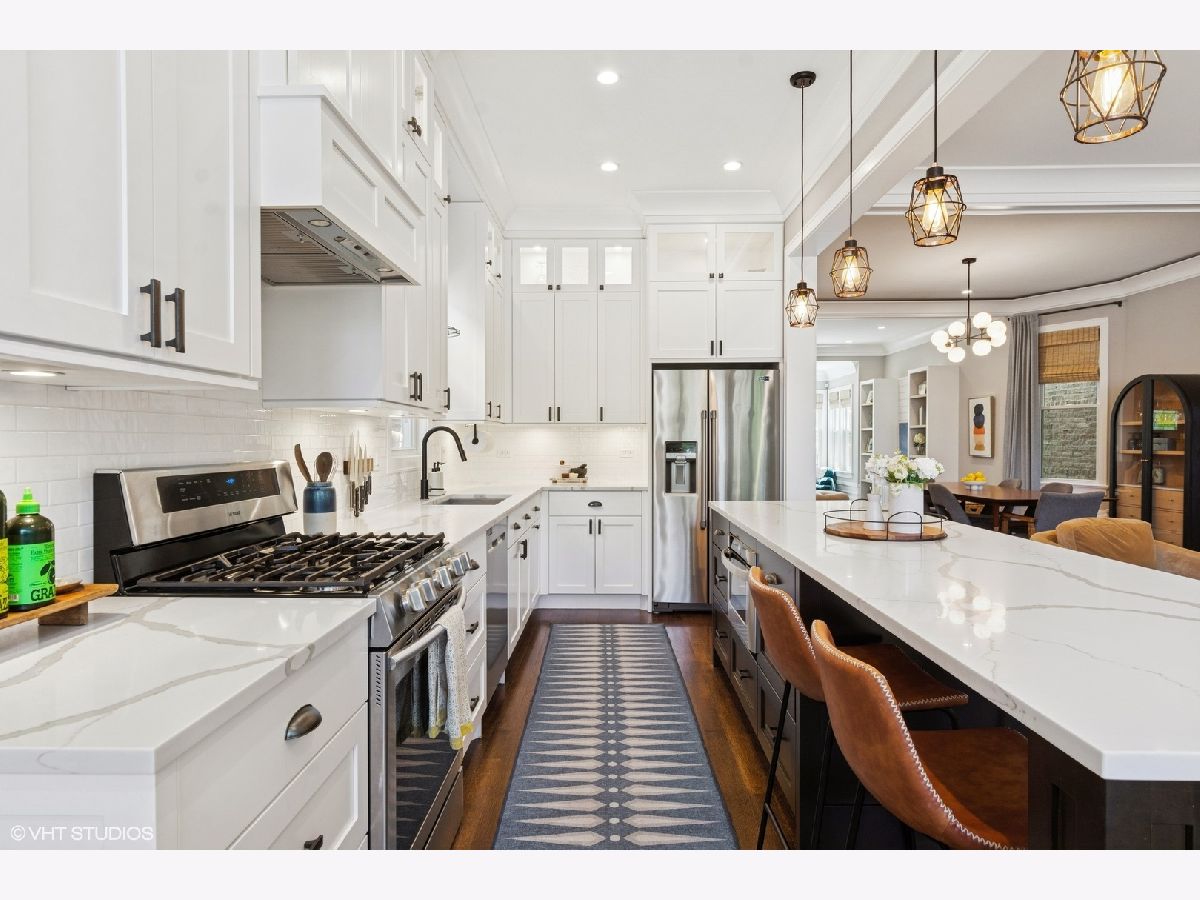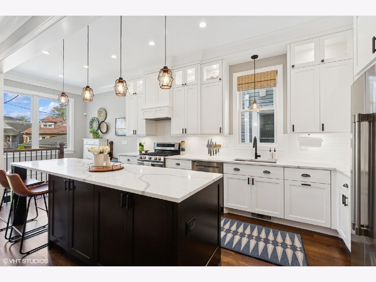 This beautiful home was built in 2020 and features fine finishes, gracious cove, base, and wall mouldings, spacious room sizes, loads of natural light, gleaming rift and quarter-sawn oak floors, and a 2-car garage plus 2 exterior parking spaces. The entry foyer offers plentiful closet space and a built-in bench. The living room features east-facing bay windows outfitted with grasscloth window shades, a generous seating area, and custom, built-in shelving. The gracious dining area can accommodate an intimate family dinner or a large dinner party. A fully appointed chef-grade kitchen features painted wood cabinetry with under-cabinet lighting, quartz countertops, stainless appliances, a large prep island with seating, an organized walk-in pantry, and loads of additional storage. The family room is anchored by a fireplace with a shiplap and quartz surround and fabulous light from 5 large west-facing windows and two south-facing windows, and walks out to the large, beautifully landscaped backyard, featuring synthetic turf, hardscape, built-in seating, and irrigation. The top floor features the primary suite with an outfitted walk-in closet, custom wall covering, and a marble tile bathroom with a heated floor, double sink vanity, and an oversized shower. There are two additional bedrooms and a guest bath on the second floor. The lower level features a coat closet, a huge recreation room, a 4th bedroom, large enough for a bed or pull-out sofa, side tables, a walk-in closet, and a spacious office niche. Huge utility/laundry room with side-by-side washer dryer, folding table, utility sink, cabinetry, and space for additional storage furniture. Additional special details include two separate HVAC systems, a tankless hot water tank, spray foam insulation, a drain tile system including sump/ejector pumps, Low-E Argon thermopane windows, architectural GAF shingle roofs, stone and James Hardie siding exterior. A beautiful home at the epicenter of Logan Square and Avondale! A short walk to the Boulevard and Farmers Market (12 min), the Blue Line (6 min), Lula Cafe (12 min), The Brewed (7 min) and more!