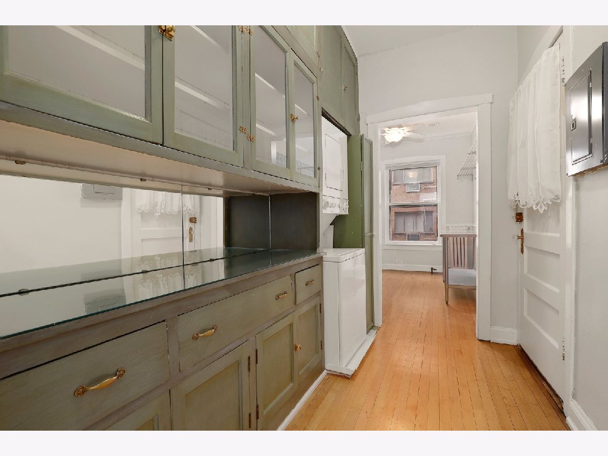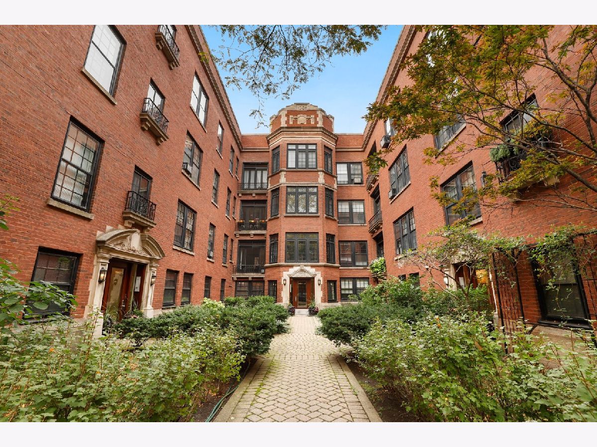 Bright and charming condo in a beautifully landscaped courtyard building on a tree-lined street in East Lakeview just steps from the lake. Huge one-bedroom condo in The Fairbanks with charming vintage details make this the perfect home. Spacious living room with fireplace flanked with built-ins leads to full-sized separate dining room. Kitchen with cherry cabinets and butler's pantry off kitchen with gorgeous built-in hutch. Remodeled bathroom. Other features include crown molding, oversized trim, hardwood floors throughout, large foyer and in-unit washer/dryer and additional storage space. Street and rental parking options in neighborhood. Well-maintained building and assessment includes heat. Great location - easy access to lakefront, park, Diversey Harbor, driving range, Lincoln Park Zoo, restaurants, coffee shops, shops and more! Don't miss this gem!