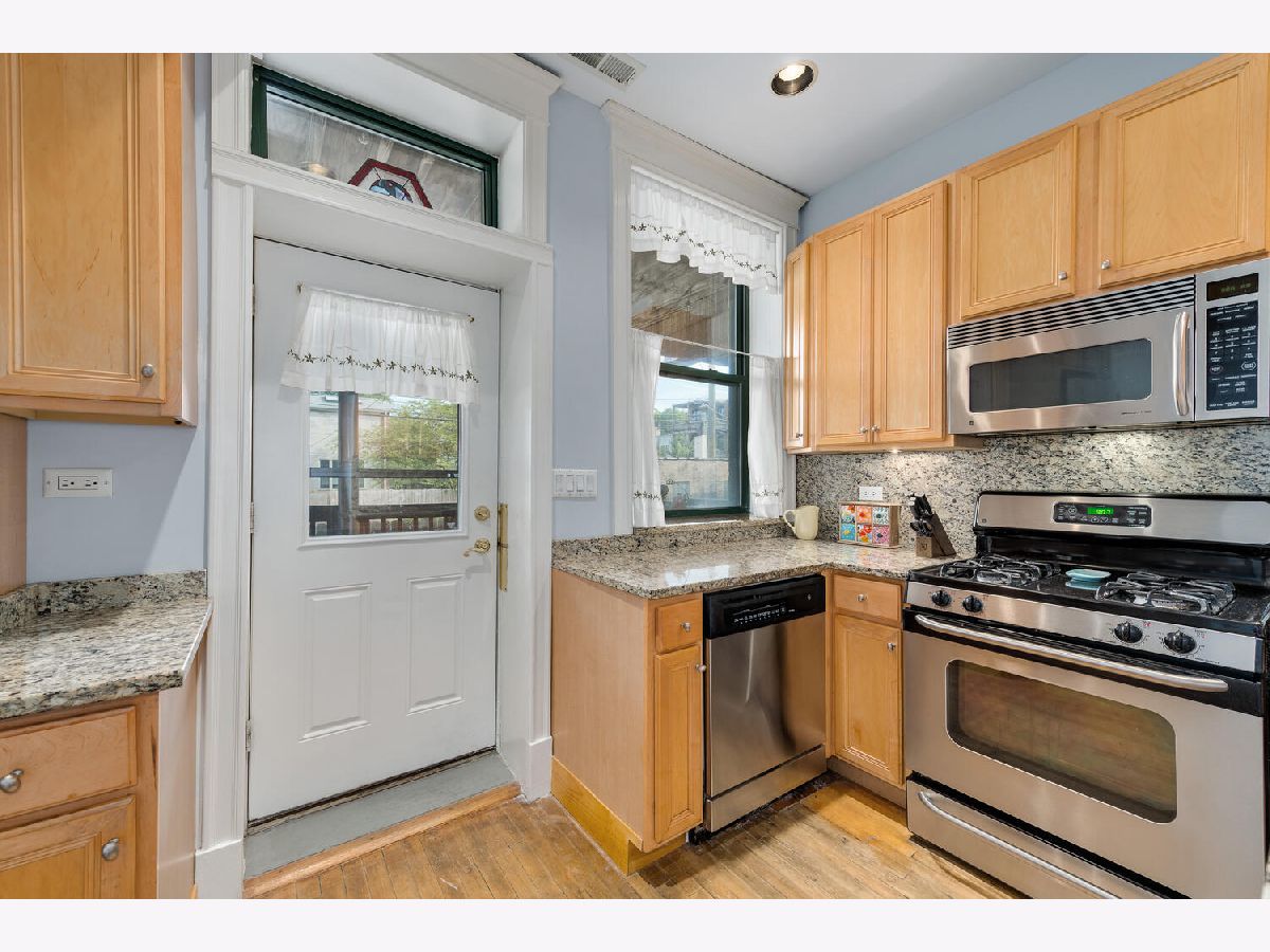 Prime location!!! 2 bed, 1 bath Logan Boulevard condo. This lovely South-Facing home abounds with gorgeous vintage details featuring private entry foyer, Sunny and spacious living room with Bay Windows and Custom Plantation Shutters, Separate formal dining room with an Exposed Brick wall, Queen-sized primary suite, Second bedroom perfect for a guest suite, Work-From-Home office and/or flex space, bathroom has stone tile step-in shower with glass door and stone vanity top, kitchen features SS appliances and granite countertops that walks out to your Large Private Back Deck great entertaining & grilling. Entire home was just Freshly Painted and features hardwood floors throughout, beautiful millwork baseboards, windows, and entryways. In-Unit Washer & Dryer, Huge additional storage space, and 2-car tandem exterior parking (included in price) finish off this beautiful home. Landmark 6-flat building located on highly sought-after tree-lined Logan Boulevard just steps away from the square, trains and all the shopping, dining, and nightlife Logan Square has to offer! This is a must-see! ***First showings will be during open houses on Sat. 9/17 from 9:30am-11:30am AND Sun. 9/18 from 12:00pm-2:00***