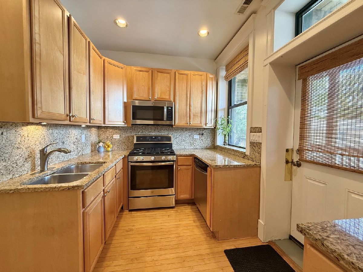 Super hot prime location gem! Rarely available 2BR + Office/1BA rehabbed condo nestled in the heart of Logan Square, one of Chicago's most sought-after neighborhoods. Perfect blend of vintage and modern lovely south facing condo in a historic 6-unit building on the tree lined blvd.. Rehabbed vintage all- brick building with beautiful entryway. Property features recently buffed and recoated original hardwood floors throughout, bay windows, marble tiles spa shower, granite countertops and backsplash kitchen, newer SS appliances, exposed brick in separate dining room, beautiful original trim and doors, in-unit laundry W/D, generous back deck, 2 car tandem parking spot, huge storage space. Freshly painted through out. Garbage disposal 2025, hot water heater 2023. Enjoy the vibrant Logan Square lifestyle with the Boulevard right outside your door. Steps away from the Square, train, extremely popular Sunday farmer's market, award-winning restaurants, bars and all the shopping, nightlife Logan Square has to offer. This is the home you don't want to miss to see!!