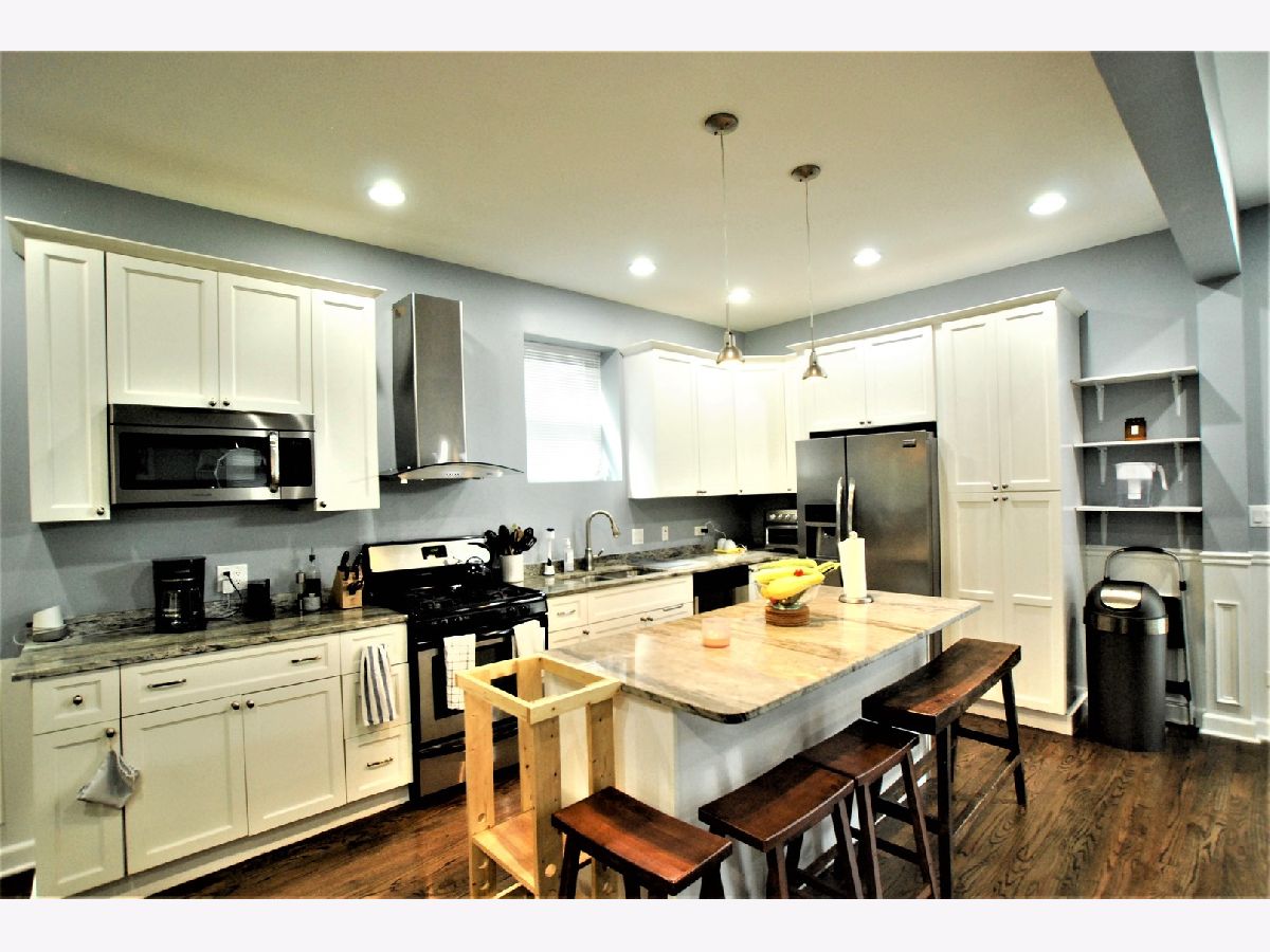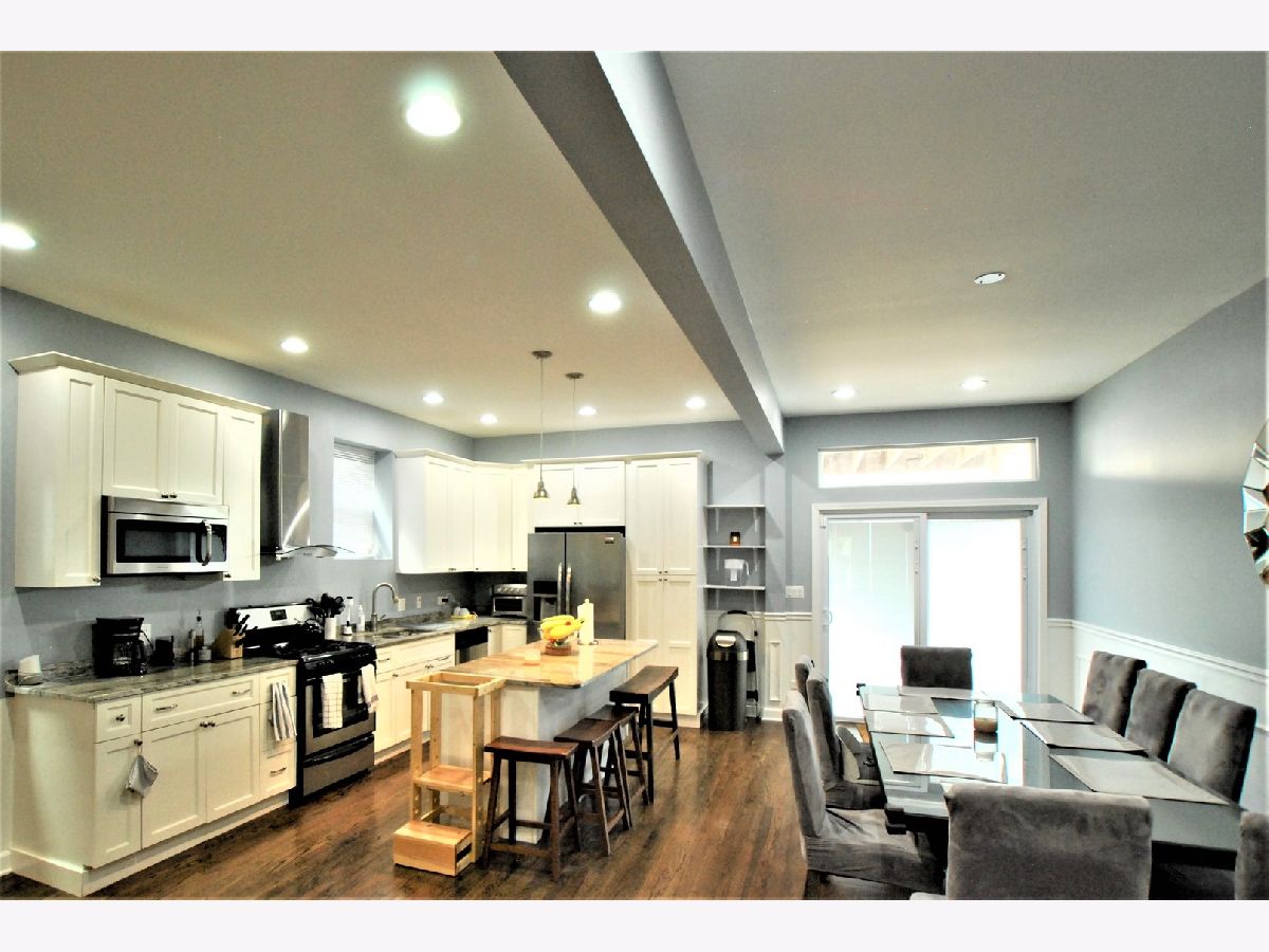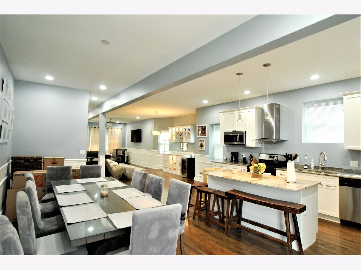 Avondale/Logan Square Victorian 4 Bedroom, 3.5 Bathroom with Flowing Open Floor Plan. Hardwood floors throughout, Stainless Steel appliances. Island with seating and huge open dining area adjacent to outdoor deck. New built in bar. Great for entertaining! Additional deck off the master suite as well. Master bath with Whirlpool tub+ separate shower, double vanity, and walk in closet, with full Elfa shelving system. Finished basement with large family room perfect for playroom or workspace, full bathroom, and 4th bedroom. Private fenced yard. Separate Laundry Room. Newer 2 Car Garage. New flood control system with 4 year warranty included. Easy access to the 90/94 and the Blue Line; walking distance from Logan Square restaurants and Logan Blvd.
