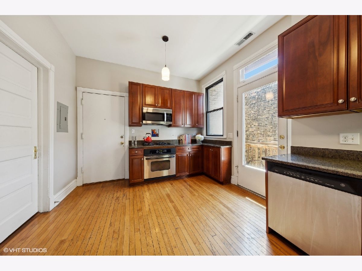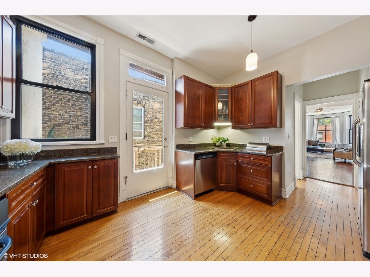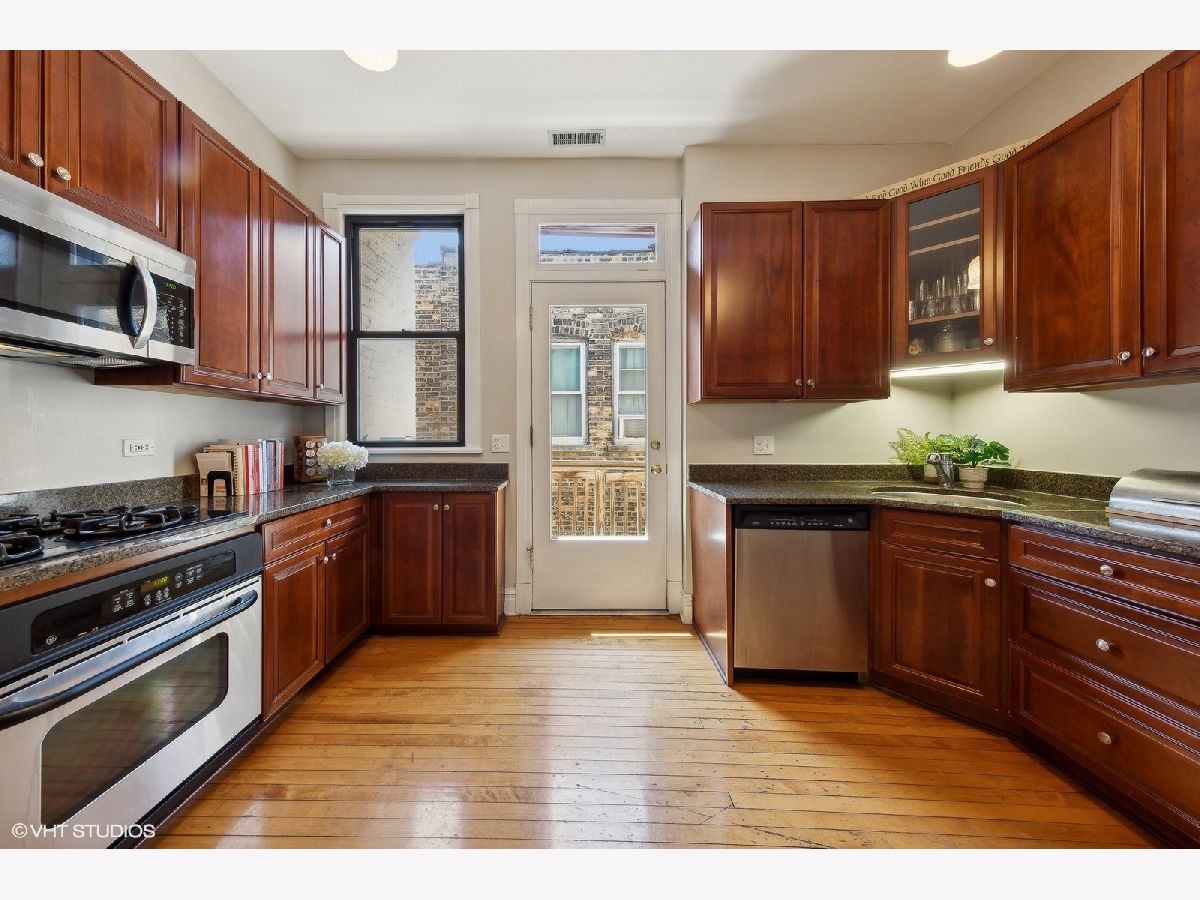 Vintage charm meets modern amenities in this beautiful Greystone 3 bedroom/1 bath gut rehab 2004 condo. Wonderful finishes throughout to include 10 foot ceilings, huge sun-drenched separate living/dining room, restored built-in hutch and original ornate decorative fireplace, original hardwood floors and trim, newer windows and central heat/AC. Open kitchen with generous cabinet space, granite counter tops, stainless steel appliances and a private deck off kitchen-ideal for grilling. Assigned parking space included in price. Perfect Lakeview location with shopping, night life, restaurants and transit just minutes away. Great for an investor or live-in owner. Come for a visit, you will want to stay.