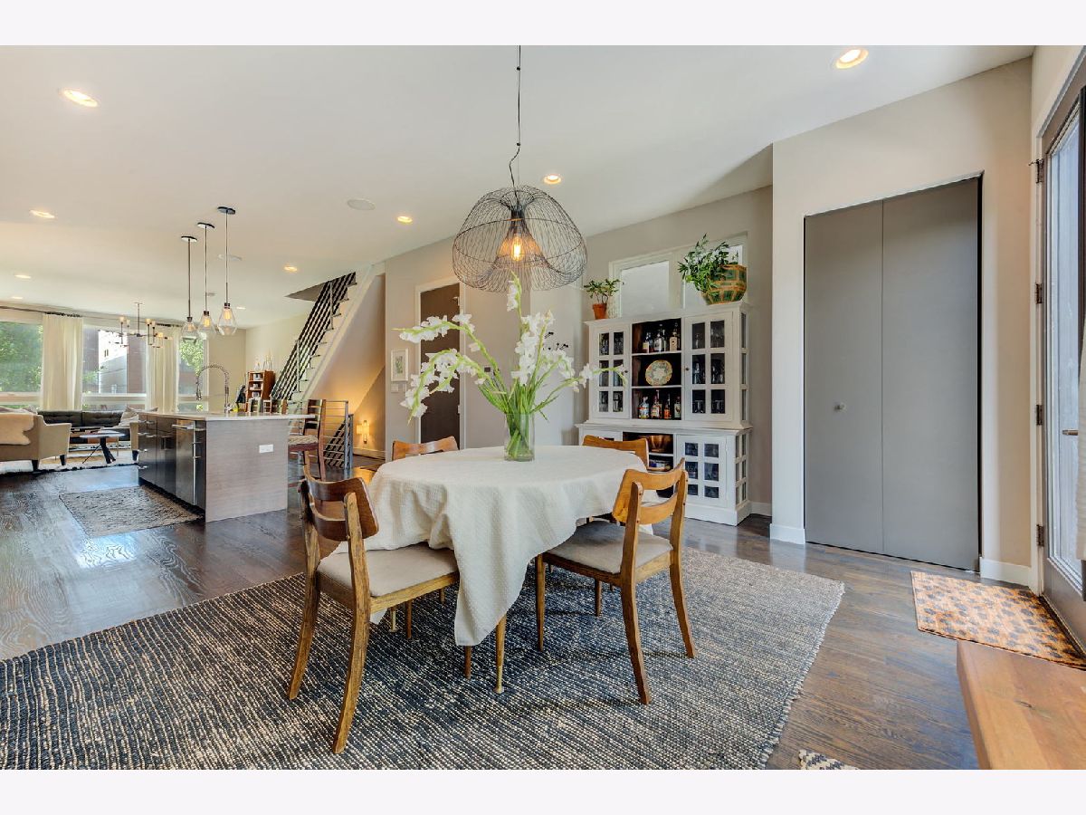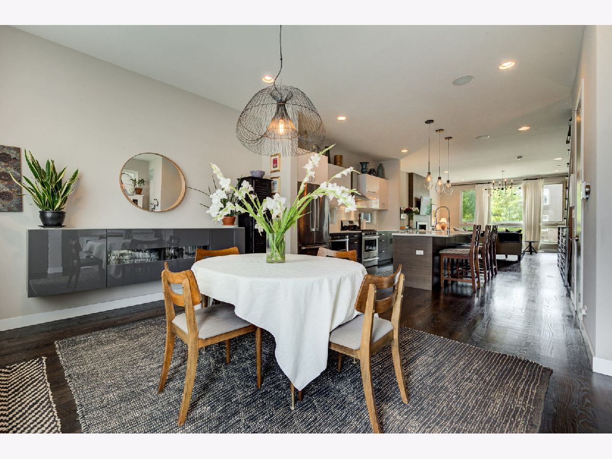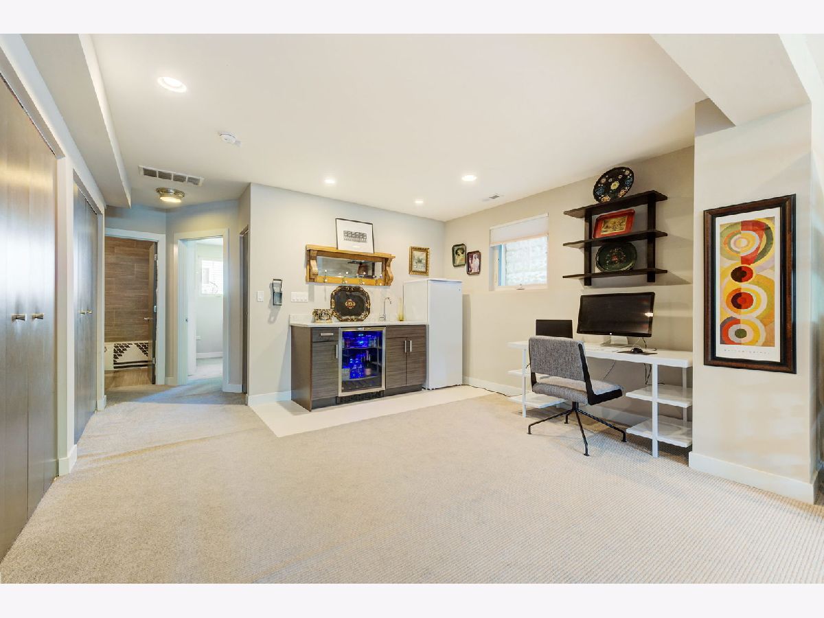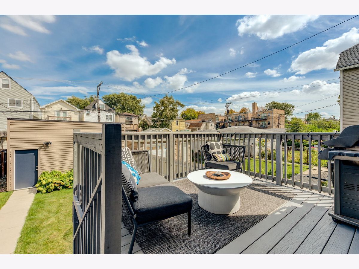 This beautiful landscaped single-family home is located on a quiet, tree-lined street bordering Logan Square and Hot Avondale! Energy star rated 4 bed/3.5 bath home that has style and warmth. Your new home features, soaring high ceilings throughout, an open concept, sun filled living room, and a huge island which is the focal point to this entertainer's paradise. The dining room is located off the kitchen which hosts a custom multi-functional buffet cabinet in rich high gloss lacquer and a modern light fixture exudes sophistication. Continue outside onto the meticulously maintained modern deck with a natural gas grill. Relax while swinging under the deck gazing over the plush green lawn, beautiful mature hydrangeas and a pink flowering Eastern Redbud. The upstairs is outfitted with three spacious bedrooms, bathrooms with floating vanities, gorgeous countertops, modern fixtures and a laundry closet with washer/dryer. The basement has high ceilings, lots of light, built-in wet bar and beverage cooler. This house comes with a tankless water heater, built-in speakers wired through out and two car detached garage with custom shelving. Steps from the family friendly playground/park, 312 Bike Path, Mariano's/Jewel, Etta, Metropolitan Brewery, freeway on ramp both east/west, too much to list! Suburban living in the city!