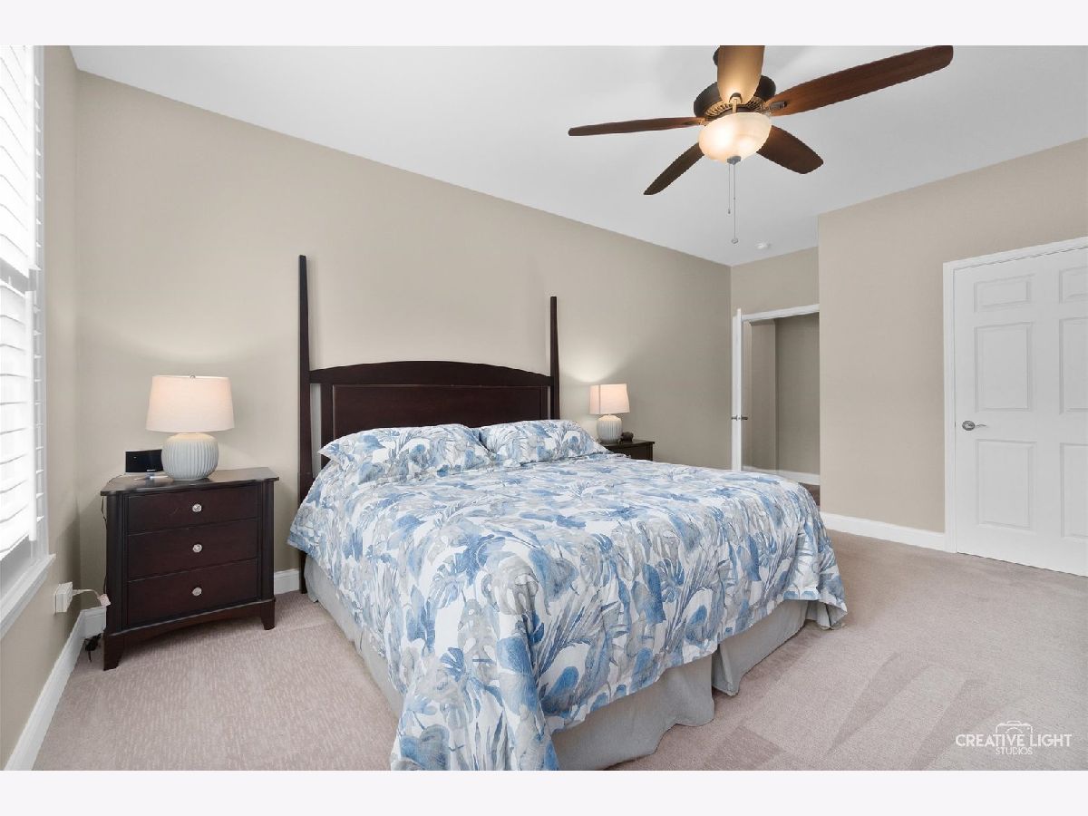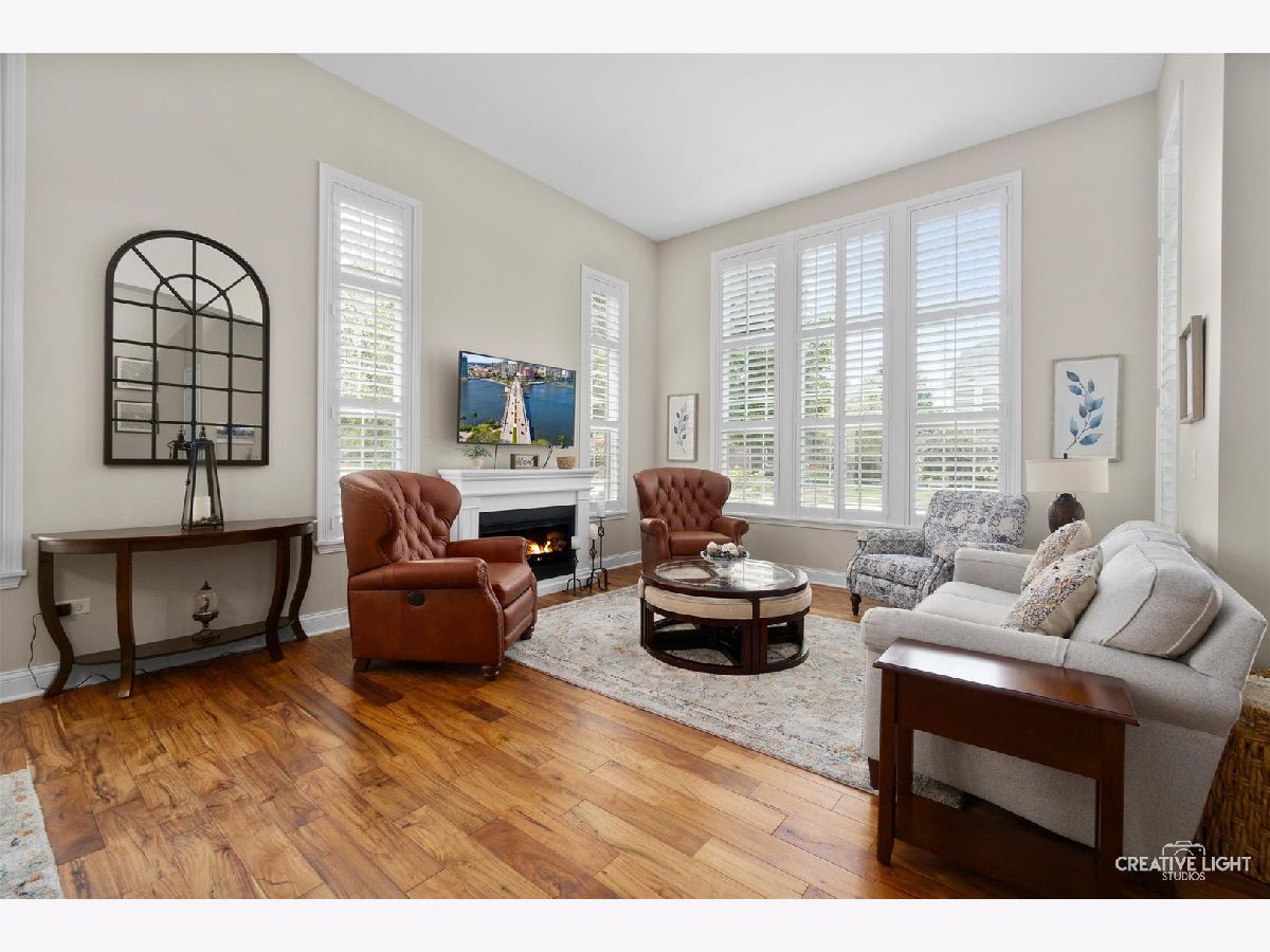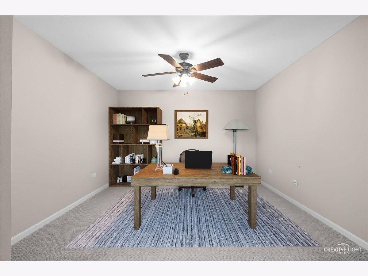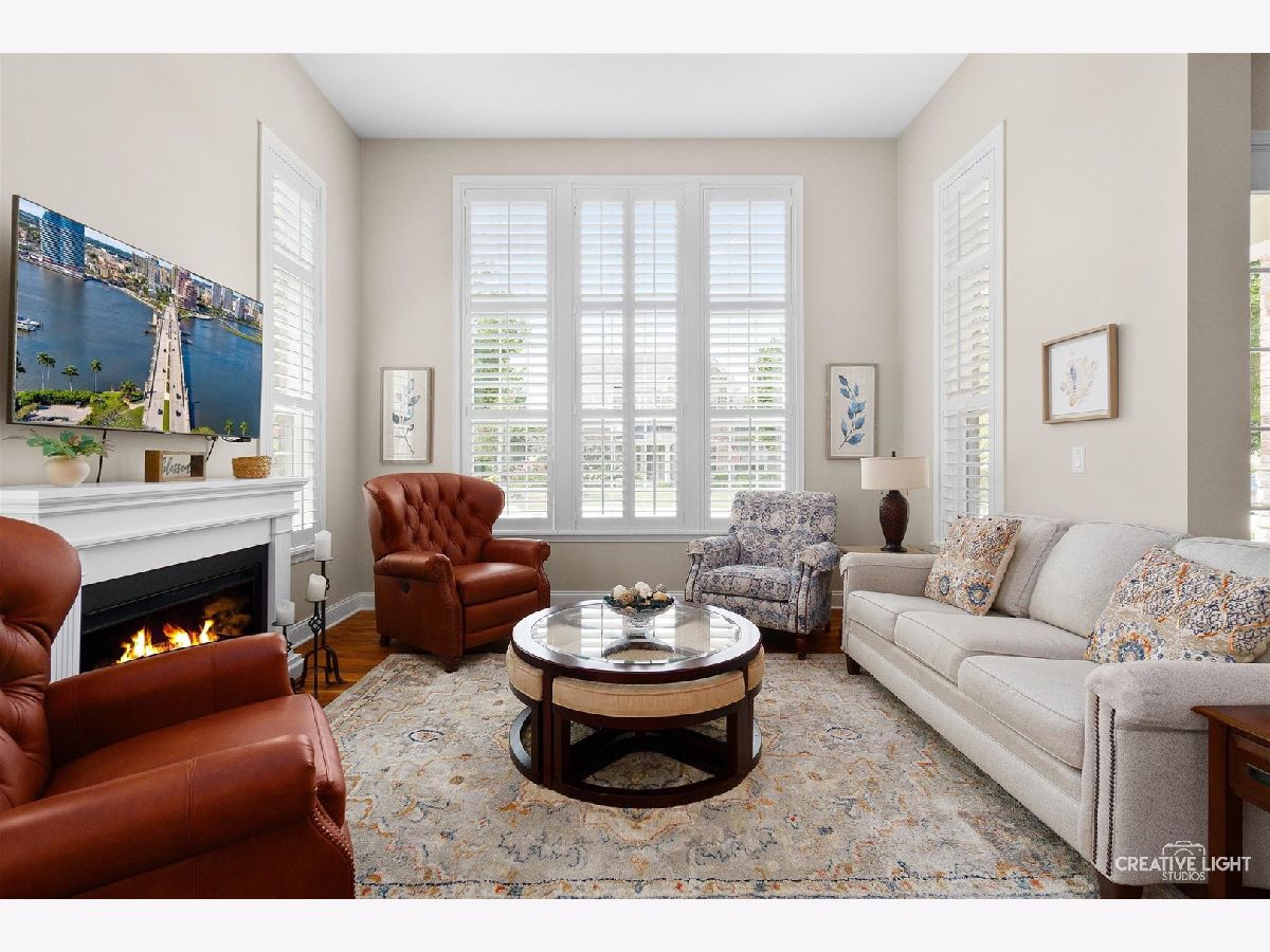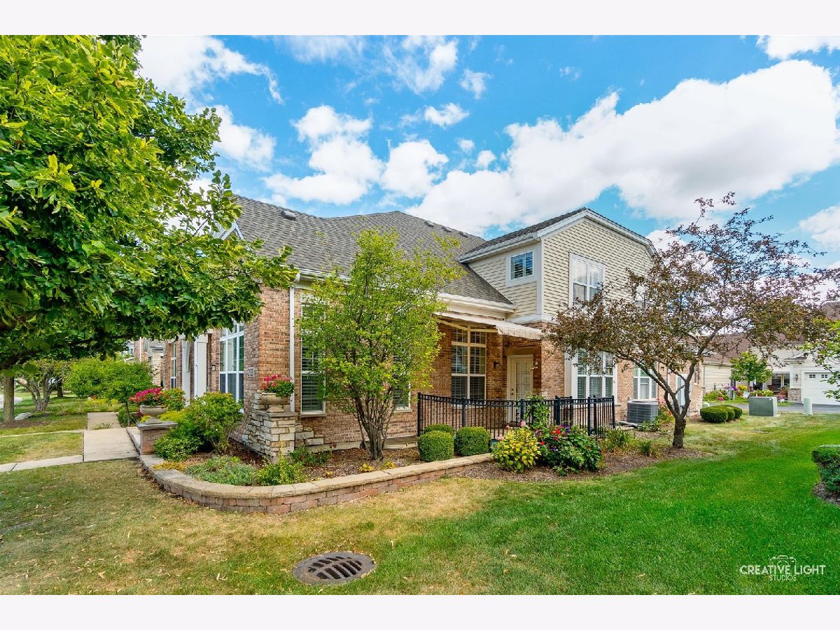 Located in Naperville's prestigious 55+ gated community, this stunning Cannes model END UNIT offers a sun-drenched living space with a coveted private office, FULL BASEMENT, and impressive design elements. Natural light floods the open-concept living and dining areas through a breathtaking wall of windows, highlighting 12-foot ceilings and refined PLANTATION SHUTTERS, adding convenience and timeless charm. The living room is anchored by a remote-controlled fireplace, creating a warm and inviting atmosphere. The upscale design extends throughout, from the custom iron railings, to the upgraded baseboards and 2021 hardwood floors. The designer kitchen includes a massive island, granite countertops, stainless steel appliances, and custom cabinetry, making meal preparation a joy. Step outside to the private patio, perfect for entertaining, with a NEW Sunsetter Shade awning that provides comfort for your outdoor gatherings. Just steps away, the primary suite is a serene retreat, with a walk-in closet featuring built-in organizers and a lavishly REMODELED ENSUITE bath with a spacious glass-enclosed shower, dual sink comfort-height vanity, and ceramic tile floors. One of the standout features is the flexible OFFICE space, adjacent to the loft, providing a quiet, dedicated area for remote work, hobbies, gym, or a fourth bedroom. Two additional bedrooms and a full bath upstairs offer plenty of room for guests. This unit boasts an expansive, DEEP POUR unfinished basement with plumbing rough-in for a future full bath -- offering limitless possibilities to create a workshop, entertainment space with wet-bar, gym, or all three! This MOVE IN READY HOME is enhanced with fresh paint and carpet, along with numerous recent updates, including a 2023 water heater, a 2022 humidifier, a 2024 garage door with new springs, and a sump pump with backup system (both 2023). Additional upgrades include 2024 tuckpointing on the exterior brick and a Radon Mitigation system for peace of mind. Located in the highly sought-after Carillon Club, residents enjoy resort-style amenities, including a newly renovated 18,000 SF clubhouse, indoor and outdoor pools, a fitness center, tennis courts, garden plots, golf, and much more. Enjoy the convenience of nearby shopping, restaurants, entertainment, and easy access to downtown Naperville and the Metra. This home seamlessly combines luxury and convenience, with standout features like a private office, custom Plantation shutters, and a full basement ready for your vision!