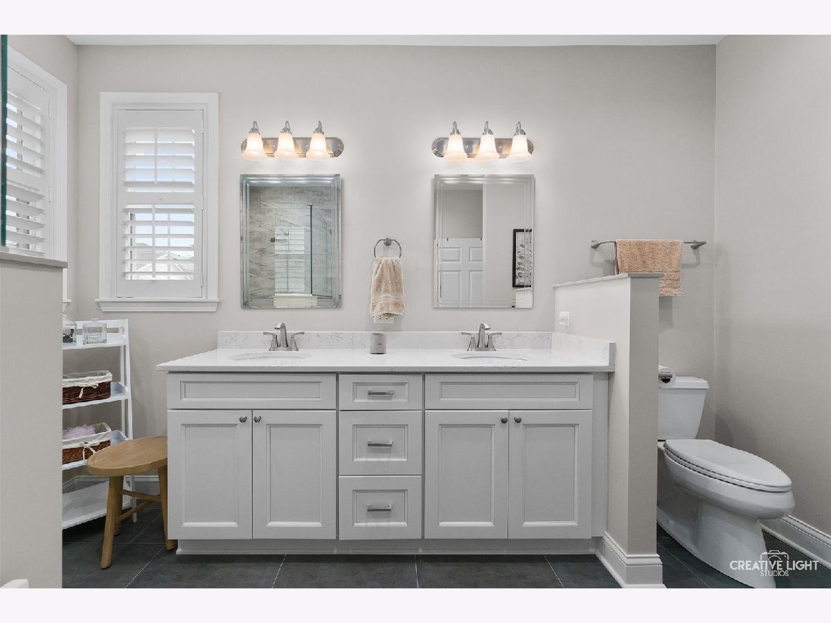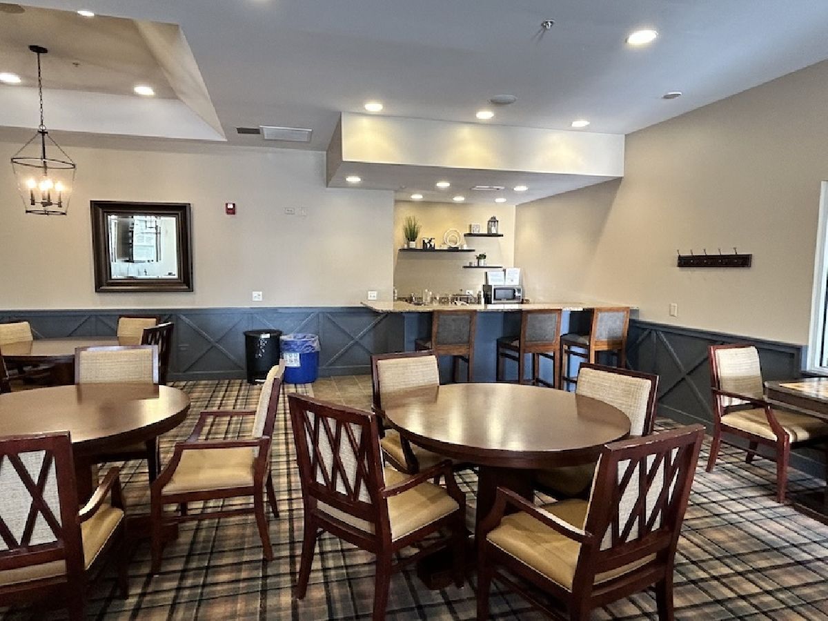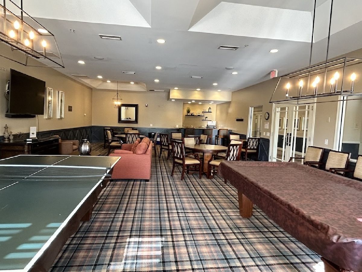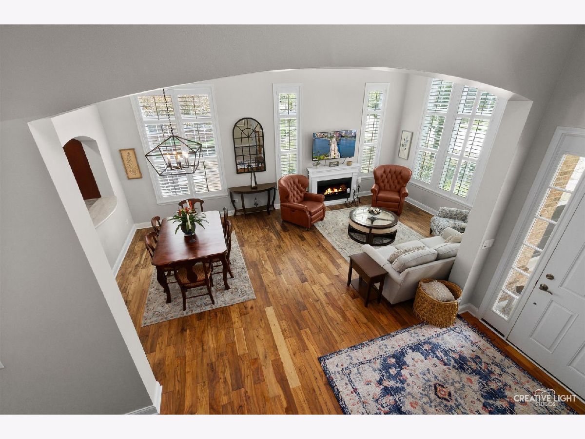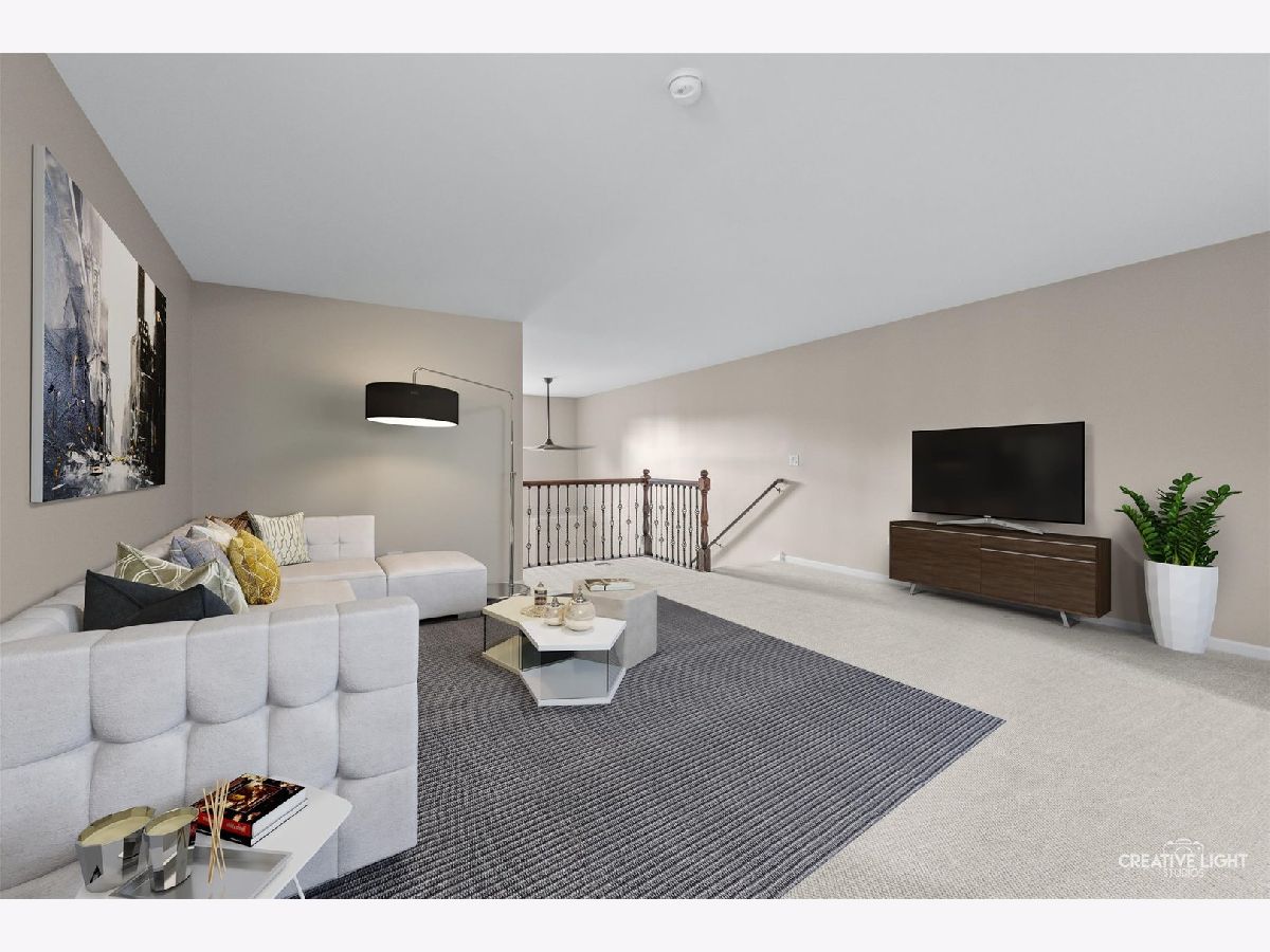 Located in Naperville's prestigious 55+ gated community, this stunning Cannes model END UNIT offers a sun-drenched living space with a coveted private office, FULL BASEMENT, and impressive design elements. Natural light floods the open-concept living and dining areas through a breathtaking wall of windows, highlighting 12-foot ceilings and refined PLANTATION SHUTTERS, adding convenience and timeless charm. The living room is anchored by a remote-controlled fireplace, creating a warm and inviting atmosphere. The upscale design extends throughout, from the custom iron railings, to the upgraded baseboards and 2021 hardwood floors. The designer kitchen includes a massive island, granite countertops, stainless steel appliances, and custom cabinetry, making meal preparation a joy. Step outside to the private patio, perfect for entertaining, with a NEW Sunsetter Shade awning that provides comfort for your outdoor gatherings. Just steps away, the primary suite is a serene retreat, with a walk-in closet featuring built-in organizers and a lavishly REMODELED ENSUITE bath with a spacious glass-enclosed shower, dual sink comfort-height vanity, and ceramic tile floors. One of the standout features is the flexible OFFICE space, adjacent to the loft, providing a quiet, dedicated area for remote work, hobbies, gym, or a fourth bedroom. Two additional bedrooms and a full bath upstairs offer plenty of room for guests. This unit boasts an expansive, DEEP POUR unfinished basement with plumbing rough-in for a future full bath -- offering limitless possibilities to create a workshop, entertainment space with wet-bar, gym, or all three! This MOVE IN READY HOME is enhanced with fresh paint and carpet, along with numerous recent updates, including a 2023 water heater, a 2022 humidifier, a 2024 garage door with new springs, and a sump pump with backup system (both 2023). Additional upgrades include 2024 tuckpointing on the exterior brick and a Radon Mitigation system for peace of mind. Located in the highly sought-after Carillon Club, residents enjoy resort-style amenities, including a newly renovated 18,000 SF clubhouse, indoor and outdoor pools, a fitness center, tennis courts, garden plots, golf, and much more. Enjoy the convenience of nearby shopping, restaurants, entertainment, and easy access to downtown Naperville and the Metra. This home seamlessly combines luxury and convenience, with standout features like a private office, custom Plantation shutters, and a full basement ready for your vision!