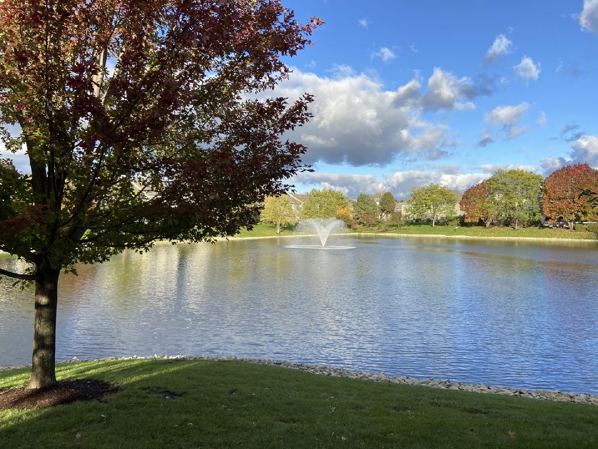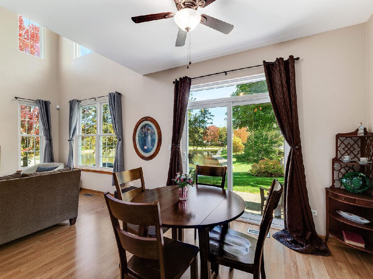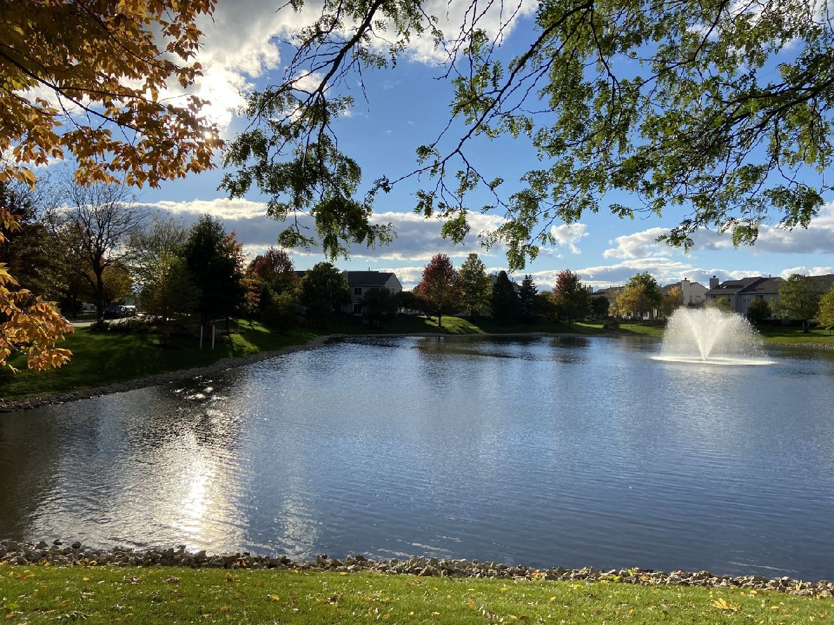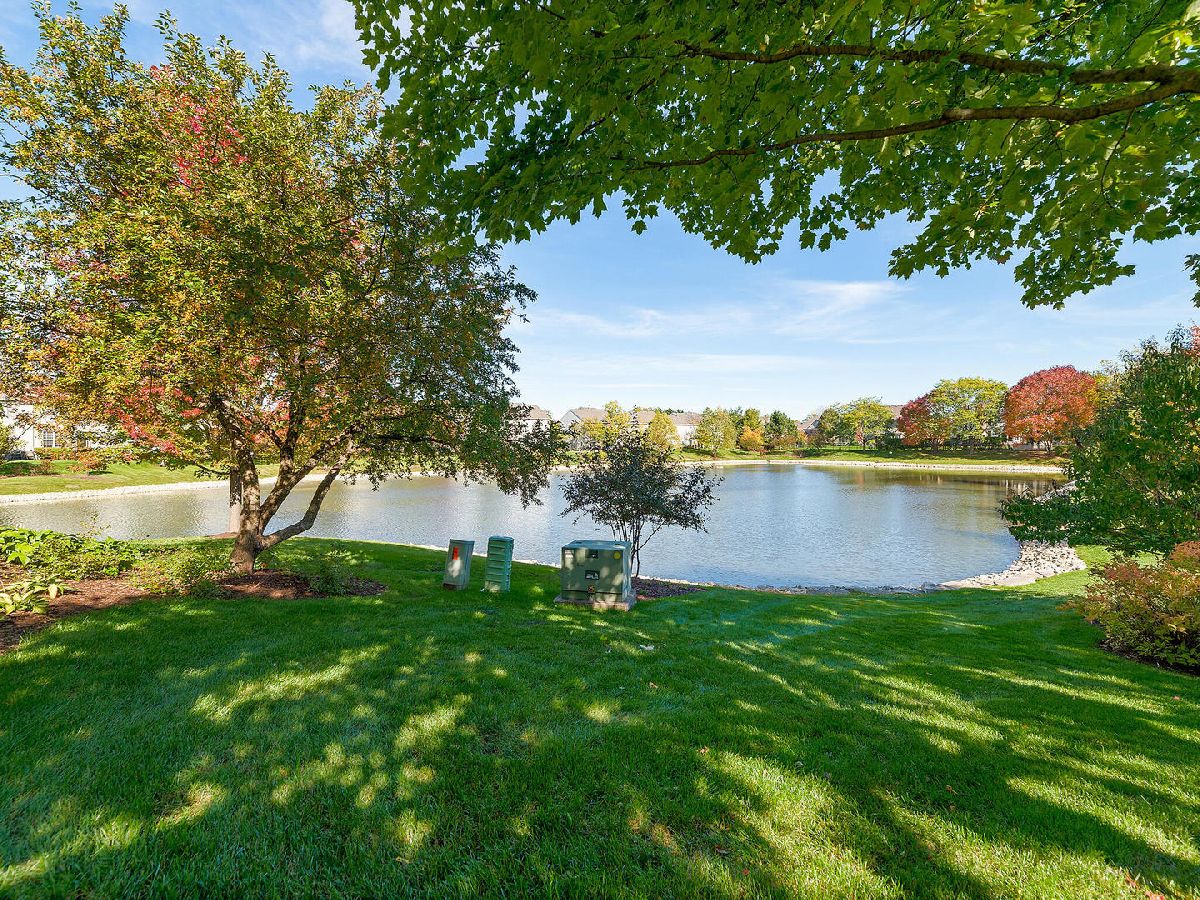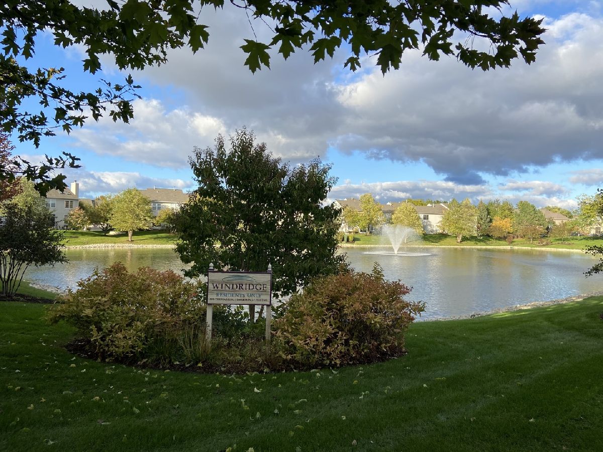 Highly desired 2 bedroom plus loft, 2.1 bath end unit town house with breathtaking water views will exceed your expectations. Neutrally painted in 2019 with newer sunlit filled windows and sliding glass door leads to the patio. Beautiful new wood laminate flooring in foyer, 2 story living room, dining room, both bedrooms and loft which is currently used as a family room (2018). Eat-in kitchen has 42 inch cabinets and newer appliances, granite counters and 18 inch ceramic tile flooring (2019), kitchen sink and faucet (2018) and pantry. Master bedroom has cathedral ceilings, walk-in-closet and updated master bath with walk-in shower (2020). First floor laundry room with newer full size washer and dryer, furnace, humidifier (2014). Additional updates include newer roof and siding (2018), sealed driveway and garage door opener (2021), microwave and custom storm door (2020), berber carpeting on stairs and window treatments (2018), central air (2014) and powder room. Large two car garage. This 2nd largest town house in Windridge subdivision offers you peace, serenity and tranquility along with outstanding nature and water views. Award winning school district 204 includes highly sought-after Neuqua Valley High School. Ideal location near Metra, restaurants and shopping.