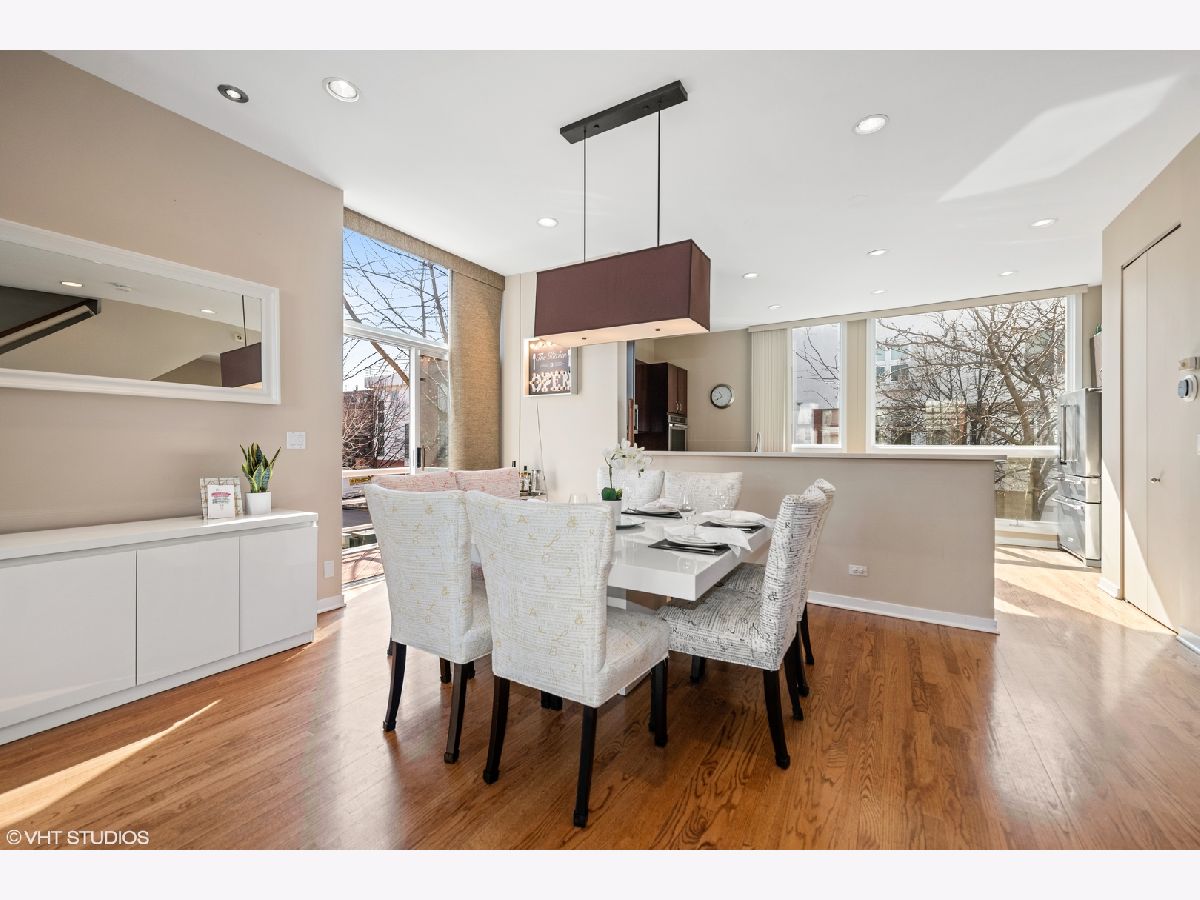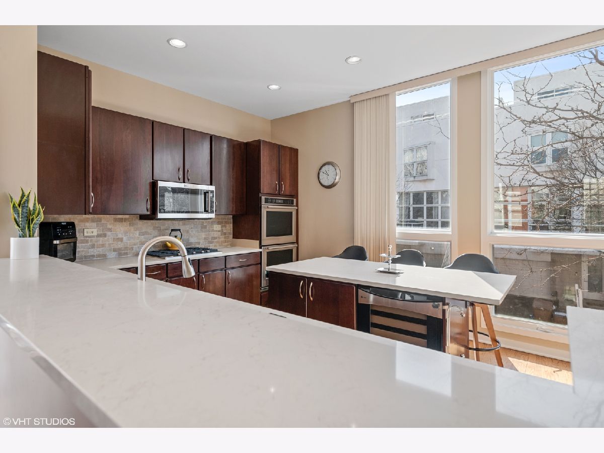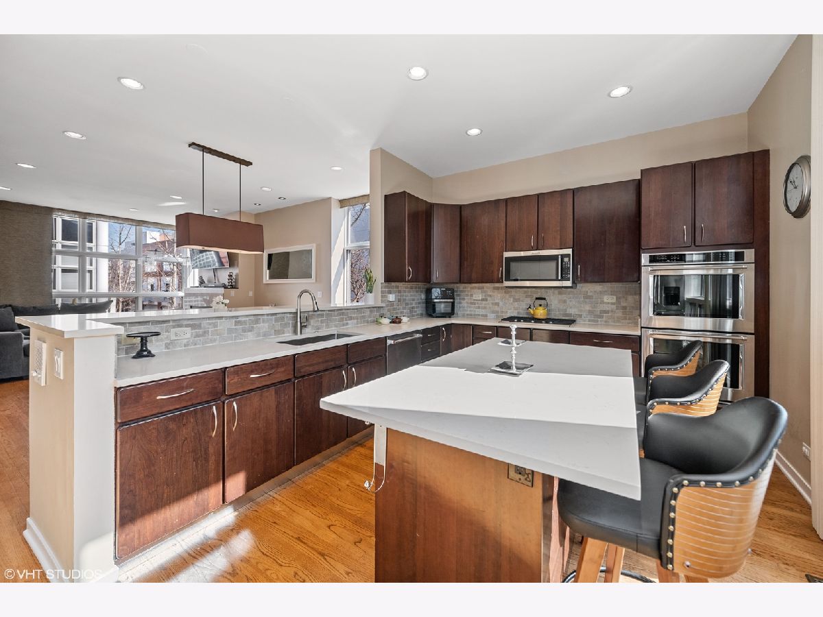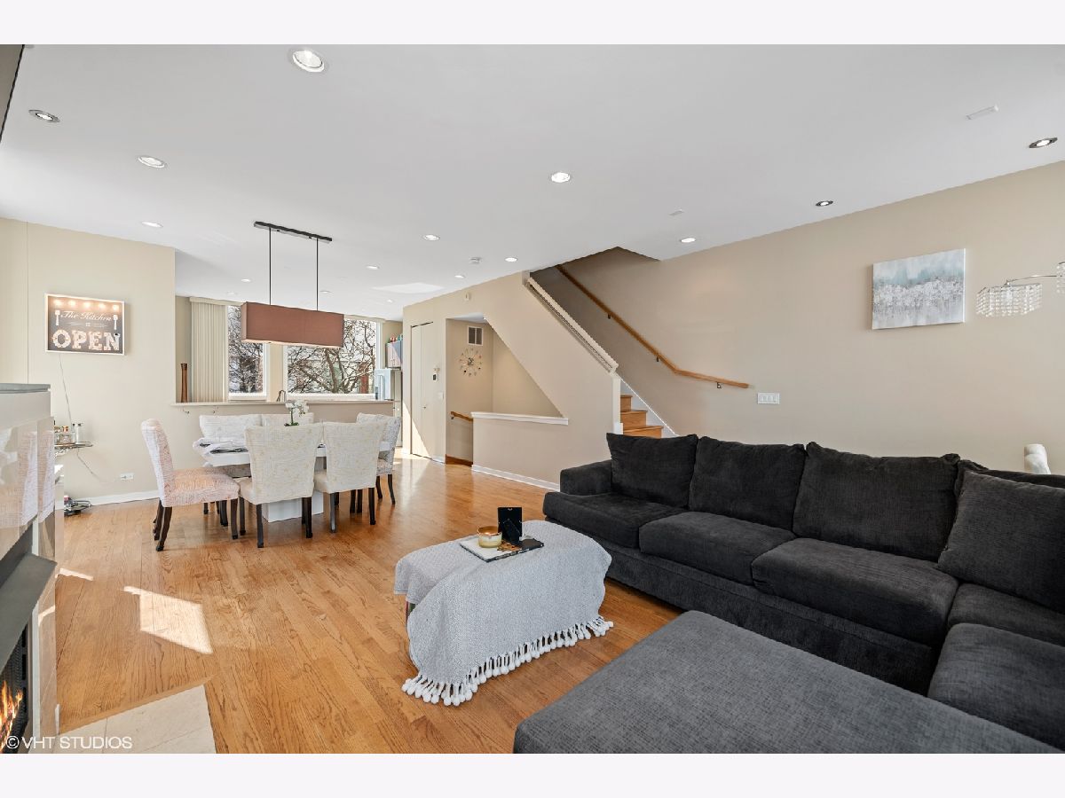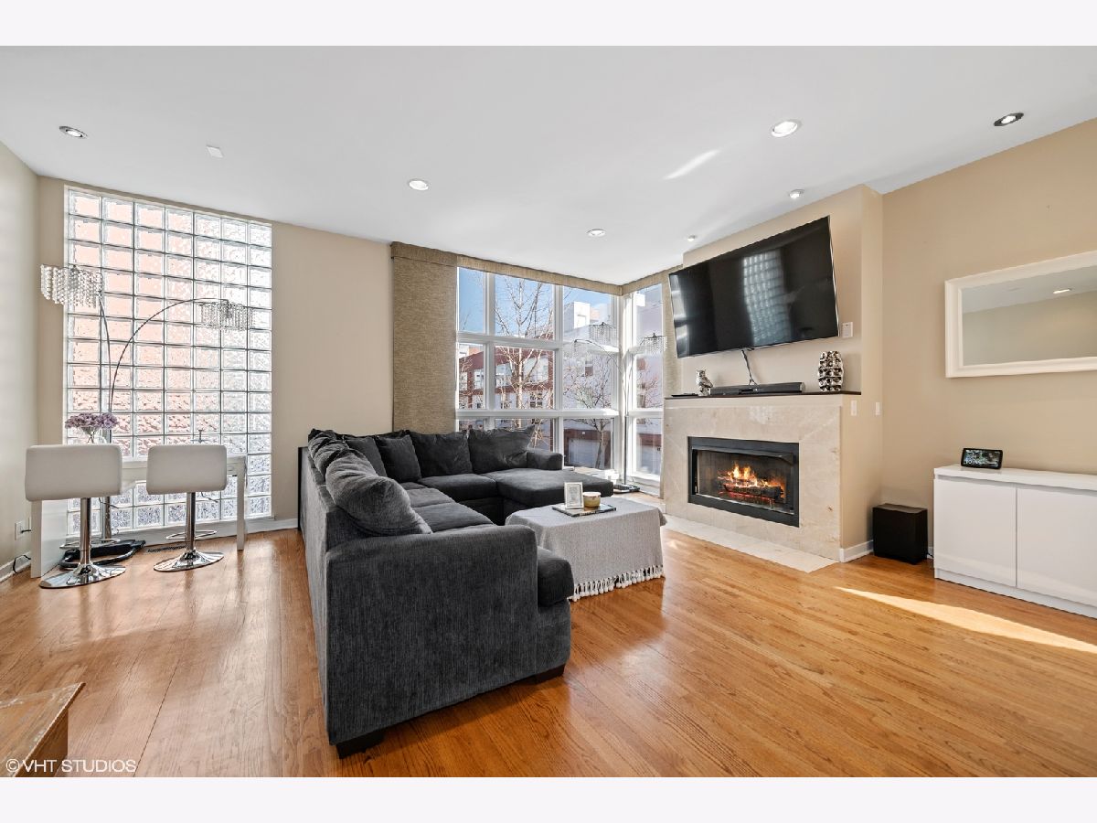 Beautiful corner 4-bedroom townhome in the highly coveted Wellington Park neighborhood. With over 2,900 square feet, this bright and extra wide unit is a place to call home. The main living level has an open floor plan with corner windows, updated kitchen opening to the dining room and living room with balcony for grilling. A beautiful fireplace and extraordinary ceiling heights make it perfect for entertaining. The large open kitchen features quartz counters, center eat in island, stainless appliances and tiled back splash. This home is a rarity with 3 bedrooms on one level with the washer and dryer. Sunny master suite w/organized closet space & spa bath w/ dual vanity and separate shower. The 4th floor family room offers a 2nd fireplace and newly finished wet bar. Step out on the two spacious balconies on either side of the home. Attached 2 car garage + 2 car parking pads. Burley School District! Located just moments to parks, Whole Foods, Jewel Osco, CTA & great dining.
