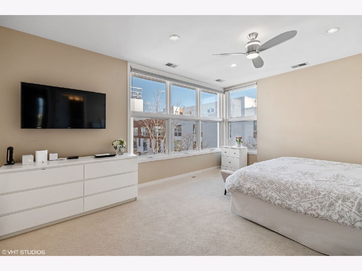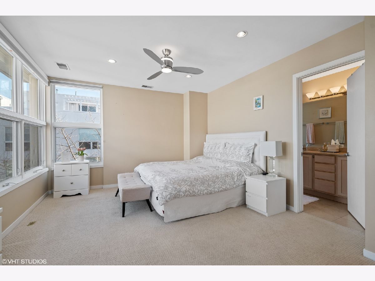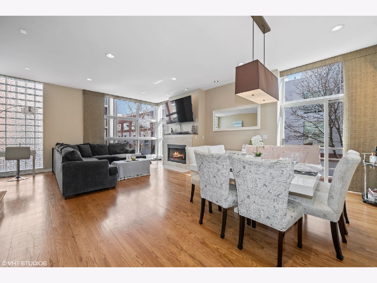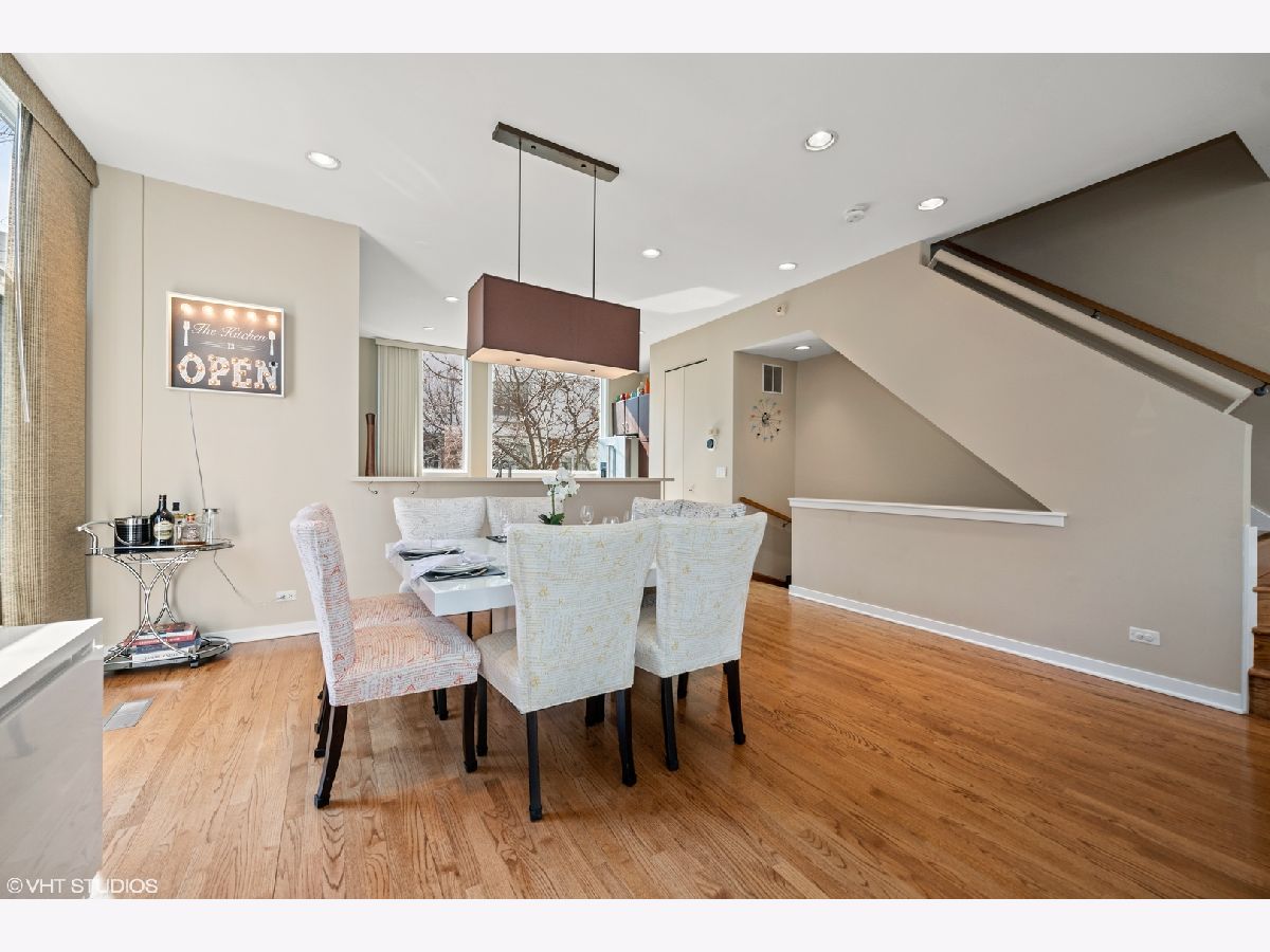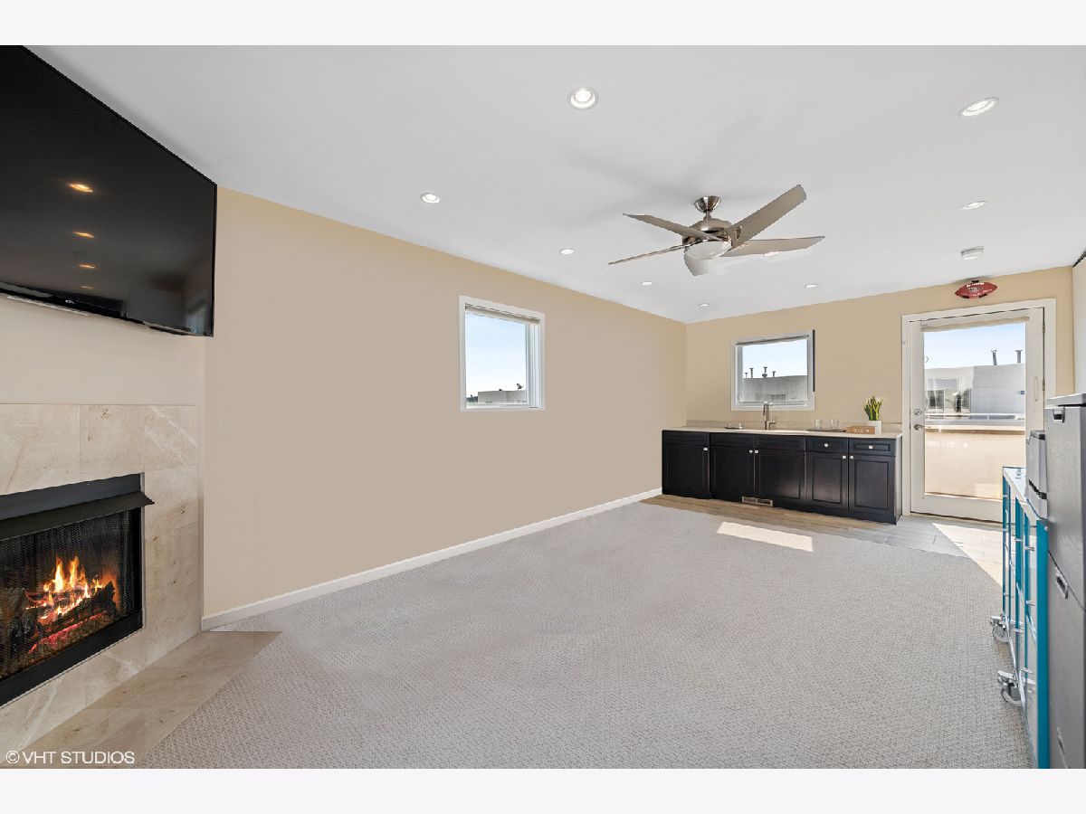 Beautiful corner 4-bedroom townhome in the highly coveted Wellington Park neighborhood. With over 2,900 square feet, this bright and extra wide unit is a place to call home. The main living level has an open floor plan with corner windows, updated kitchen opening to the dining room and living room with balcony for grilling. A beautiful fireplace and extraordinary ceiling heights make it perfect for entertaining. The large open kitchen features quartz counters, center eat in island, stainless appliances and tiled back splash. This home is a rarity with 3 bedrooms on one level with the washer and dryer. Sunny master suite w/organized closet space & spa bath w/ dual vanity and separate shower. The 4th floor family room offers a 2nd fireplace and newly finished wet bar. Step out on the two spacious balconies on either side of the home. Attached 2 car garage + 2 car parking pads. Burley School District! Located just moments to parks, Whole Foods, Jewel Osco, CTA & great dining.