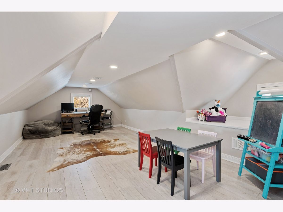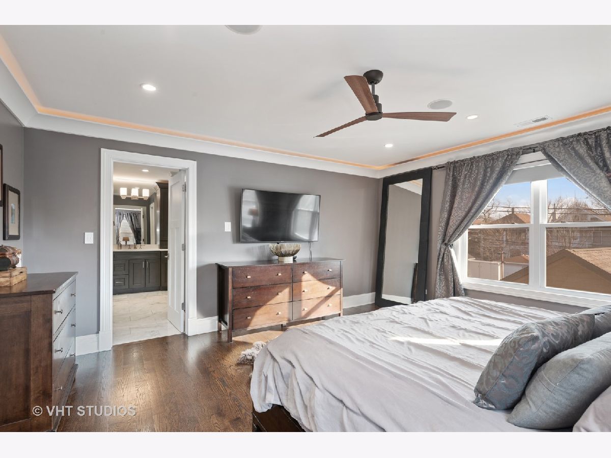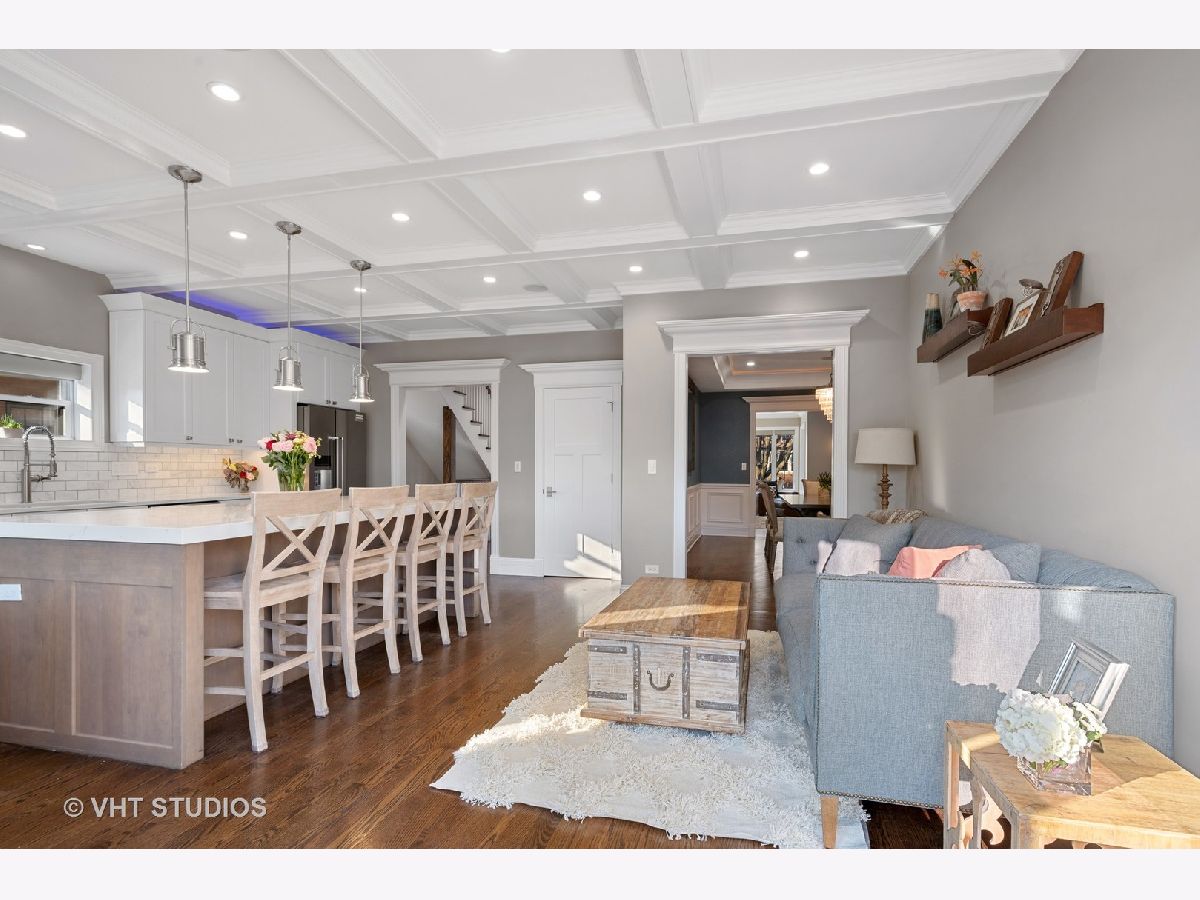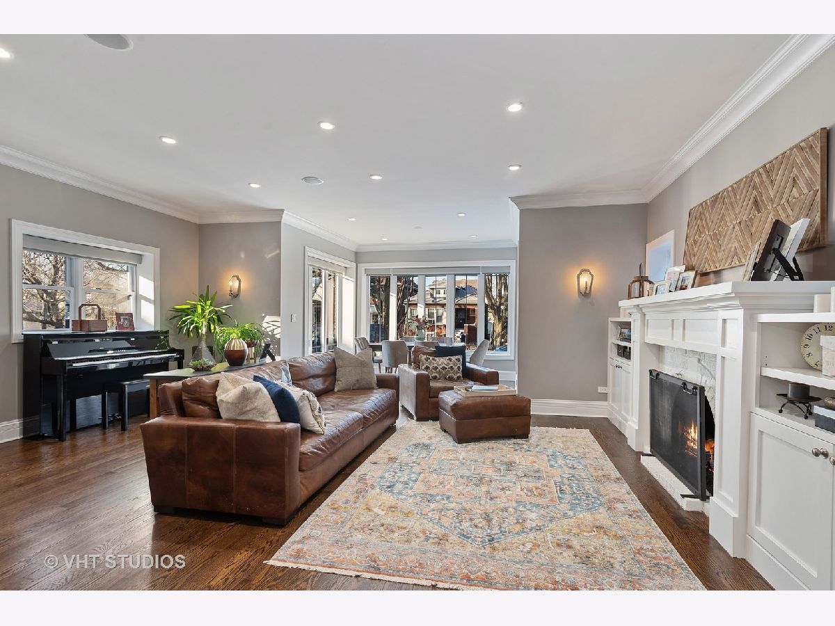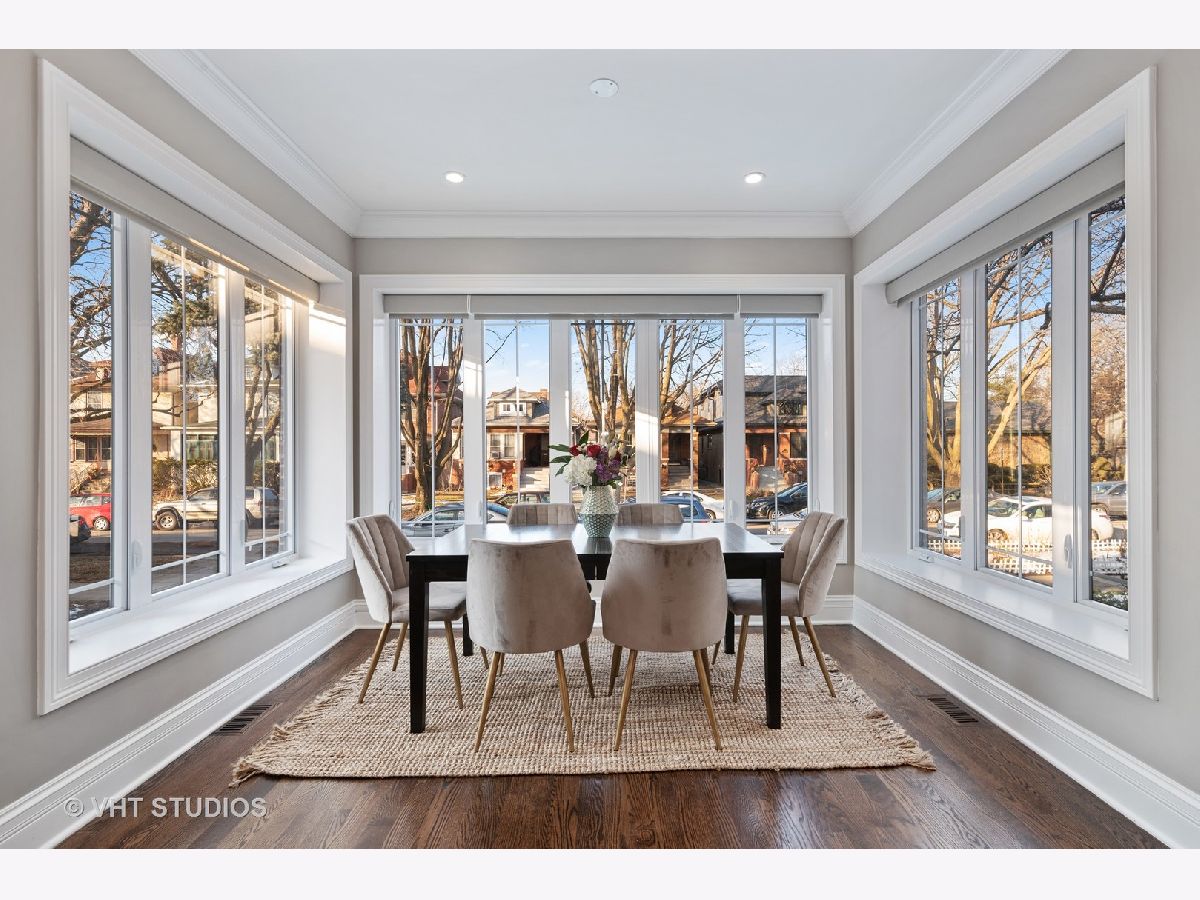 Immaculate and well designed gut rehab on huge 40' wide lot in highly sought after Ravenswood Manor. This remarkable, developer owned renovation incorporates a modern design while maintaining the original style. The main floor provides an ideal layout for entertaining with living/kitchen/dining spaces that seamlessly blend. The indoor and outdoor spaces fuse with the 8' French Doors that lead to the spacious deck and backyard complete with paved patio, built in firepit, and pergola. Beautiful walnut hardwood floors and plenty of natural light flow throughout. 4 beds on the second floor and 3rd floor play area and office. Beautiful marble and porcelain tile in every bathroom with Kohler fixtures and faucets. Main primary bathroom with rain shower, steam, and heated floor. Enjoy movies, games, and entertaining in the spacious basement complete with heated floors, pool table, custom mahogany bar, and wine cellar. Whole house lighting control system, custom blinds, built in speakers, intercoms, cameras, and high end lighting throughout. New 2.5 car garage. Perfect location just steps to the Brown line and Manor Park, and Waters School. Broker owned. Will easily accommodate virtual showings!