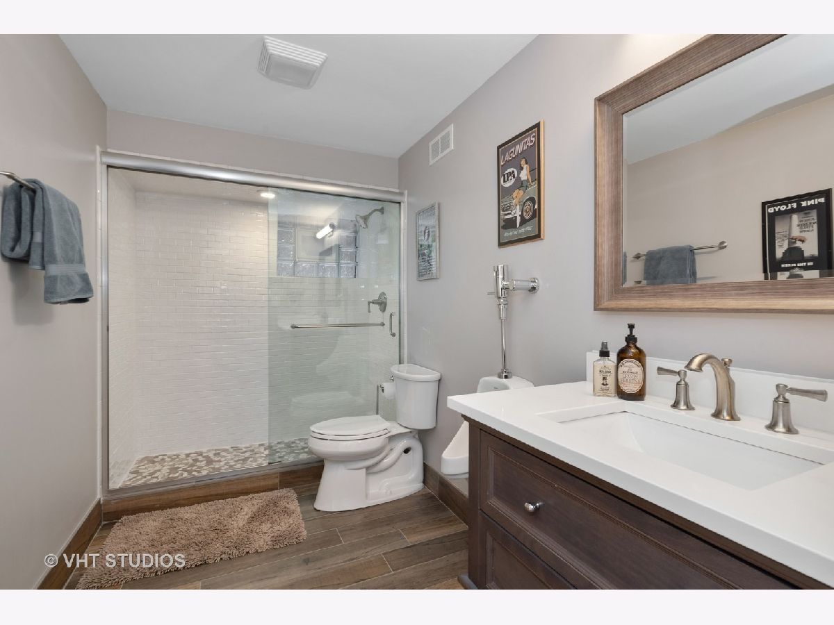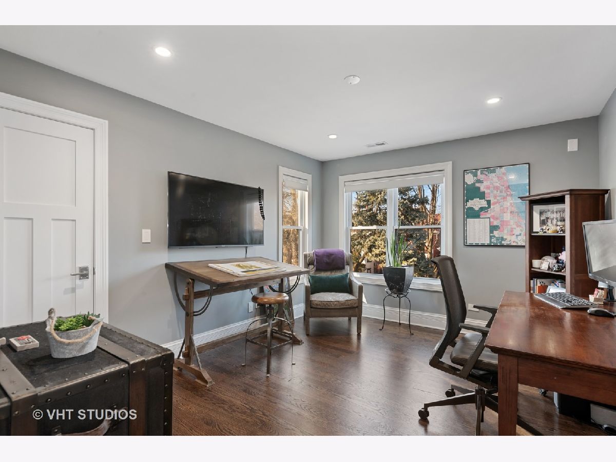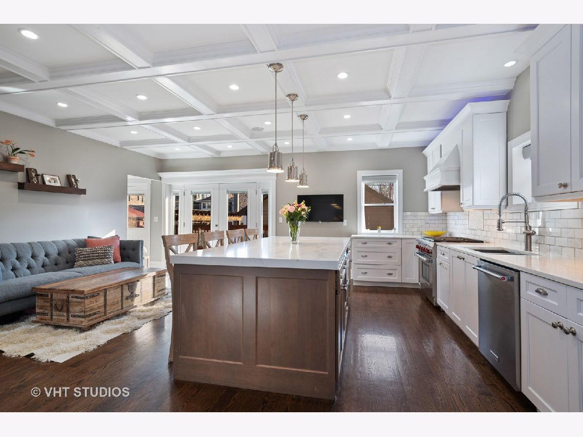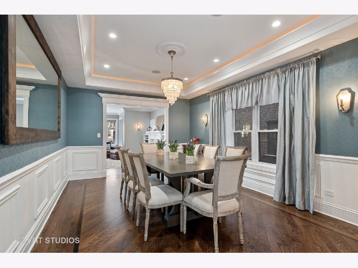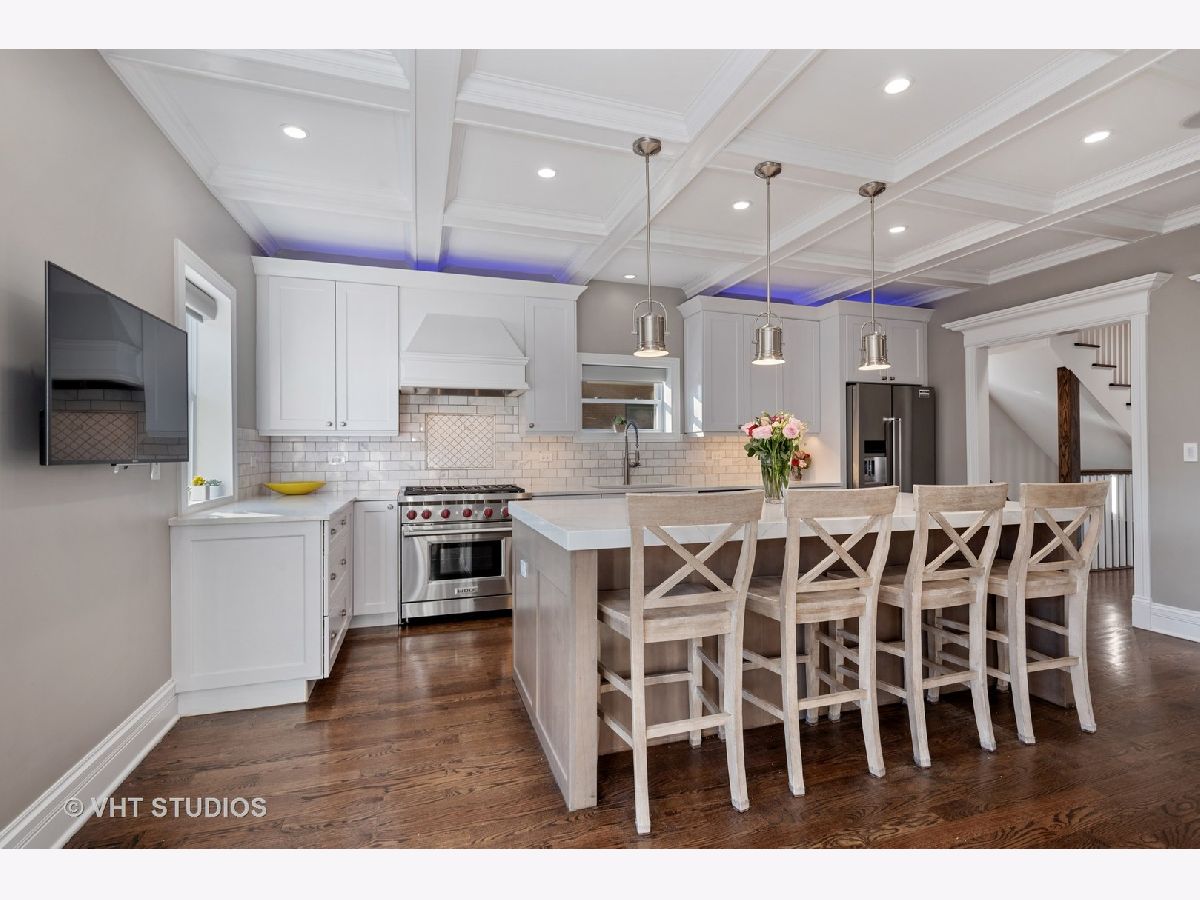 Immaculate and well designed gut rehab on huge 40' wide lot in highly sought after Ravenswood Manor. This remarkable, developer owned renovation incorporates a modern design while maintaining the original style. The main floor provides an ideal layout for entertaining with living/kitchen/dining spaces that seamlessly blend. The indoor and outdoor spaces fuse with the 8' French Doors that lead to the spacious deck and backyard complete with paved patio, built in firepit, and pergola. Beautiful walnut hardwood floors and plenty of natural light flow throughout. 4 beds on the second floor and 3rd floor play area and office. Beautiful marble and porcelain tile in every bathroom with Kohler fixtures and faucets. Main primary bathroom with rain shower, steam, and heated floor. Enjoy movies, games, and entertaining in the spacious basement complete with heated floors, pool table, custom mahogany bar, and wine cellar. Whole house lighting control system, custom blinds, built in speakers, intercoms, cameras, and high end lighting throughout. New 2.5 car garage. Perfect location just steps to the Brown line and Manor Park, and Waters School. Broker owned. Will easily accommodate virtual showings!