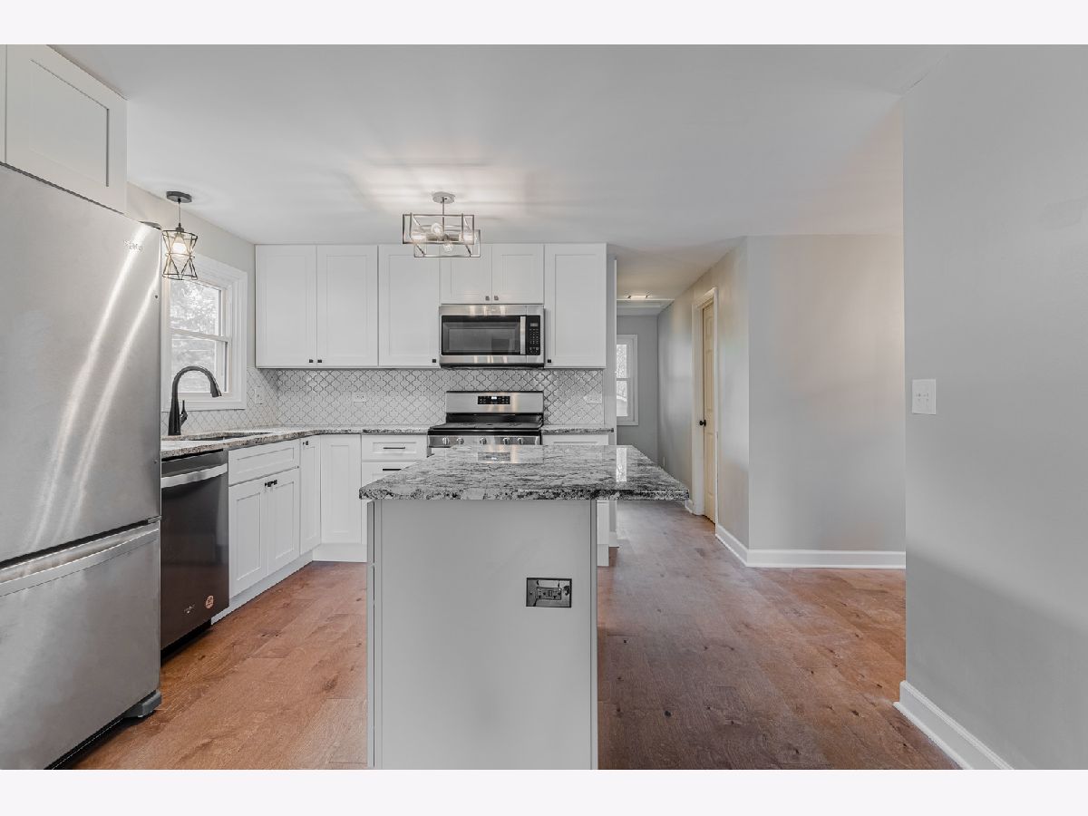 Rehabbed top to bottom, this home features 4 Bedrooms with 3 Full baths. Amazing location on a Double Lot! The main level includes an open concept with an expansive Living Room and Hardwood throughout. First-floor bedroom or office with Full bathroom just across the hall. Trendy two-tone kitchen with island and Alaskan White Granite countertops. Custom floor-to-ceiling pantry cabinet provides tons of cabinet space. On the second floor, the Master Suite has a Full bathroom with a Skylight, a walk-in closet, and a balcony that overlooks a tree-lined backyard with a nice private feel. Separate Laundry space on the 2nd floor means no trips to the basement to do laundry! All new windows, new plumbing, and new A/C. *Taxes are with NO Exemption. Please do not lock the garage door.