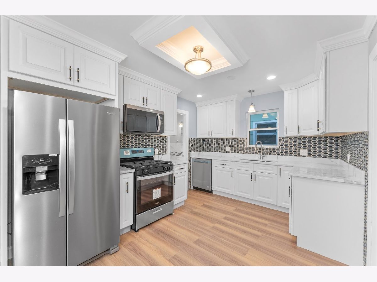 Welcome to this beautifully renovated 4-bedroom, 1 bath home! Meticulously modernized & completely transformed exterior & interior offer modern amenities & classic charm! The main level boasts 3 spacious bedrooms, a tastefully remodeled bathroom, a cozy efficient kitchen with updated finishes. A bright and open living area, with a stunning crown molding and a tray ceiling, new fixtures, & beautiful lighting, creates a warm & sophisticated ambiance. The durable wood laminate flooring flows seamlessly throughout the main level & complements this gathering space. The heart of the home is the cozy kitchen complete with a stainless steel appliance package & also showcases top-of-the-line cabinets, that provide ample storage, quartz countertops for a sleek and durable workspace, along with tiled backsplash. The kitchen space is elevated with beautiful tray ceilings and stylish wood laminate flooring. The bathroom features a sleek vanity with ample storage, a modern mirror and updated fixtures that add a contemporary touch. The first floor features three comfortable bedrooms, offering a combination of tray ceilings, ceiling fans, closets and wood laminate flooring, perfect for a restful retreat. The master suite is located on the second floor and features vaulted ceilings, canned lights, ceiling fan and wood laminate flooring. There is a closet area and an area where a master bathroom can be added. A 20x32 full, partially finished basement, with ceramic tiled floors, newer furnace & newer central air and hot water tank adds versatility and is ideal for a family room, home office and for additional storage. This home is equipped with a 100-amp electric panel featuring arc fault breakers, for enhanced safety and protection. This home is move-in ready and equipped for modern living. Exterior upgrades include brand new vinyl siding, windows, and a roof (fascia, soffits, and gutters), ensuring years of low-maintenance living. The 2 car detached garage has a new roof and siding (with garage opener and transmitter) and freshly poured concrete walkways provide convenience and curb appeal. The fenced yard offers privacy and security, while thoughtful landscaping enhances the overall beauty of the property. Almost everything is NEW: gut rehab to studs, new walls, flooring, windows, electrical- 100 amp service/new Arc fault breakers), drywall, plumbing, newer central air & newer furnace (100,000 BTU) and newer hot water tank, conduit, windows, canned lights, all light fixtures, roof, soffit, fascia, gutters, crown molding, tray ceilings, landscaping, new concrete walk ways, , fenced yard, new exterior side staircase, new siding, (interior of home was gutted to the studs) and more! Located across a park. This home passed city inspections. Taxes do not reflect homeowners exemptions. Must See!