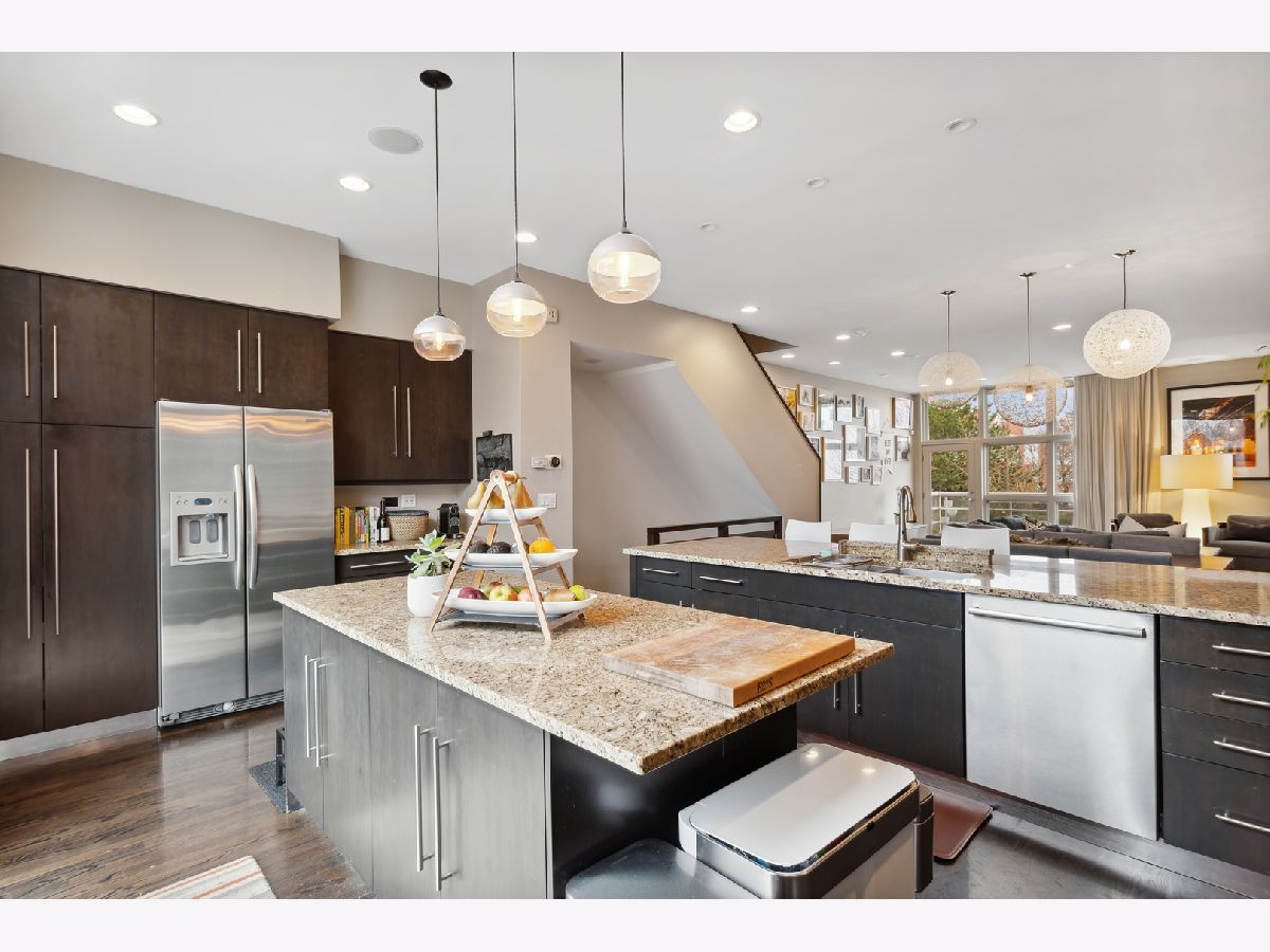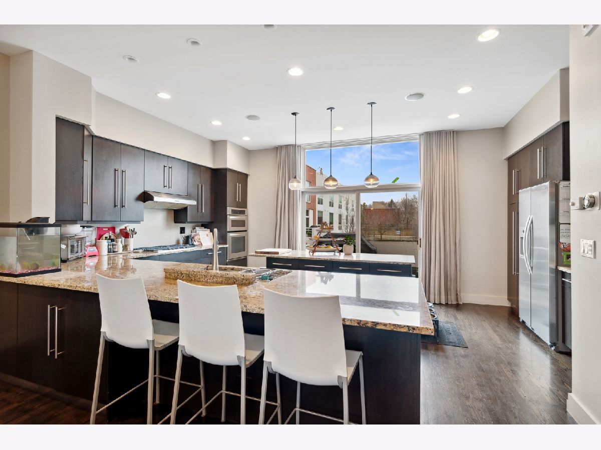 Fabulous Burley School district townhome with one of the largest floor plans in Wellington Park. Gorgeous highly upgraded. Open floor plan with floor to ceiling windows, designer lighting, and Holly Hunt drapes throughout. Modern updated chef's kitchen with large island. Limestone fireplace with custom built-ins. Primary bedroom with spa bath. Three bedrooms on one floor. Family room with sweeping views of the Chicago skyline. Fourth bedroom used as office. Recently renovated foyer. High ceilings. Closetworks throughout. 4 outdoor spaces: patio, grill deck, balcony and roof deck. 3500 square feet. Unique 4 car parking. New: Roof (2020), all mechanicals replaced, washer/dryer, dishwasher, deck on front balcony. Lives lie a single family home. Proximity to Chi-Che Wang Park, Whole Foods, Jewel, Southport Corridor and the Brown Line. First showings 7/19.