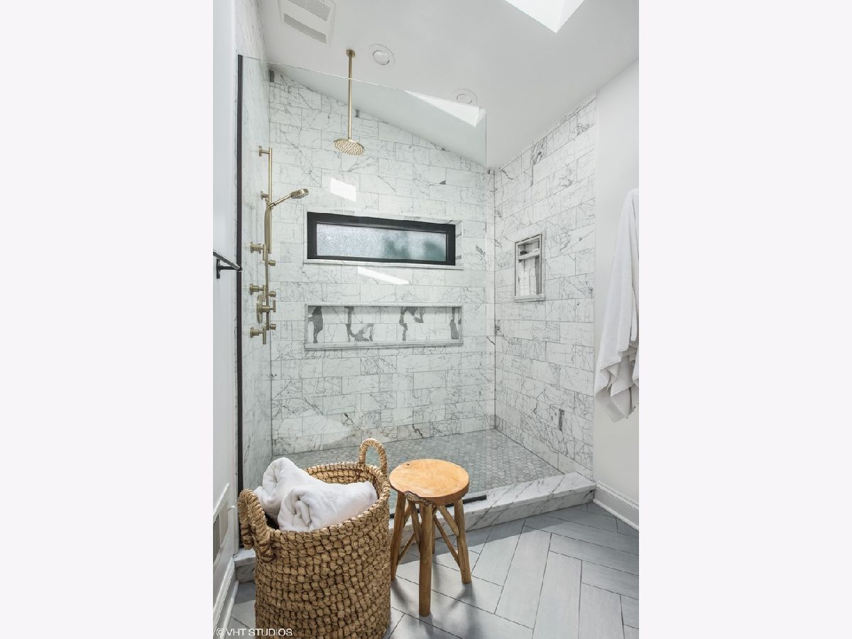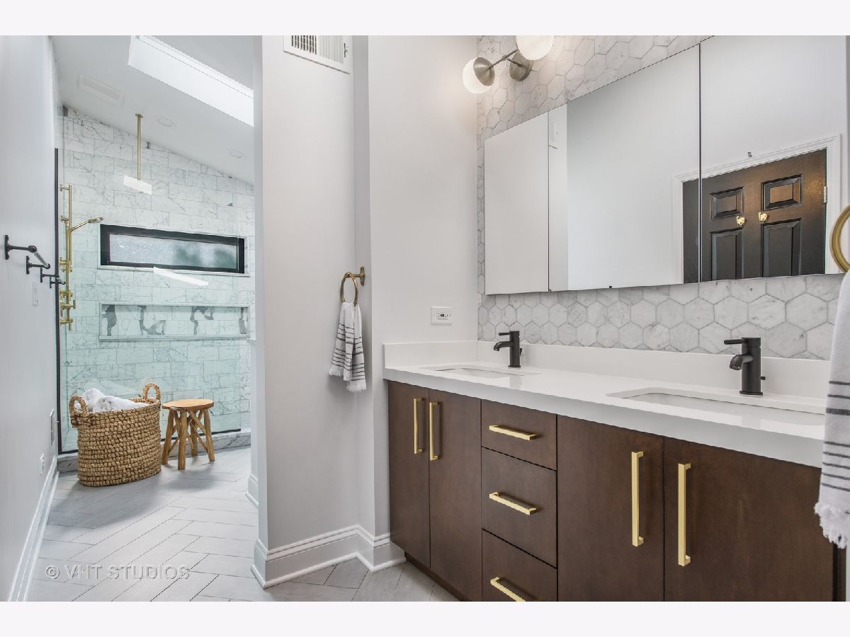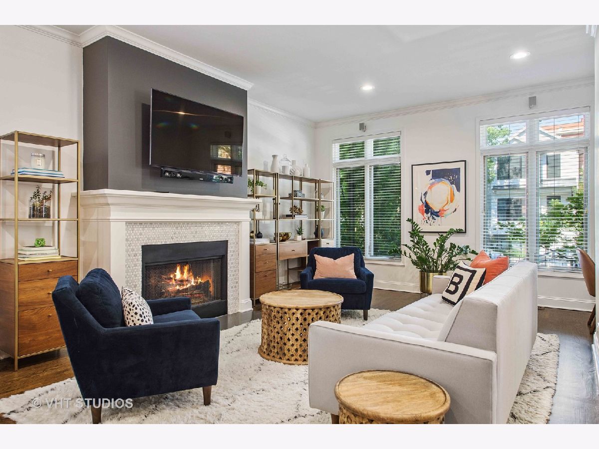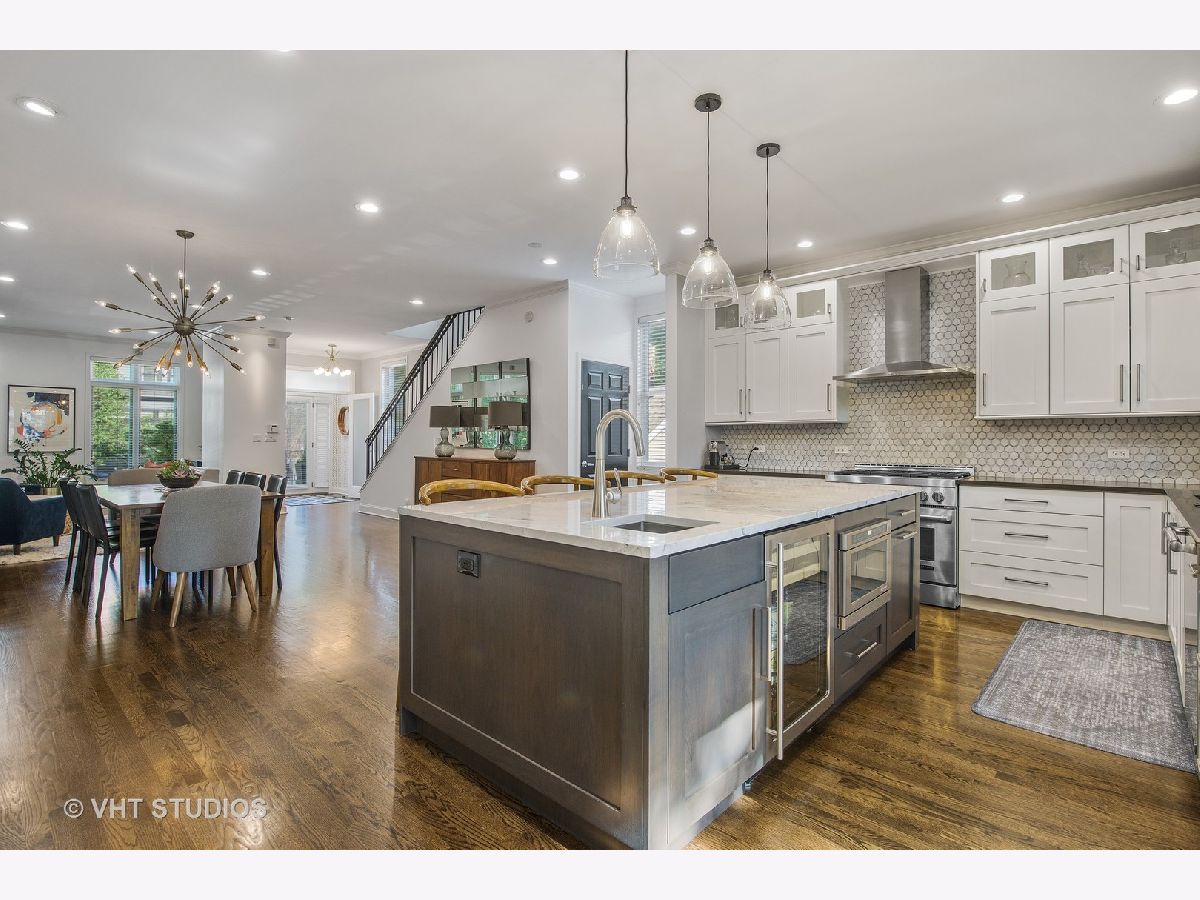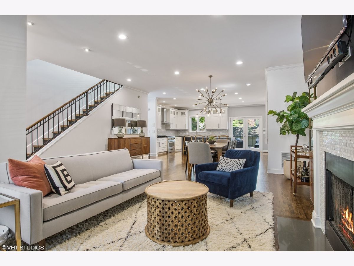 Wide lot with great yard! Style abounds in this recently renovated 4 bedroom/3.1 bathroom home with 2.5 car garage and spectacular outdoor space on a wide lot in the heart of Roscoe Village, moments from Hamlin Park. Upon entering this home, you are met with a spacious and stunning open-concept living/dining room that features tall ceilings, custom millwork, recently refinished hardwood floors, and recessed lighting. The living room has a custom built-in desk with storage and is anchored by a fireplace with gas starter, custom mantle, and mosaic surround. The dining space has enough seating for a table of 8+ and flows seamlessly into the fully upgraded and renovated chef's kitchen with custom white cabinetry, quartz counters, mosaic tile backsplash, top-of-the-line Jenn-Air Pro Series appliances, island with quartzite counters, breakfast bar, built-in wine refrigerator, microwave, and prep sink. Outside, a large Trex deck is perfect for outdoor living/dining and the professionally landscaped backyard is sublime with built-in sprinklers, Luxor landscape lighting system, and mature trees. Upstairs, the owner's suite is a true retreat with vaulted ceilings, French doors that flood the room with light and lead to a private Juliette balcony overlooking the backyard, newer carpet, and a walk-in closet with custom shelving. The spa-like bathroom has a skylight, walk-in rain shower with marble tile, and dual vanities. Rounding out this level are two additional bedrooms and a full bathroom with a soaking tub. Downstairs, the lower level has a recently renovated and generously sized family room with fireplace with herringbone surround and gas starter. A fourth bedroom, full bathroom with soaking tub, and recently renovated laundry room complete this level. Additional features include: Brand new roof (2020), sealed and tuckpointed (2017), all bathrooms upgraded and renovated throughout, built-in surround sound, built-in cabinetry in mudroom, Closet Works custom closet systems, and Trex decking on deck and Juliette balcony. This home is perfectly situated in Roscoe Village with close proximity to schools, Hamlin, Fellger, and Chi Che Wang parks, Kennedy Expressway, multiple public transportation options, Target, Costco, Whole Foods, and all of the wonderful restaurants and bars Roscoe Village has to offer!