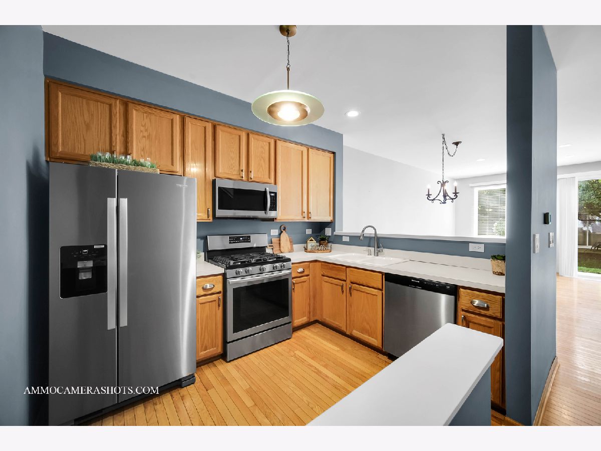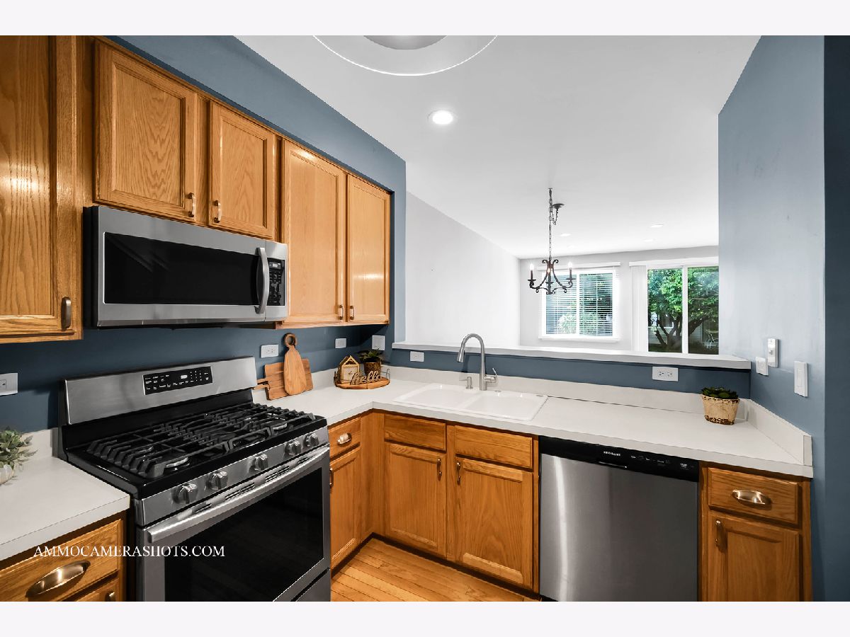 Beautiful Crosswinds townhome! Open concept floor plan that gets plenty of natural light. Great working kitchen has stainless appliances, hardwood floors, oak cabinets, and plenty of counter space! Foyer has a coat closet and a large storage area with shelving that could work as a pantry as well. 1/2 bath is off the attached garage. Living room off kitchen has hardwood floors, 9' ceilings, and a slider to a cement patio for easy grilling. Bedrooms are spacious and have built in organizers in the closets. Master bedroom has a vaulted ceiling with track lightings as well as a lighted ceiling fan. Bathroom has been professional remodeled with new double sink vanity, stone wall & floor and a heated towel rack! This home is located in the highly acclaimed School District 204 with Neuqua Valley High School! Minutes to Springbrook Golf Course and 1829 Acre Springbrook Prairie Forest Preserve offering miles of walking/bike trails, picnic areas, and more! This home has been well cared for and is clean, clean, clean! Show and Sell!