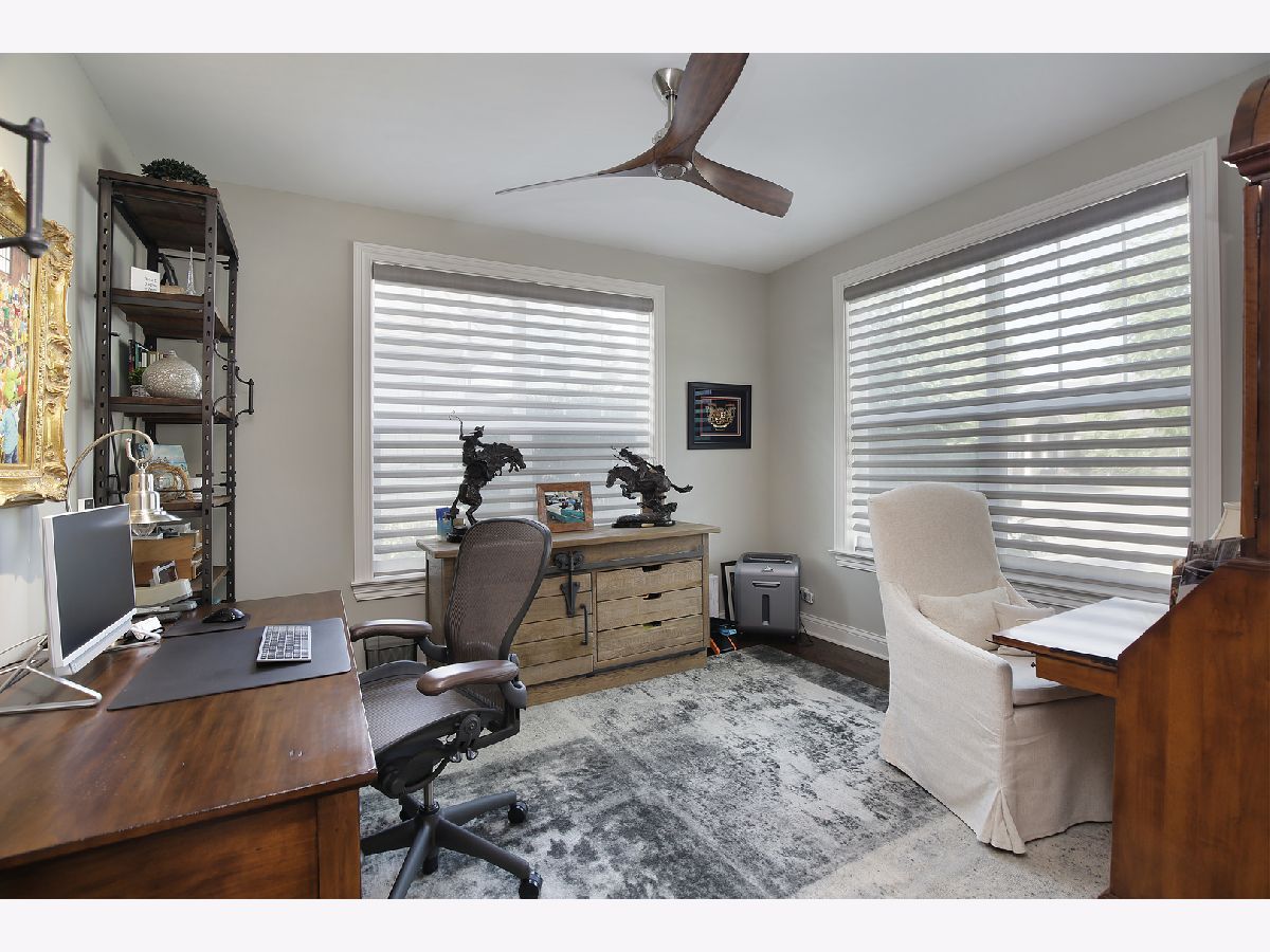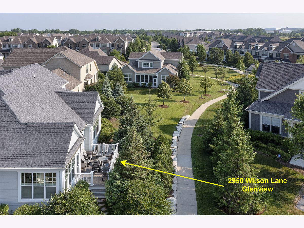 Welcome to this newer and meticulously appointed 3 bedroom/2.1 bath single family home in West Gate at The Glen. Nestled beautifully within West Gate, 2950 Wilson Lane seamlessly blends the best of all worlds, offering the benefits of an upscale private, single-family residence while providing the convenience of a maintenance-free lifestyle, designed for the most discerning buyer. With nearly 2,800 square feet of living space, you'll be impressed how every detail in this home has been carefully curated for those with discriminating taste. The upscale white kitchen showcases an expansive quartz island and quartz countertops with stunning backsplash tile and is equipped with top shelf Wolf and Thermador appliances, built-in refrigerator drawers for additional food and drink storage, a built-in microwave, coffee bar, pantry cabinet, and plenty of custom cabinetry for storage. In addition to the island seating is a wonderful breakfast area for table seating which looks onto the lovely deck and the beautiful landscaping beyond. The kitchen overlooks the sunlit and spacious family room. It showcases a stunning wall of built-ins, giving a home for both your flat screen TV, shelving for special decorative items as well as ample cabinet space for just about everything. One of the standout features of this home is the addition of its sunroom, just off the breakfast and family rooms. This room is bathed in natural light and boasts a pitched ceiling - an added bonus that sets this property apart from others at West Gate! Not to be overlooked is the coveted first floor office, providing a quiet and productive space. With two large and sunny windows and located away from the busier kitchen and family rooms, this is an ideal retreat! The luxurious 1st floor primary suite is a private sanctuary, complete with 2 walk-in closets and a spa-like bathroom. Indulge in the glass-enclosed walk-in shower, soak in the relaxing tub and enjoy the conveniences of double vanities. This White Carrara bathroom is both stunning and classic! Completing the first floor is a spacious laundry room with sink and beverage refrigerator, an ideal working space! Upstairs, the second floor opens to a delightful loft area, perfect for relaxation or a playroom. 2 additional bedrooms and a full bath with a glass enclosed walk-in shower complete the upper level. A beautiful custom open staircase leads to the expansive unfinished basement. With both a rough-in for an additional full bath and this extensive space, the possibilities here are unlimited. Additional highlights include a Trex deck, recently added on by the owners and conveniently located just off the kitchen. It has seating for 6 and room for your grill! It's the perfect spot to unwind or entertain guests while enjoying the beautifully landscaped walking paths and surroundings! The garage is deep and ample measuring 23' x 21"3, ensuring plenty of space for vehicles and storage. It's a walk or quick drive to The Glen, theater, restaurants, Metra, The Park Center, Kohl's Children Museum and more. An Edward R James Development at its best, like no other, ready for you to move right in!