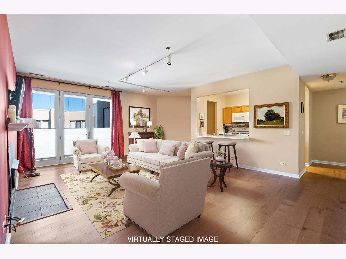Prime location 2 bedroom, 2 bath condo in a boutique elevator building on desirable Central Street in northwest Evanston. This rarely-available unit is a must see. This northeast-facing unit is the perfect respite for all owners alike. Brand new engineered hardwood floors. Bright and sunny living space with gas log fireplace. Galley-style kitchen with breakfast bar open to living room. Elegant primary bedroom with ensuite bath, double vanity, separate stand up shower and tub. Second bedroom or office space. Large second bath with shower. Private, east-facing balcony. In-unit washer and dryer. Indoor heated parking garage with storage and bike room included. Pet friendly building. Close to transportation (I-94, the bus, Metra and El Purple Line). Close to Hartigan's Ice Cream Shoppe and Curt's Cafe. Just blocks from Central Street restaurants and shops. Minutes from Northwestern University and Northshore University Evanston/Skokie hospitals.