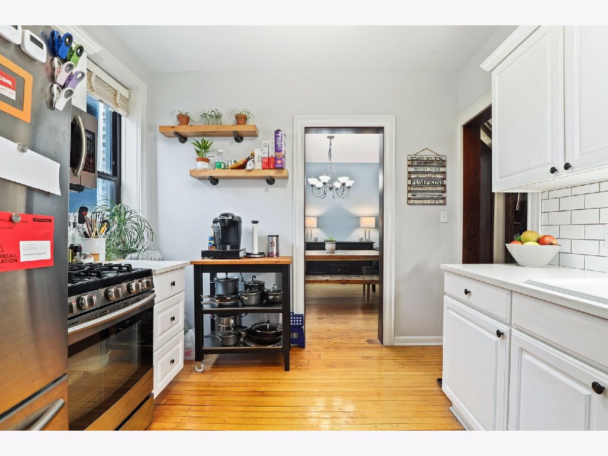 It's time to call this bright and welcoming condo in Lake View East home! One of the largest 2 bedroom layouts in the building. Lovely entry foyer leads to a large living room with a decorative tiled fireplace. Tons of natural light, hardwood floors, 9' ceilings, and Beautiful dark stained hardwood trim are throughout the entire home. Your updated kitchen features new Quartz countertops, stainless steel appliances, white cabinets, subway tile backsplash & bonus extra large pantry closet. A separate formal dining room provides multiple entertaining spaces. Queen sized bedrooms AND newly remodeled bathroom has super fresh white tiling in shower/tub, and tons of cabinet space. In-unit w/d. HEAT is INCLUDED in assessments Deeded parking space in secured, gated on-site lot is INCLUDED. Common yard with park bench and space for grilling. This building is meticulously maintained and this unit can be rented. Perfect Lakeview East location includes close proximity to restaurants & nightlife, shops, Mariano's, XSport, coffee shops, the lake, Driving Range, & Alcott school.