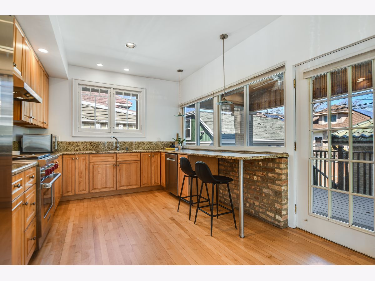 This spectacular center-entry brick home is on a desirable oversized corner lot on one of Ravenswood Manor's prettiest blocks! A double entry welcomes you into the home. The oversized living room wraps the home's west end offering ample sun-drenched living space ideal for entertaining. The separate dining room is equally grand. The heart of everyday living, the updated eat-in kitchen/family room is perfect for casual dining and hanging out! The kitchen includes SubZero, Wolf, and Bosch appliances, as well as breakfast bar seating. It opens out to a deck, a gated yard, and 3-car parking (2-car garage + a gated parking pad). This home has three spacious bedrooms. The upper level is a massive primary bedroom suite with vaulted ceiling, flexible living space, two walk-in closets, and a luxurious bath with dual vanity, steam shower, and a spa tub. The other two bedrooms are on the main level and share a bath. The lower level is a true bonus! The massive recreation room includes a wonderful old-fashioned bar, a billiards table, and ample room to host friends and family. Also on the lower level, there is a large bonus/playroom, a laundry room with 2 washers and 2 dryers (Maytag, Whirlpool, and LG), a storage room, and mechanicals. When the home was renovated, the radiator system was replaced with dual-zoned central heat and A/C. Other features include original colored glass transom windows throughout the main level, custom blinds, hardwood floors, a clay tile roof (new in 2000), a new drain tile system, and a new sump pump. This one-of-a-kind home is conveniently close to the Francisco Brown Line station, Horner Park, and lots of shopping and dining options on Montrose, Lawrence, and Kedzie. The Kennedy Expressway is also easily accessible.