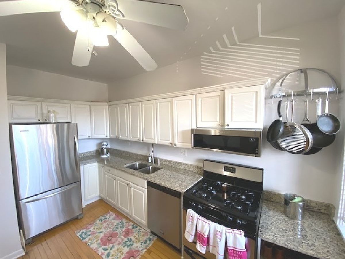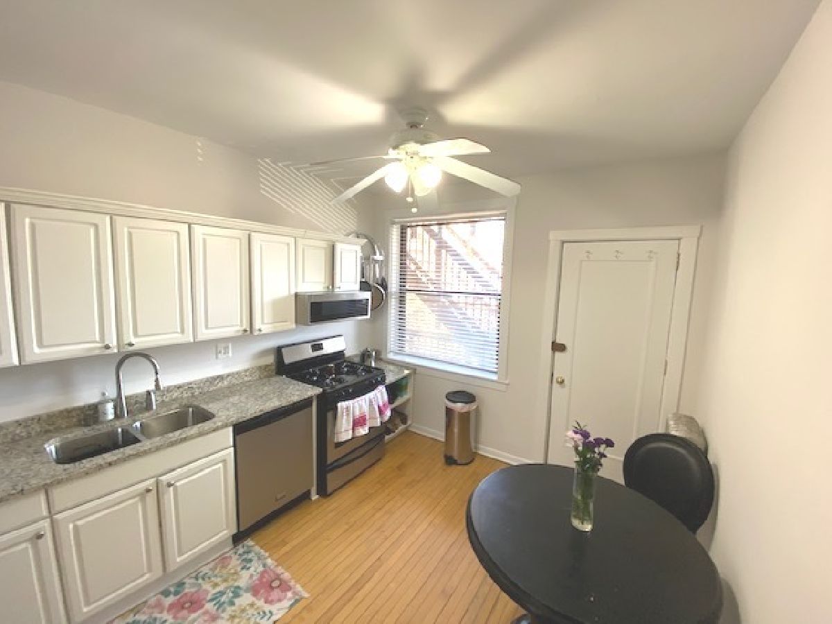 Vintage gem in prime East Lakeview! Spacious home has sunny east and west views. Large living/dining room features bay windows. Updated white eat-in kitchen with stainless steel appliances, light granite tops, undermount sink, huge window & back door to sunny deck with tree view. Updated bath with linen closet. W/D in-unit (newer stackable). Hardwood floors and high ceilings throughout. Split bedroom floorplan allows for work from home option. Assessments include heat. An additional storage locker is included. Additional coin laundry located in the building. Leased parking may be available directly behind the building. Also ride share options nearby including Zip car, Relay Rides, I-GO, and GetAround. Great location is a short distance to Brown Line/bus, shopping, restaurants, nightlife, Home Depot, Parson's Chicken, Dom's Market, Trader Joe's, parks, the lakefront...Everything! Currently rented, when showing must wear mask and sign pandemic disclosure.