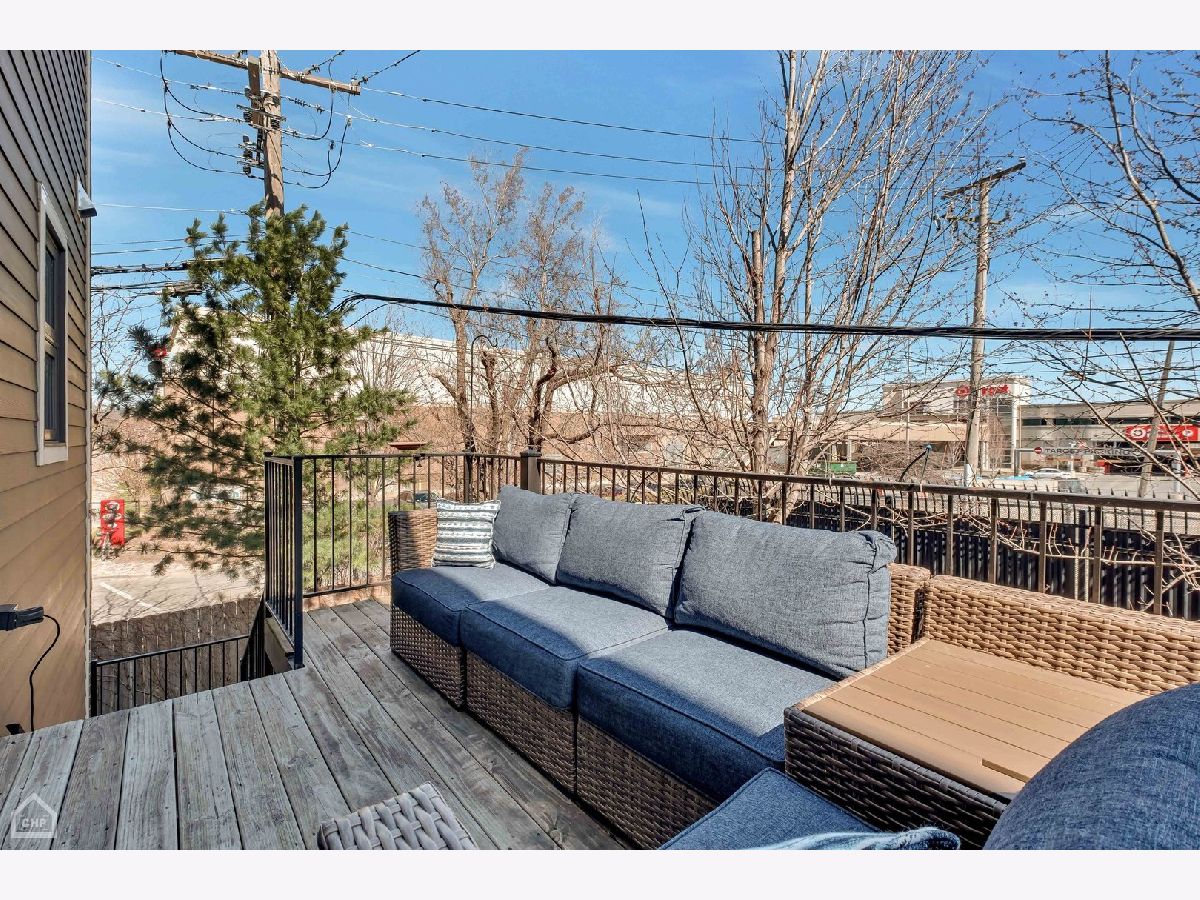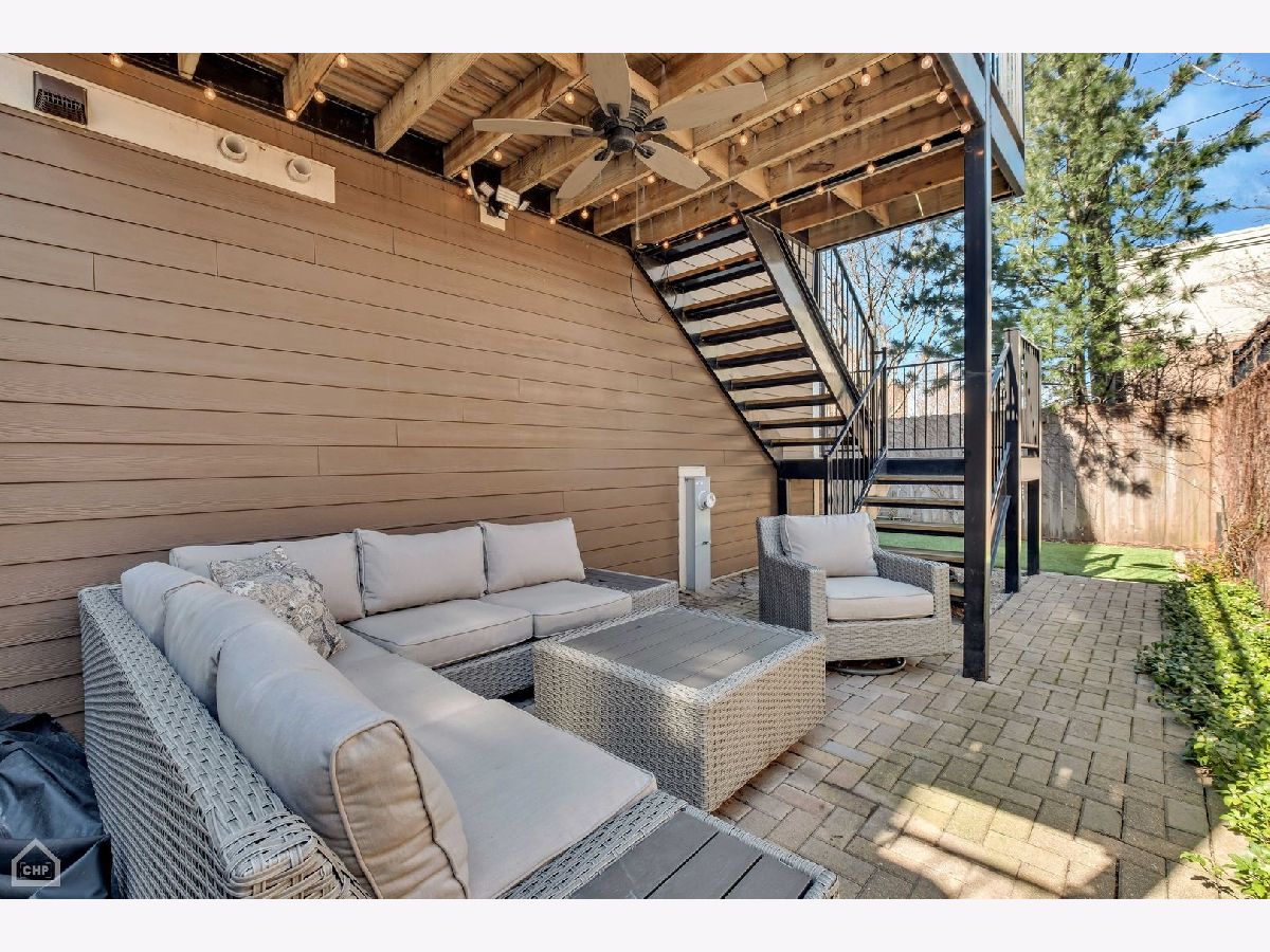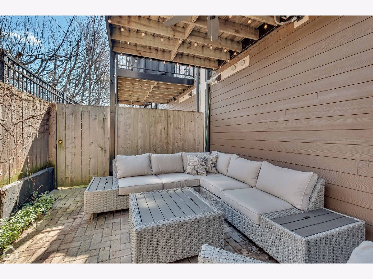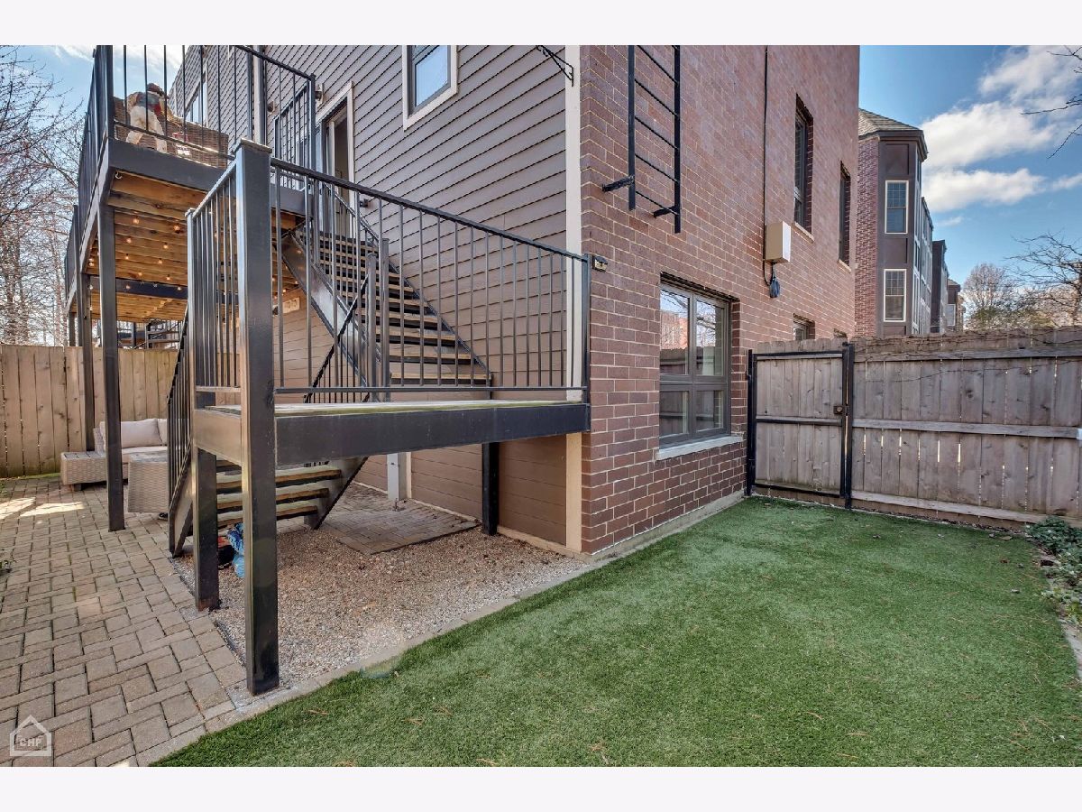 This modern end-unit townhome lives like a single family. Sun-filled 2,000 square feet spaciously accommodates 3 bedrooms, 3.5 bath, has 10 foot ceilings, 2 car attached garage, and a private fenced-in yard with 2 outdoor living spaces. Open concept living/dining/kitchen main level, including direct access to the private outdoor spaces, is where entertaining and functional family living meet. Includes high-end Bosch & Fisher Paykel appliances, white shaker slow close cabinetry, quartz countertops, large island plus dining space, electric fireplace, and a half bath. The private outdoor space commands its own full description: Accessed right off the main living level, the deck is equipped with water and gas hookup and private stairs to the backyard oasis. This corner lot has a fully fenced yard including extended patio pavers with an additional outdoor entertainment space and a turf area perfect for pets and kids. Mature trees deliver additional privacy and shade. Upstairs provides a quiet level ideal for the large primary suite that includes a walk-in closet and spa-like bath with heated floors and steam shower. A generous size 2nd bedroom and additional bath provide another well-equipped private space. And with a linen closet and side-by-side laundry area, this level has both comfort and function. The first level includes a well-appointed 3rd bedroom, another full bath, and a spacious coat closet. There is dual-zoned HVAC, Rheem tankless hot water heater, whole-home fire sprinkler system, and Ring security system. Enjoy the convenience of living in close proximity to 90/94, Addison CTA bus and the Blue Line. Multiple shopping and dining options nearby as well. This home is the perfect blend of modern urban conveniences & technology in a gated serene setting.