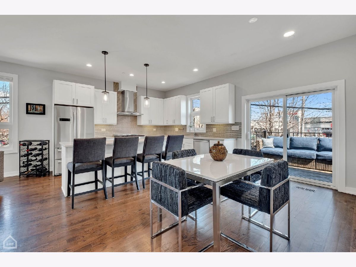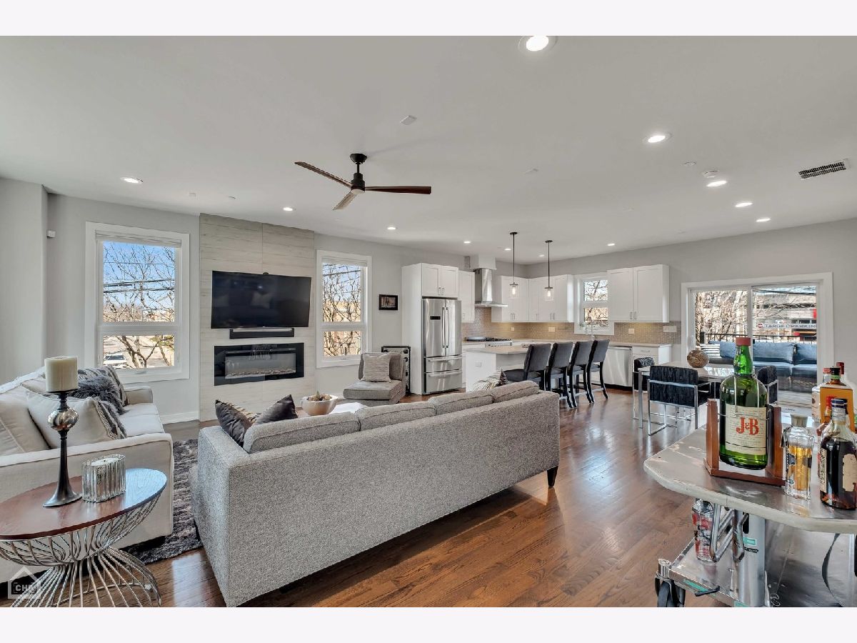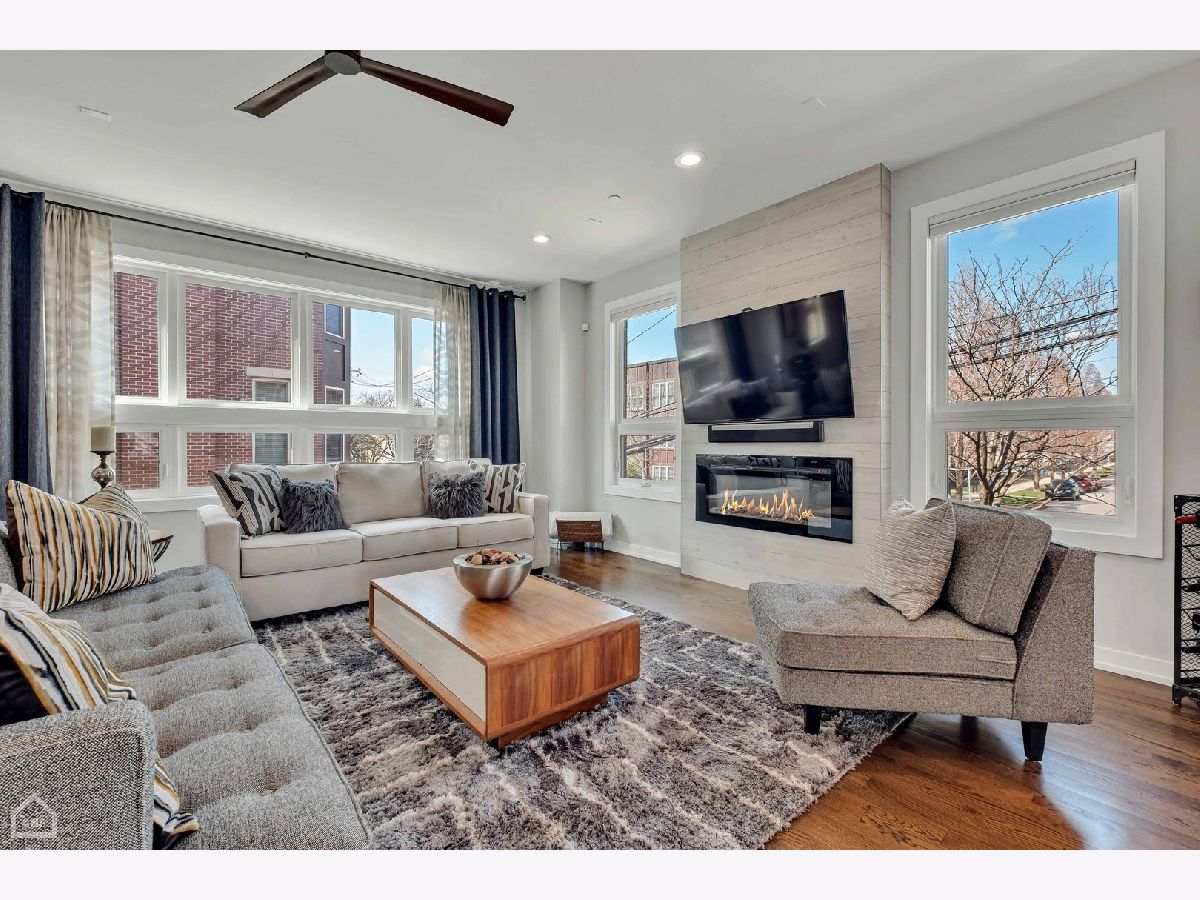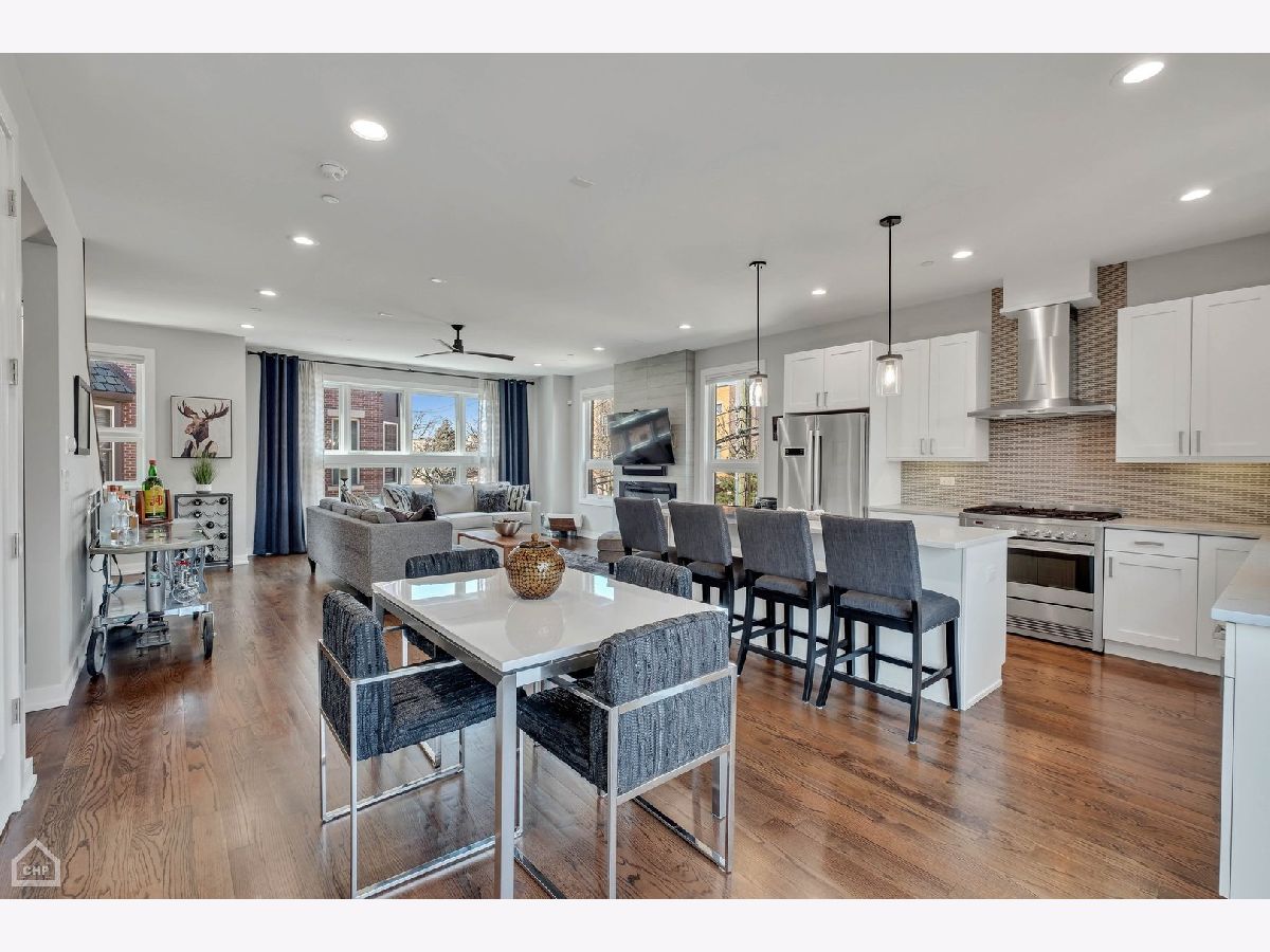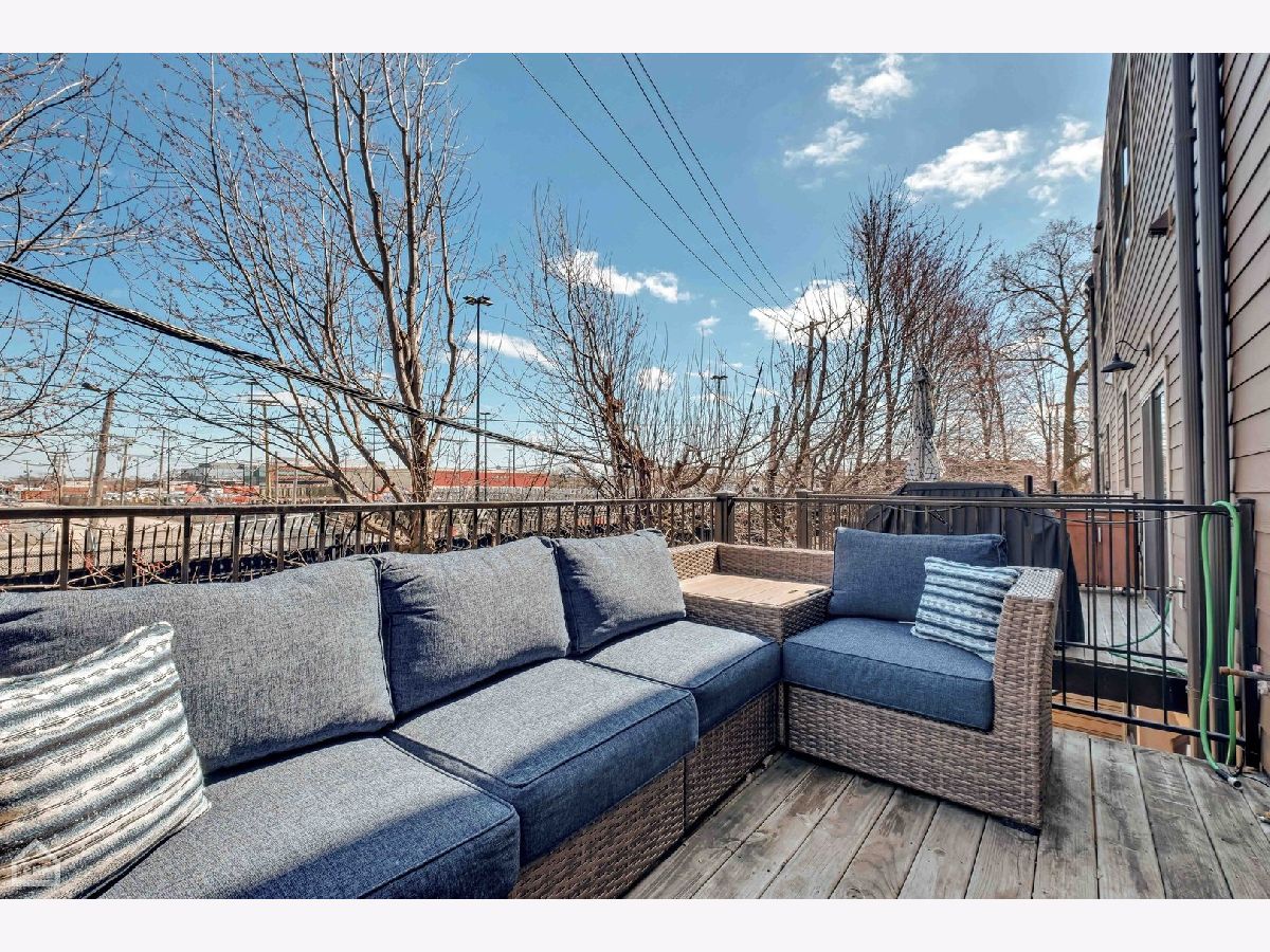 This modern end-unit townhome lives like a single family. Sun-filled 2,000 square feet spaciously accommodates 3 bedrooms, 3.5 bath, has 10 foot ceilings, 2 car attached garage, and a private fenced-in yard with 2 outdoor living spaces. Open concept living/dining/kitchen main level, including direct access to the private outdoor spaces, is where entertaining and functional family living meet. Includes high-end Bosch & Fisher Paykel appliances, white shaker slow close cabinetry, quartz countertops, large island plus dining space, electric fireplace, and a half bath. The private outdoor space commands its own full description: Accessed right off the main living level, the deck is equipped with water and gas hookup and private stairs to the backyard oasis. This corner lot has a fully fenced yard including extended patio pavers with an additional outdoor entertainment space and a turf area perfect for pets and kids. Mature trees deliver additional privacy and shade. Upstairs provides a quiet level ideal for the large primary suite that includes a walk-in closet and spa-like bath with heated floors and steam shower. A generous size 2nd bedroom and additional bath provide another well-equipped private space. And with a linen closet and side-by-side laundry area, this level has both comfort and function. The first level includes a well-appointed 3rd bedroom, another full bath, and a spacious coat closet. There is dual-zoned HVAC, Rheem tankless hot water heater, whole-home fire sprinkler system, and Ring security system. Enjoy the convenience of living in close proximity to 90/94, Addison CTA bus and the Blue Line. Multiple shopping and dining options nearby as well. This home is the perfect blend of modern urban conveniences & technology in a gated serene setting.