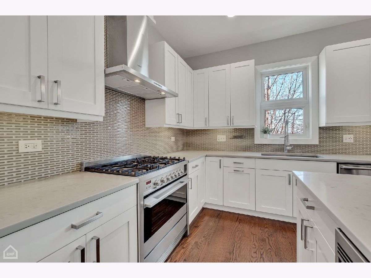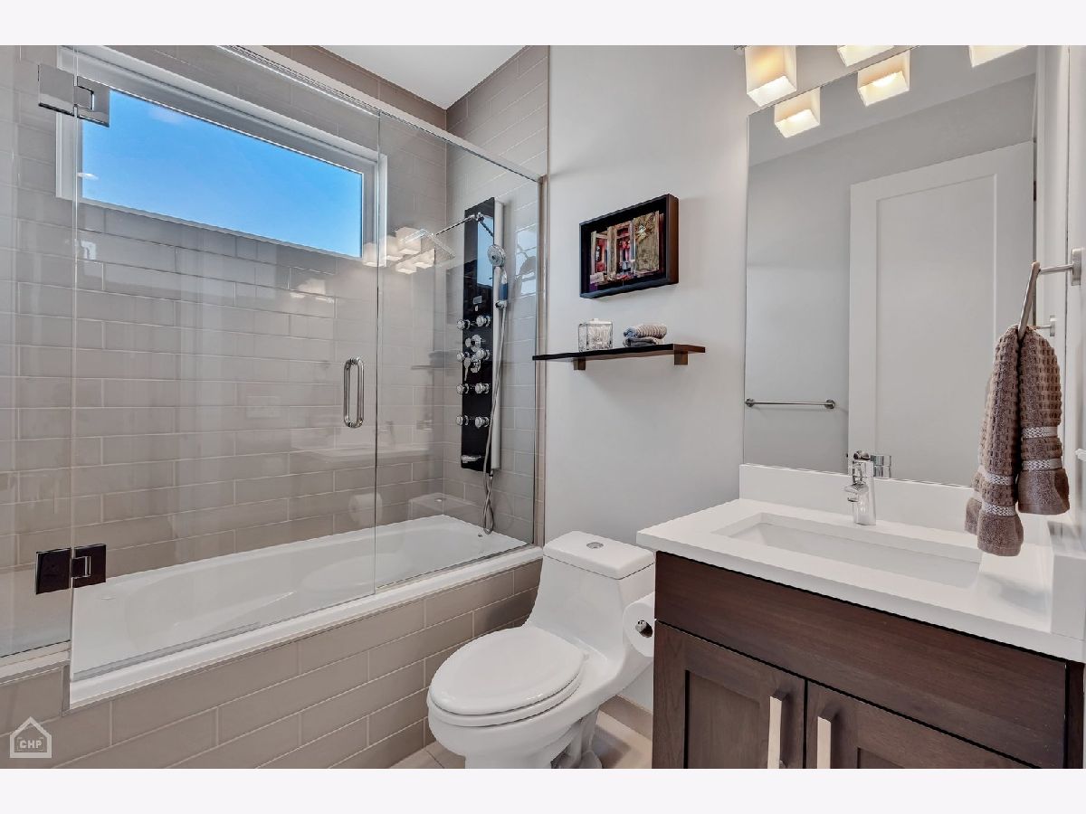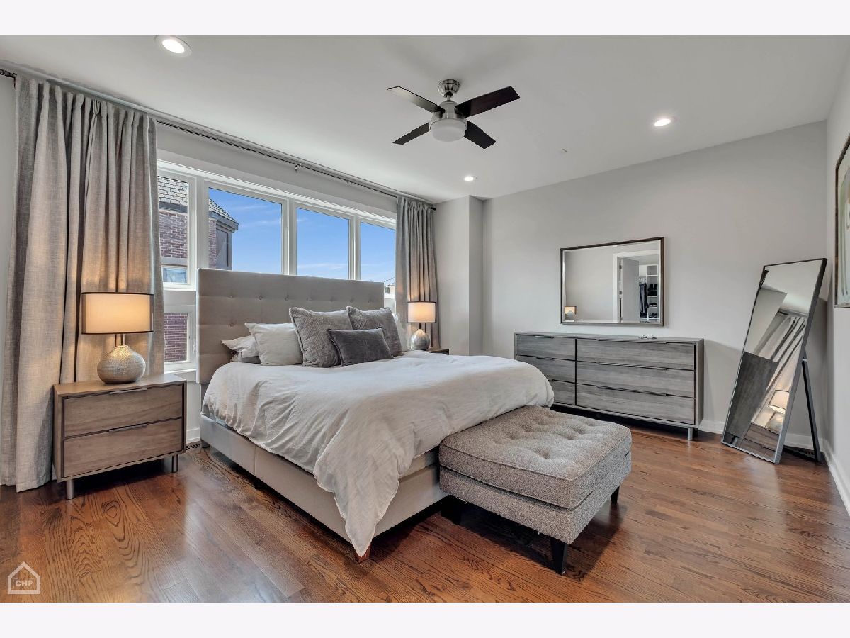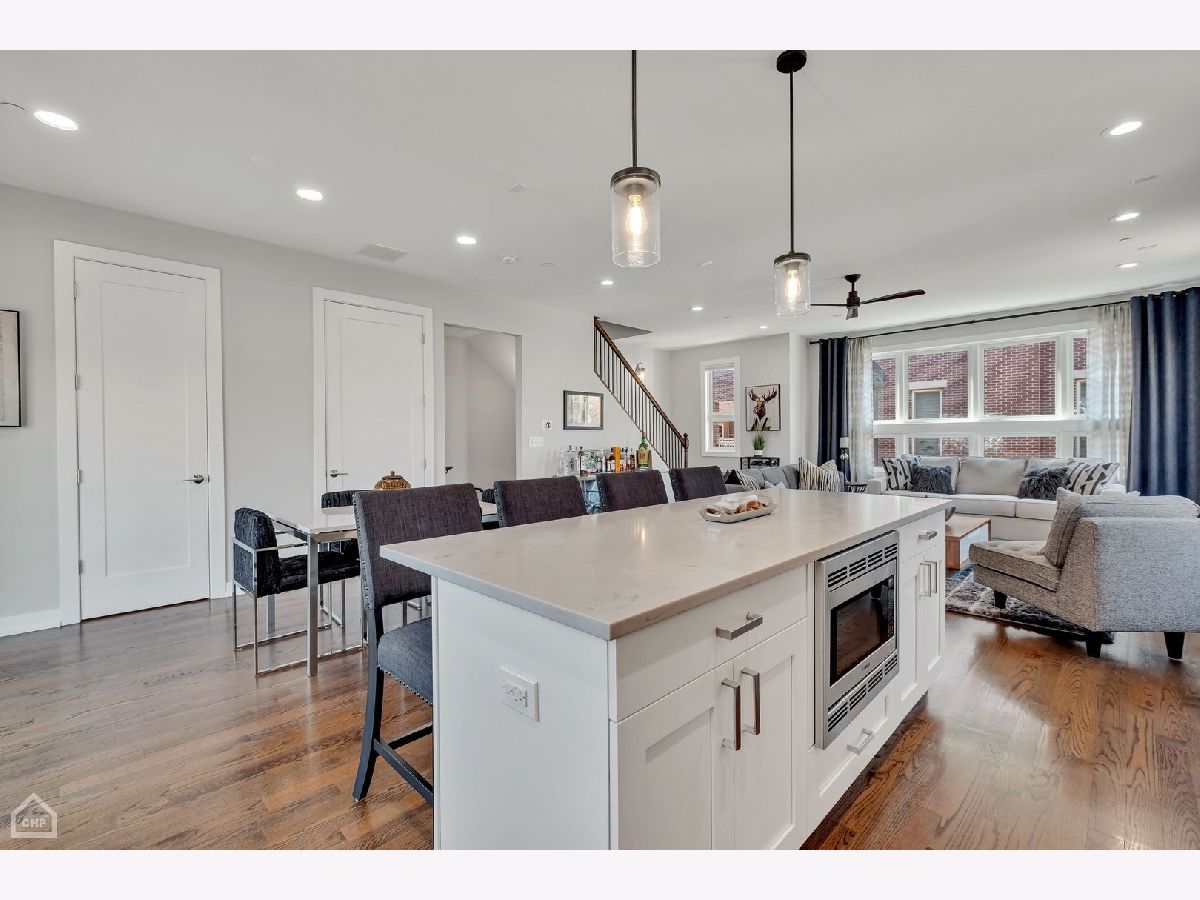 This modern end-unit townhome lives like a single family. Sun-filled 2,000 square feet spaciously accommodates 3 bedrooms, 3.5 bath, has 10 foot ceilings, 2 car attached garage, and a private fenced-in yard with 2 outdoor living spaces. Open concept living/dining/kitchen main level, including direct access to the private outdoor spaces, is where entertaining and functional family living meet. Includes high-end Bosch & Fisher Paykel appliances, white shaker slow close cabinetry, quartz countertops, large island plus dining space, electric fireplace, and a half bath. The private outdoor space commands its own full description: Accessed right off the main living level, the deck is equipped with water and gas hookup and private stairs to the backyard oasis. This corner lot has a fully fenced yard including extended patio pavers with an additional outdoor entertainment space and a turf area perfect for pets and kids. Mature trees deliver additional privacy and shade. Upstairs provides a quiet level ideal for the large primary suite that includes a walk-in closet and spa-like bath with heated floors and steam shower. A generous size 2nd bedroom and additional bath provide another well-equipped private space. And with a linen closet and side-by-side laundry area, this level has both comfort and function. The first level includes a well-appointed 3rd bedroom, another full bath, and a spacious coat closet. There is dual-zoned HVAC, Rheem tankless hot water heater, whole-home fire sprinkler system, and Ring security system. Enjoy the convenience of living in close proximity to 90/94, Addison CTA bus and the Blue Line. Multiple shopping and dining options nearby as well. This home is the perfect blend of modern urban conveniences & technology in a gated serene setting.