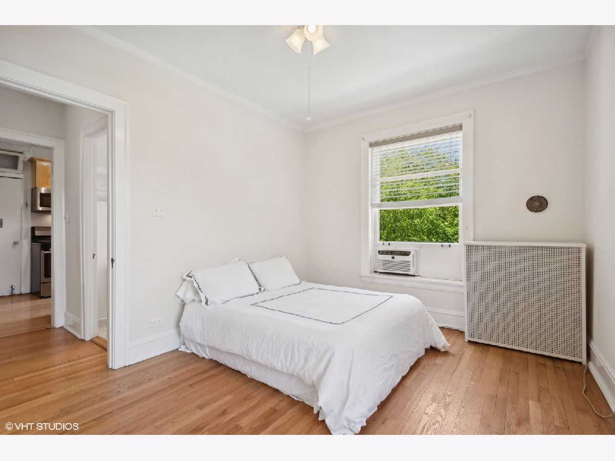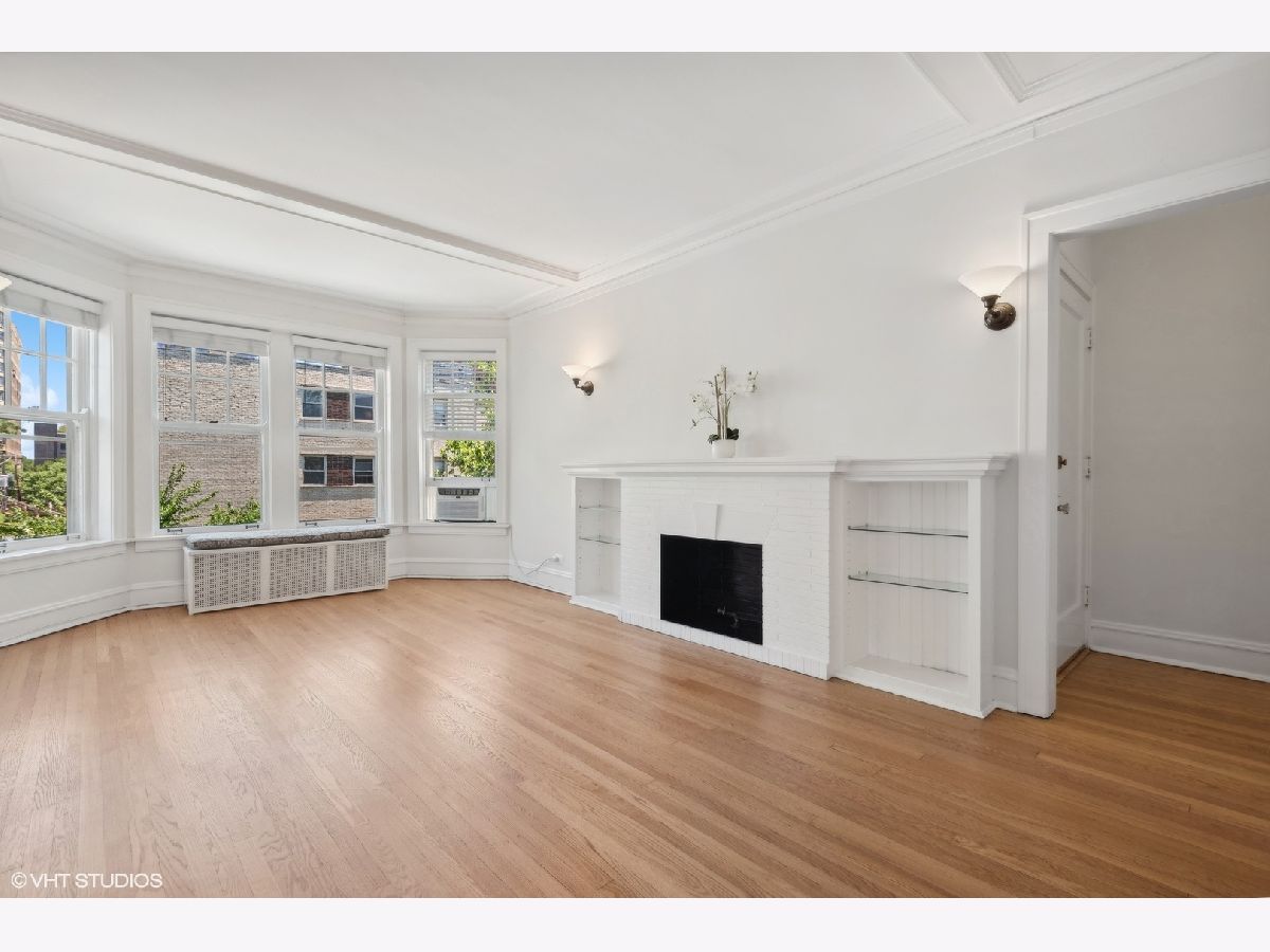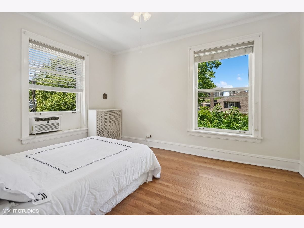 Sold before print.Gorgeous light flooded vintage huge corner, top floor 1 bedroom/1 bathroom condo in the heart of East Lakeview! Charm abounds with fireplace built-ins and bookcases. There is a gas line which can be used to install a ventless fireplace system. Ceiling and wall molding and millwork as well as original doors. Large spaces throughout the unit with separate living and dining rooms, lots of closet space and an oversized bedroom which easily holds a King sized bed! Hardwood floors throughout as well as plantation shutters on all windows. Large kitchen with solid maple cabinets, granite and stainless steel appliances. Gorgeous vintage bathroom with masses of natural light. There is space outside the unit at the top of the back stairs for a couple of tables and bistro table to enjoy your morning coffee or evening glass of wine!Free shared laundry in the basement along with storage for bikes and an enormous private storage room Transferable covered leased parking directly across the street ($205) Free laundry in the basement.