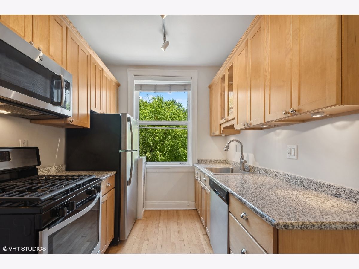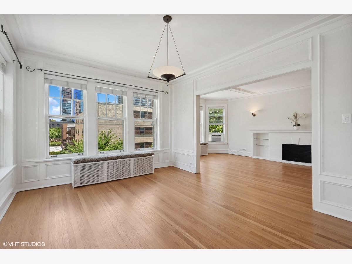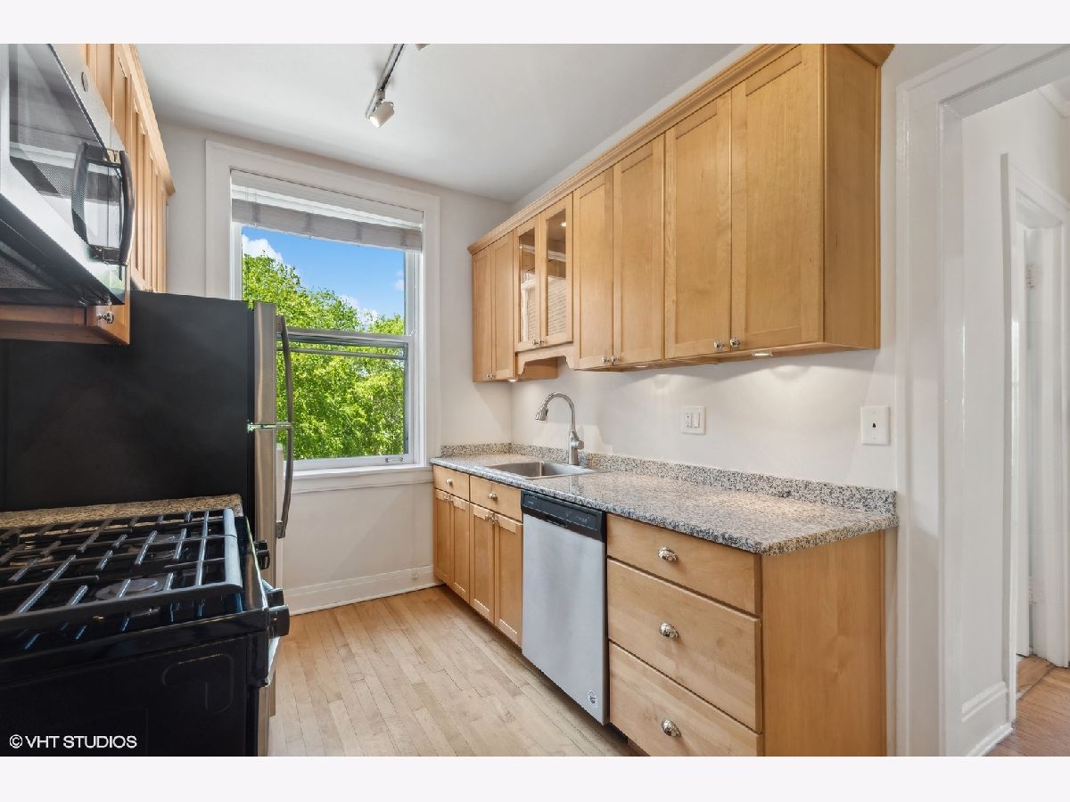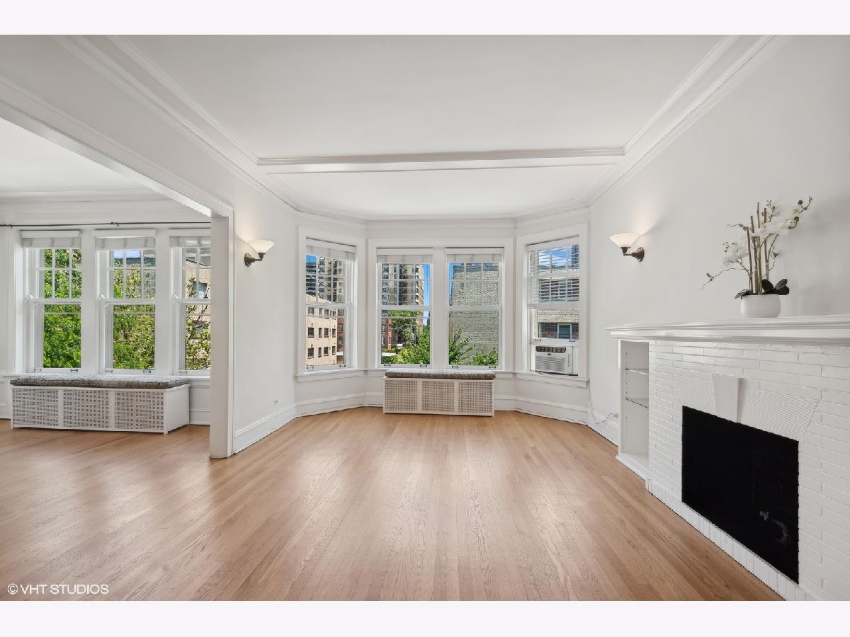 Sold before print.Gorgeous light flooded vintage huge corner, top floor 1 bedroom/1 bathroom condo in the heart of East Lakeview! Charm abounds with fireplace built-ins and bookcases. There is a gas line which can be used to install a ventless fireplace system. Ceiling and wall molding and millwork as well as original doors. Large spaces throughout the unit with separate living and dining rooms, lots of closet space and an oversized bedroom which easily holds a King sized bed! Hardwood floors throughout as well as plantation shutters on all windows. Large kitchen with solid maple cabinets, granite and stainless steel appliances. Gorgeous vintage bathroom with masses of natural light. There is space outside the unit at the top of the back stairs for a couple of tables and bistro table to enjoy your morning coffee or evening glass of wine!Free shared laundry in the basement along with storage for bikes and an enormous private storage room Transferable covered leased parking directly across the street ($205) Free laundry in the basement.