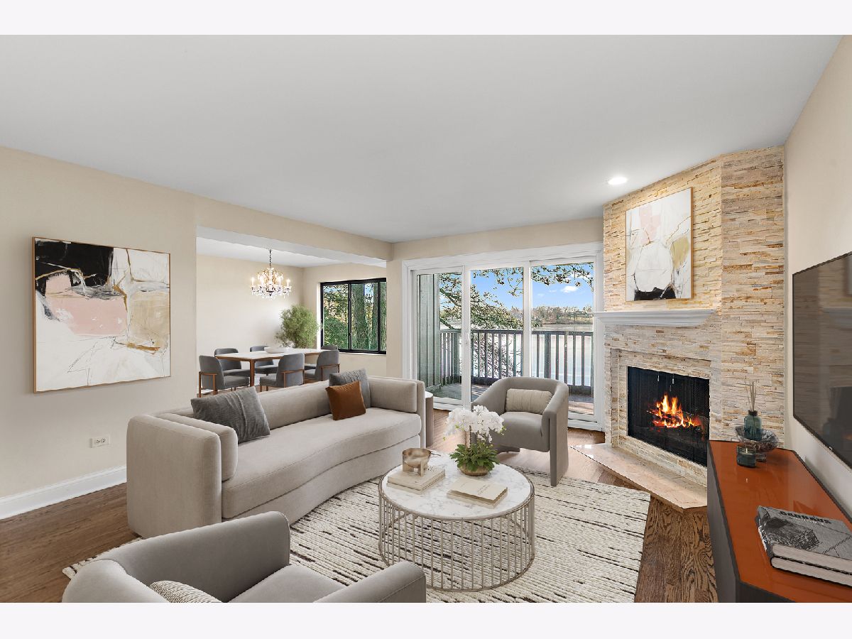Beautiful lakefront condo in Lake Barrington Shores! Enjoy the views from your balcony or your patio in the finished walkout lower level. Updated in recent years with stone fireplace in the living room, dining area and remodeled kitchen with glazed cabinets, stainless appliances and table area. Hardwood floors in foyer, living room, dining and kitchen. Walk-out lower level with 3rd full bath. Enjoy all the LBS has to offer including indoor/outdoor pool, boating, tennis, clubhouse, golf, pickleball and more. Close to main gate so quick in and out.